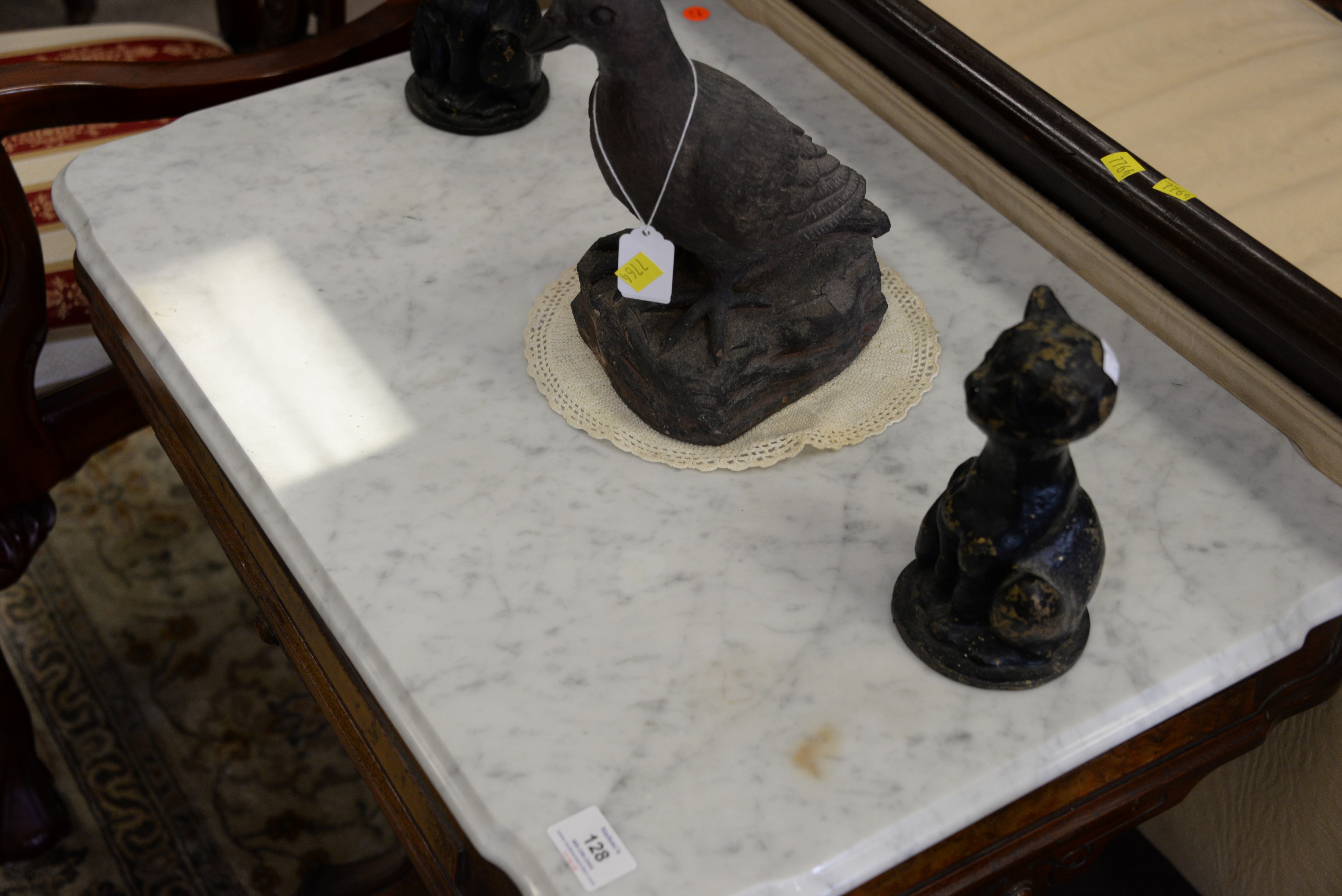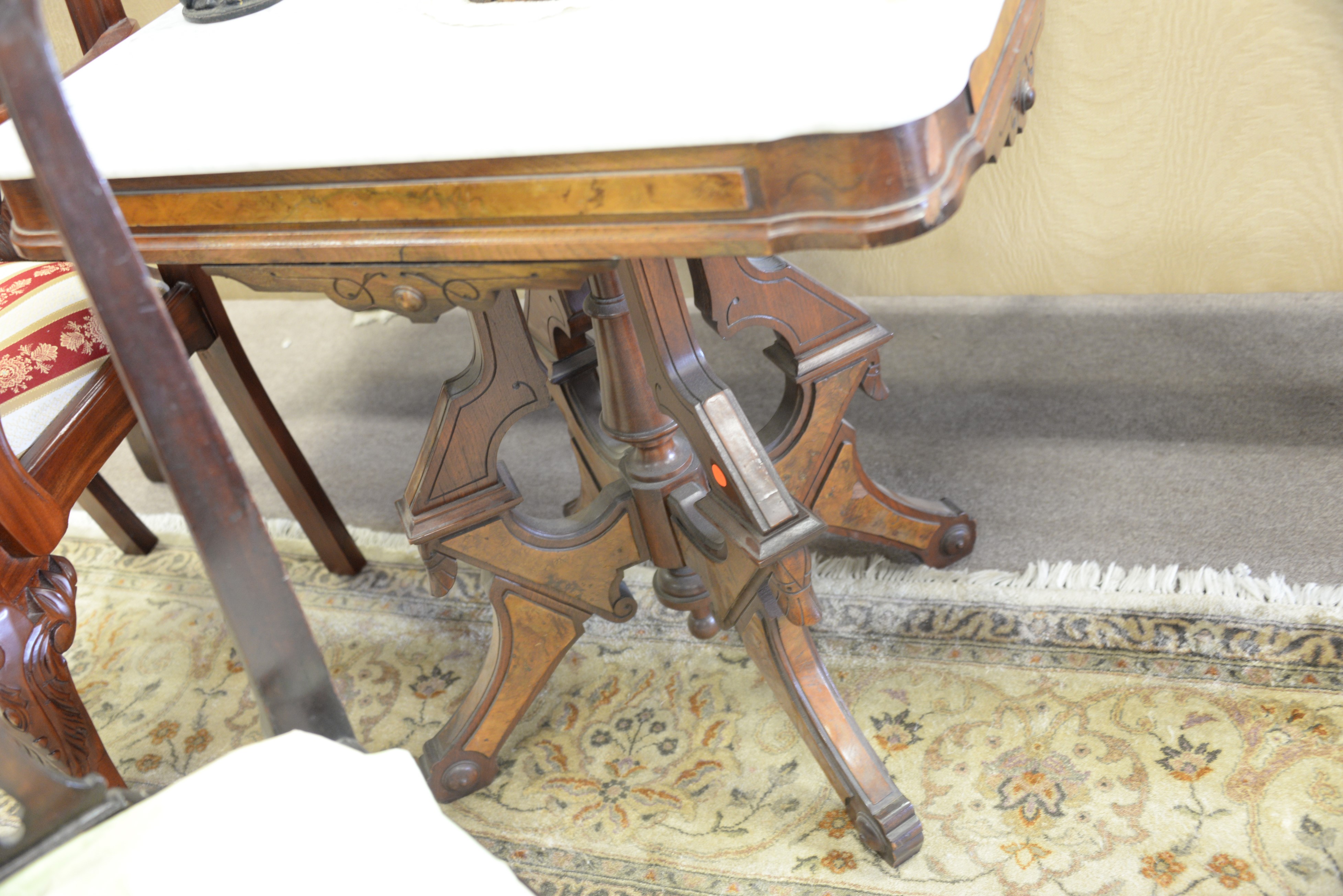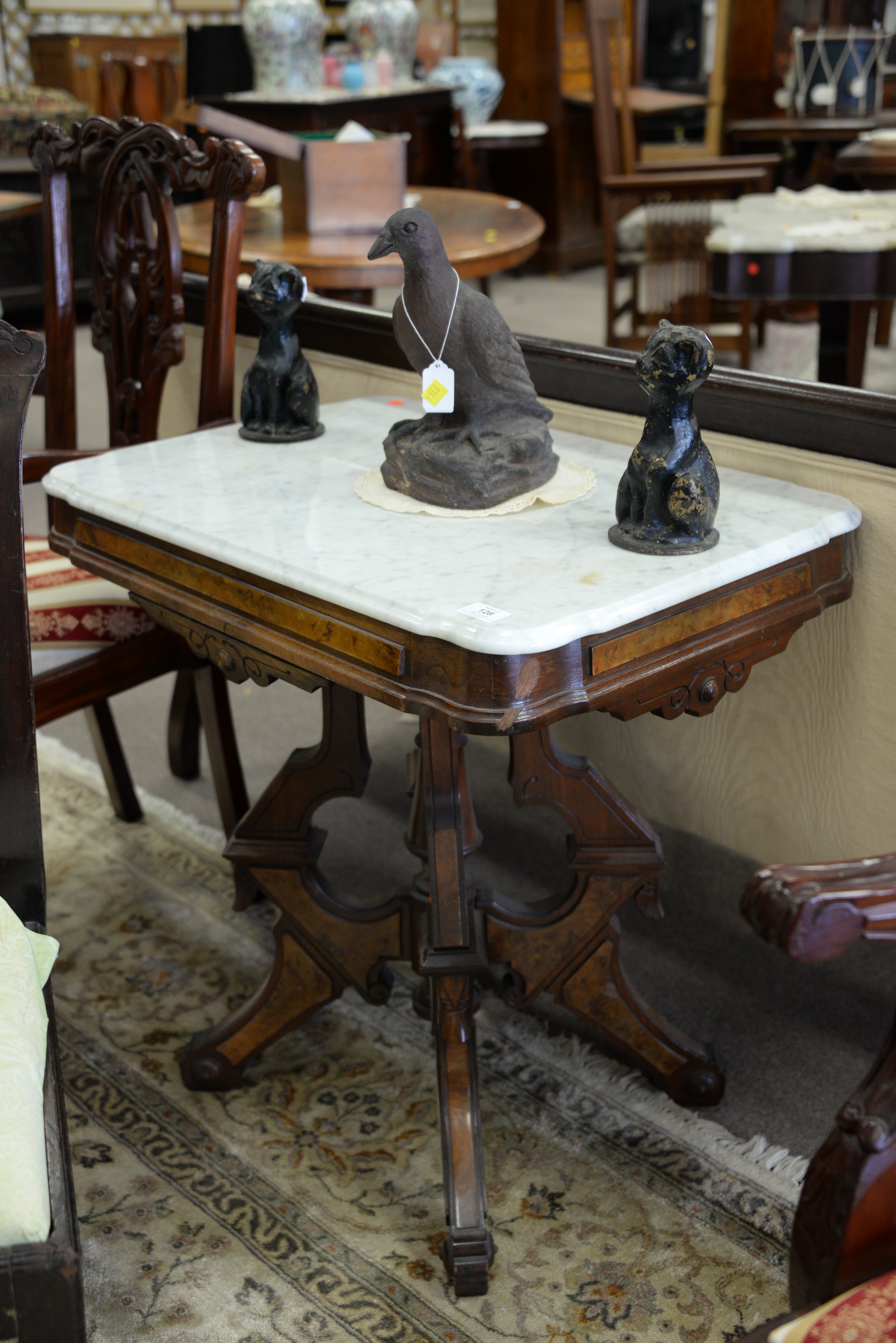 Lot 128: Victorian walnut marble top table. ht. 28 in. wd. 28 in. dp. 20 in.