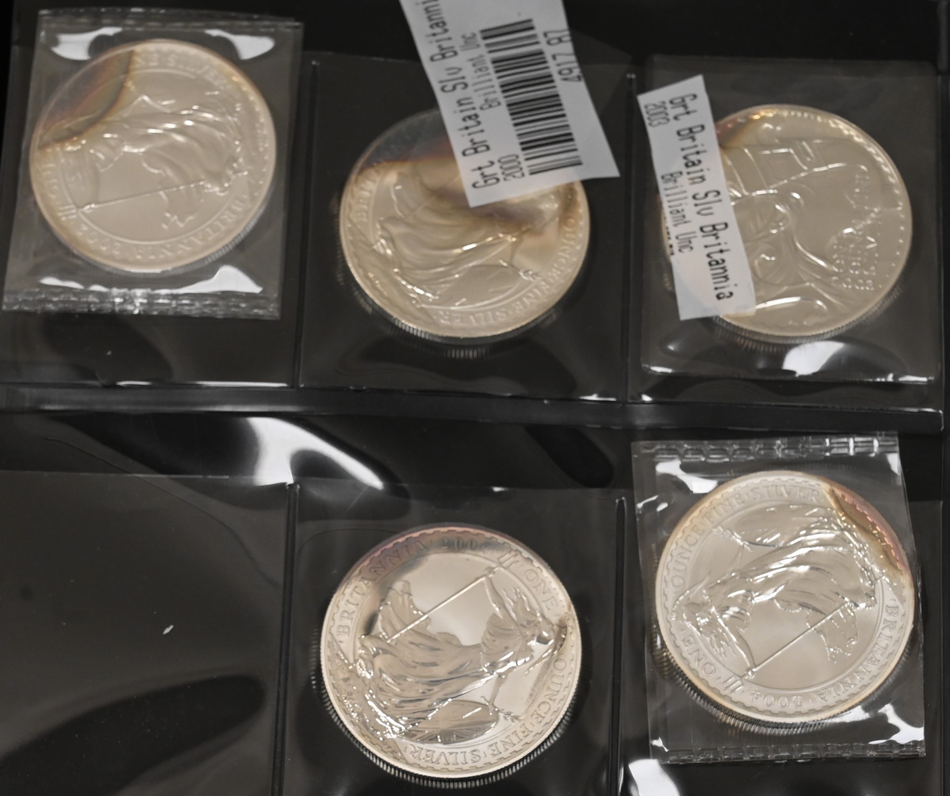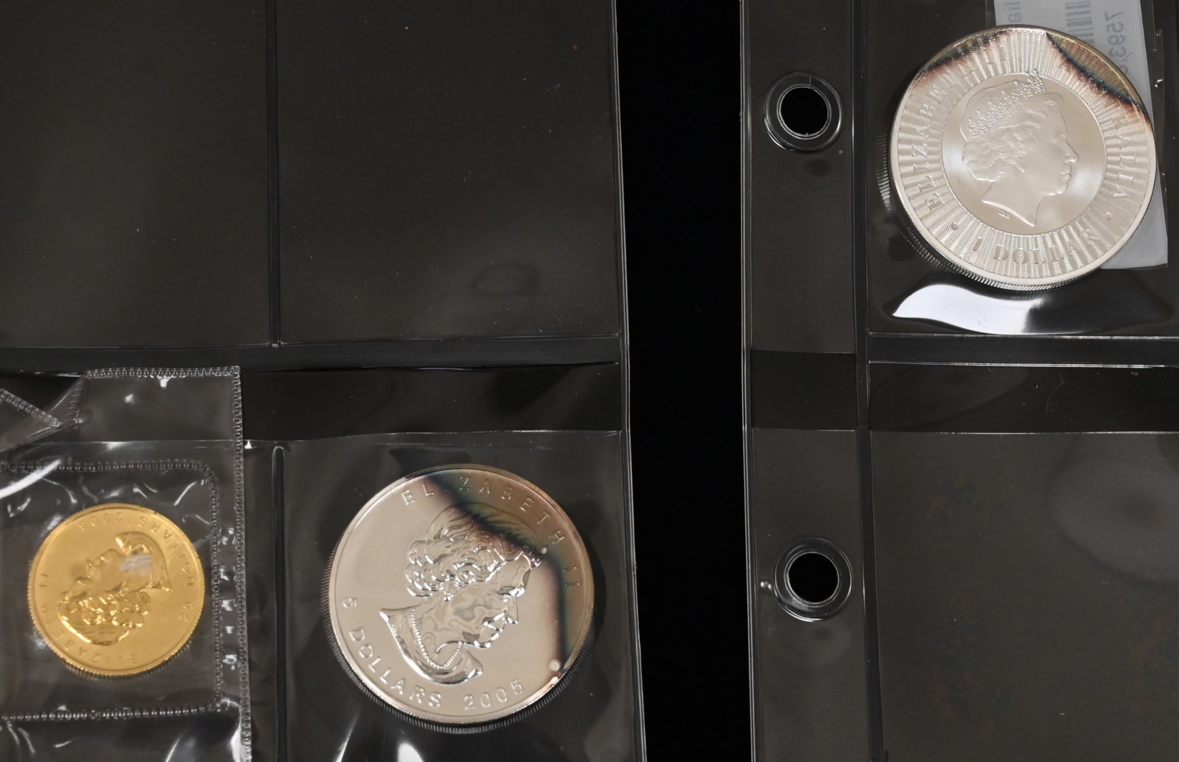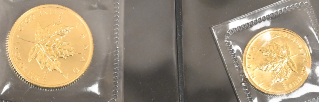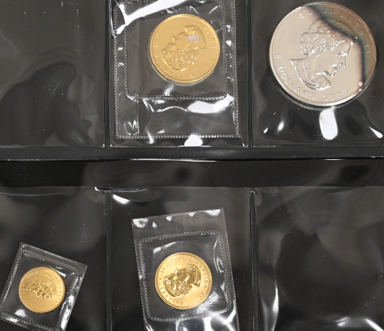 10 Piece Foreign Coin Lot, to include 2006 ½ ounce gold maple leaf, ¼ ounce maple leaf and one 1/10 ounce gold maple leaf, along with five one ounce Great Britain silver coins and one Australian.
