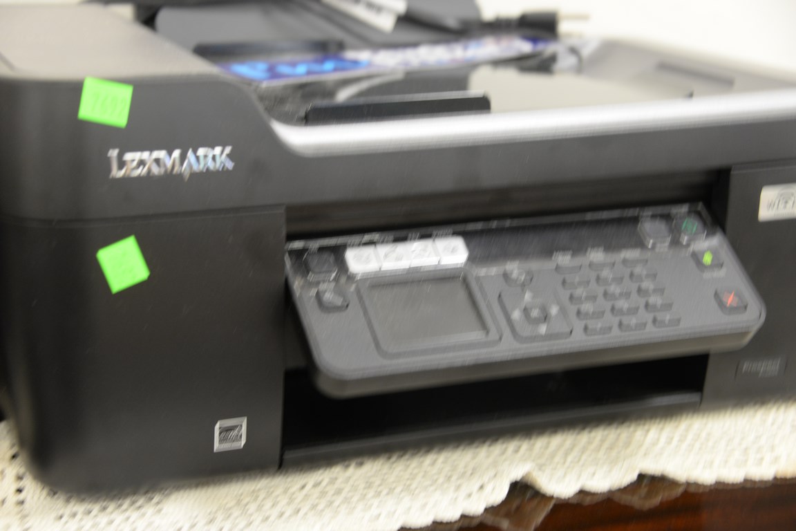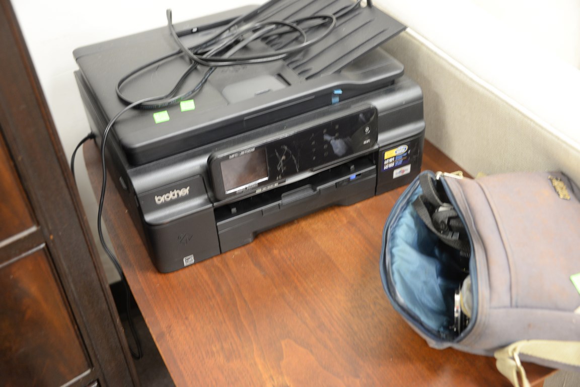 Epson CX7400 inkjet printer/scanner/copier, Lexmark Pro205 inkjet printer, Brother printer, and a Pentax camera.