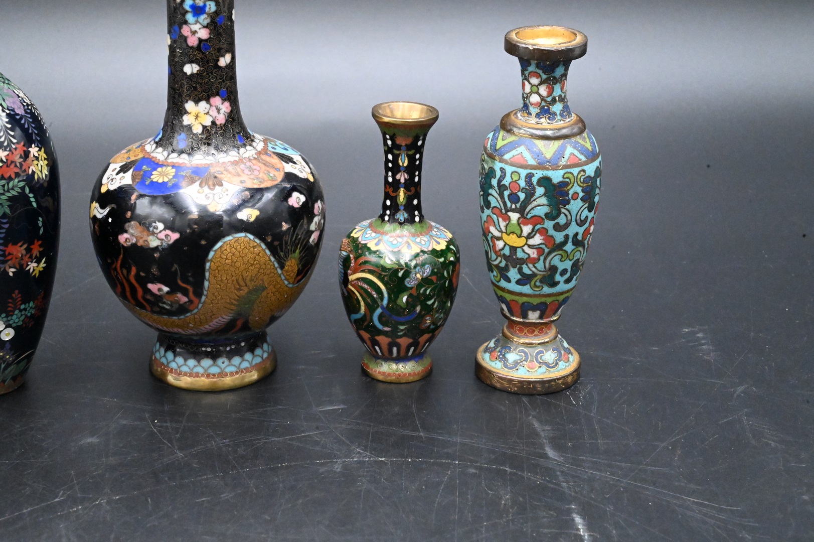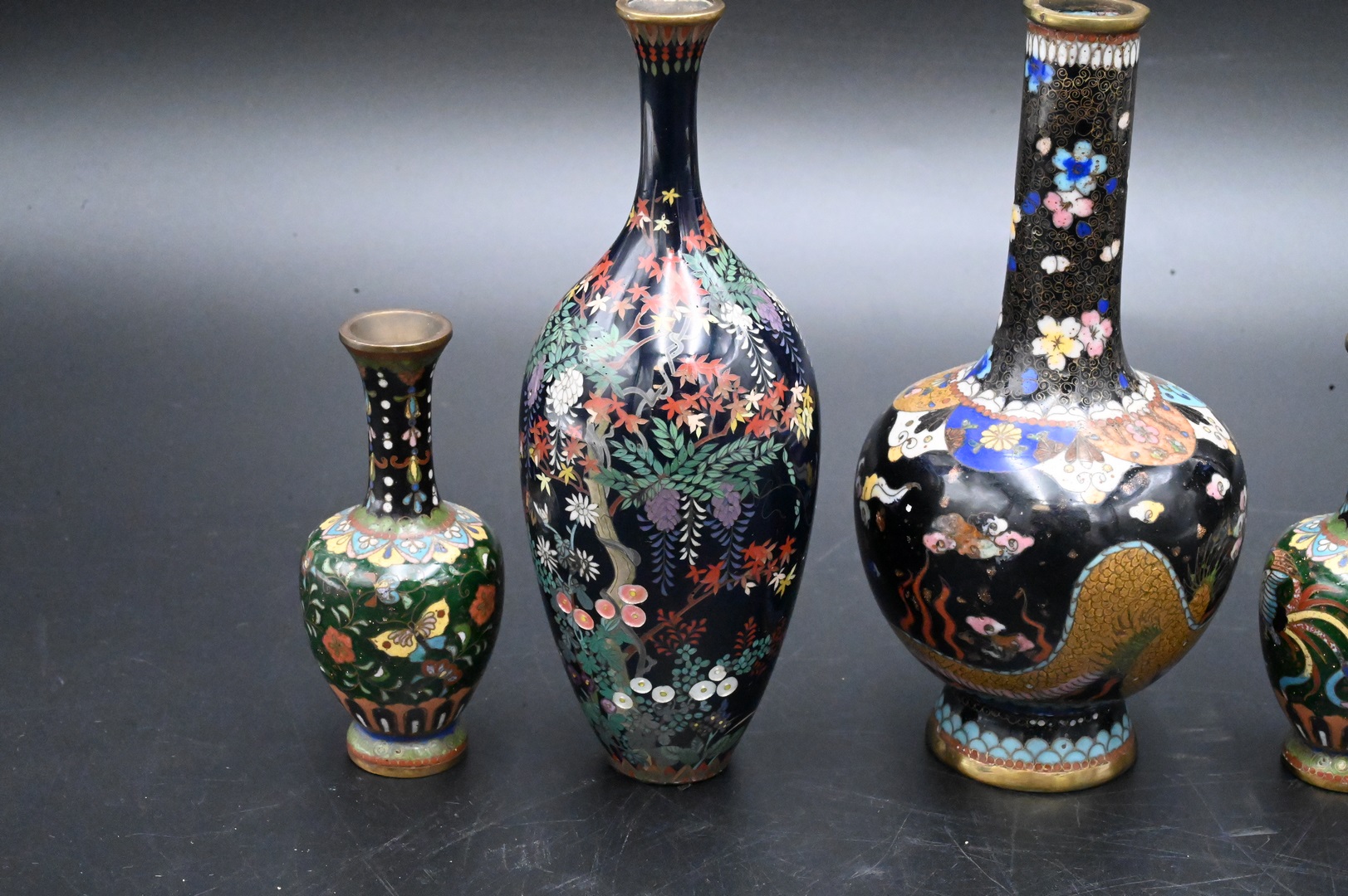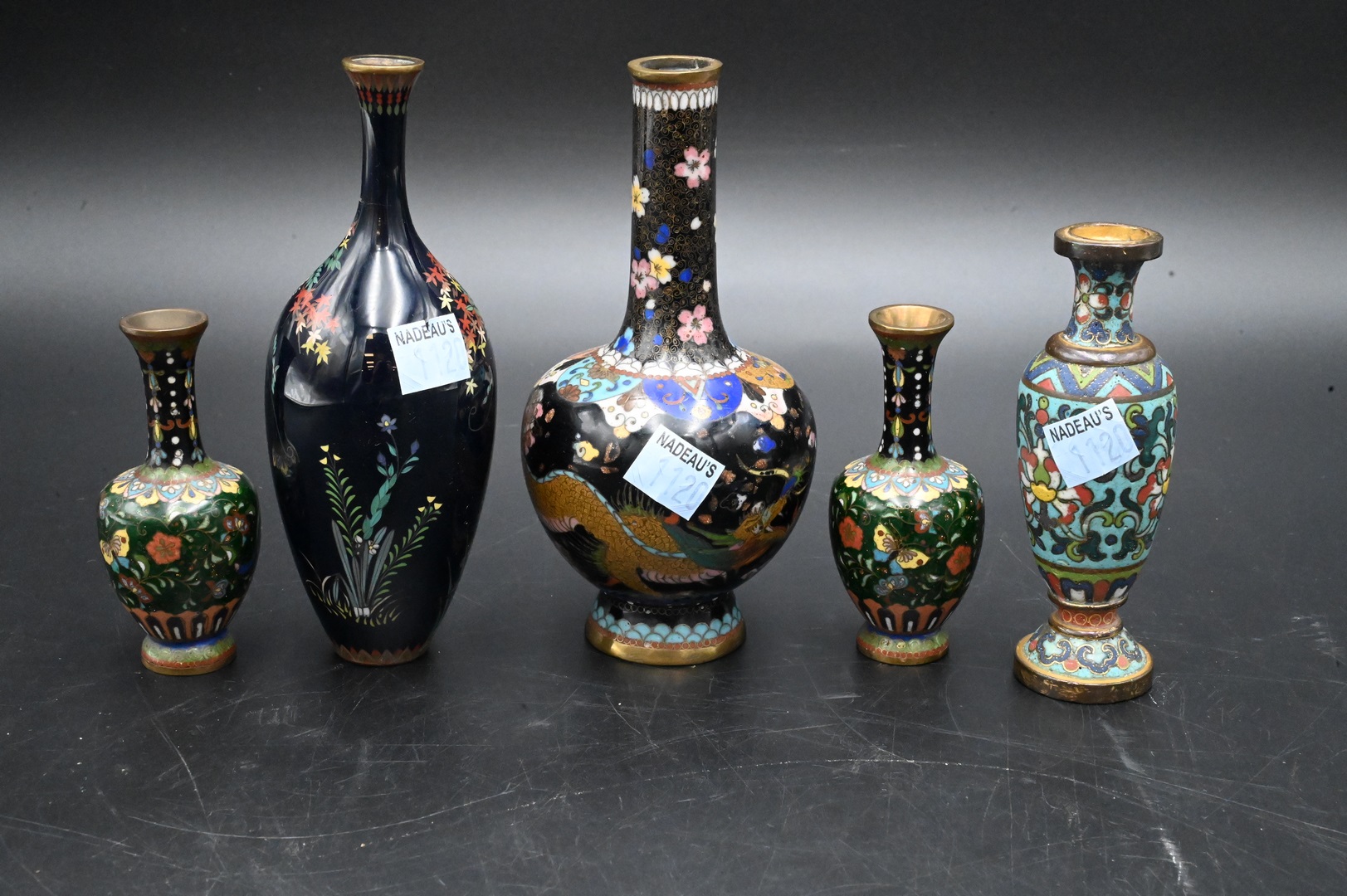 Five Cloisonne Cabinet Vases, (one neck with slight damage), tallest 6 1/2 inches.