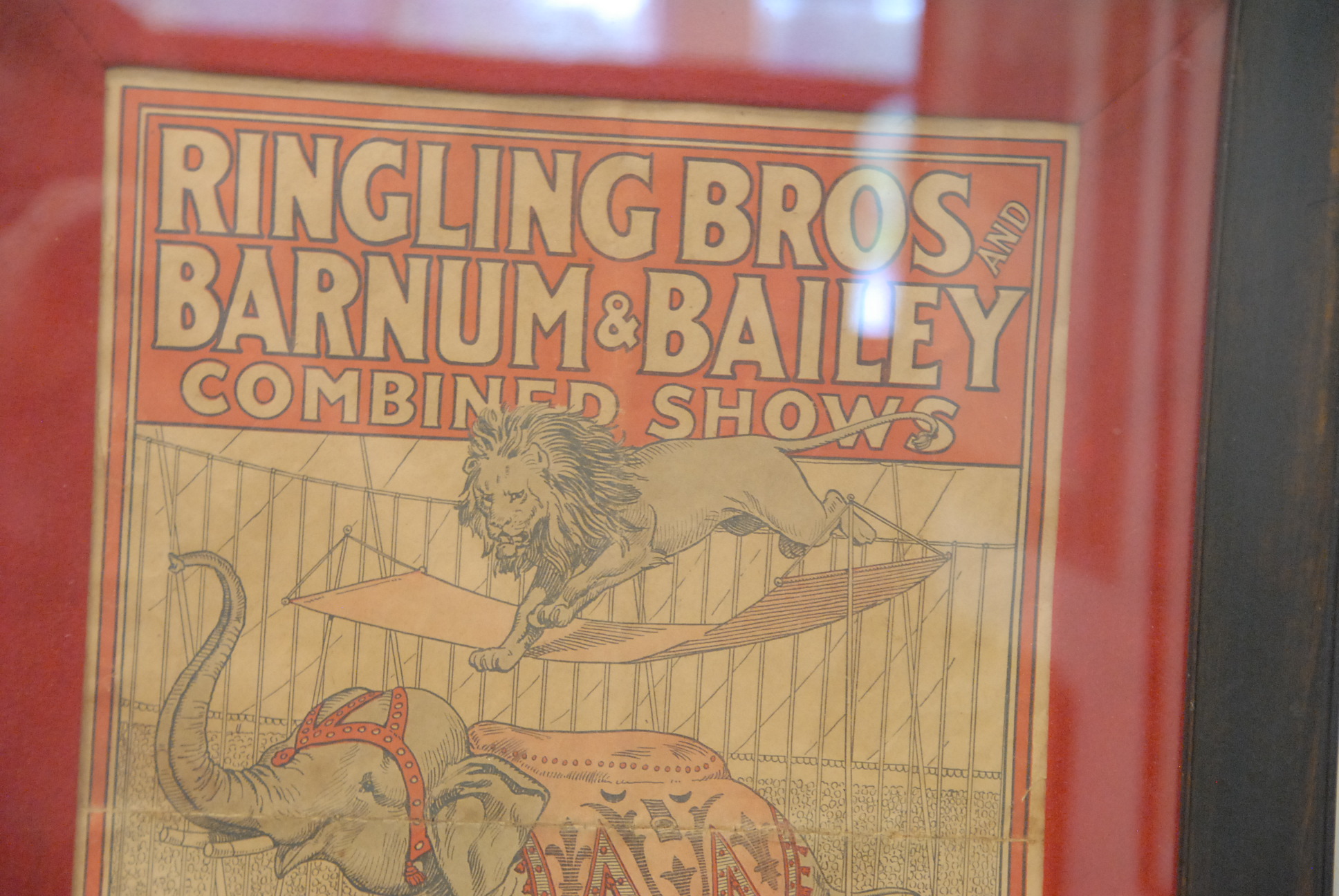 Framed Ringling Brothers and Barnum Bailey combined shows Hartford Wednesday June 29th circus poster.
