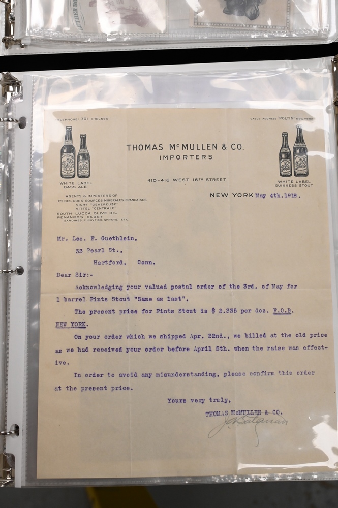 Lot 129: Large Lot of Ephemera, to include trade cards, labels, letterheads, beer coasters, etc., all in binders.