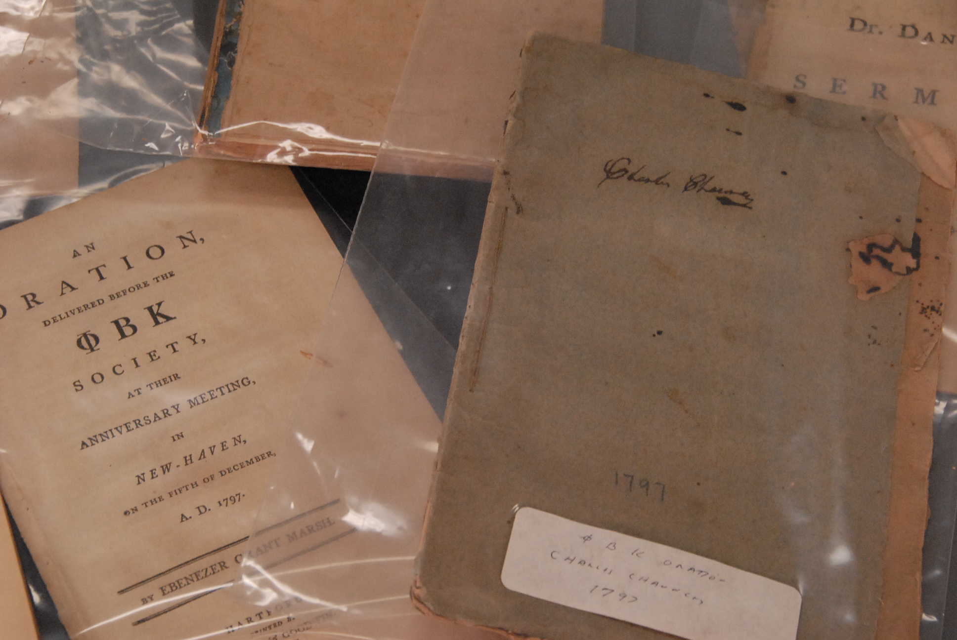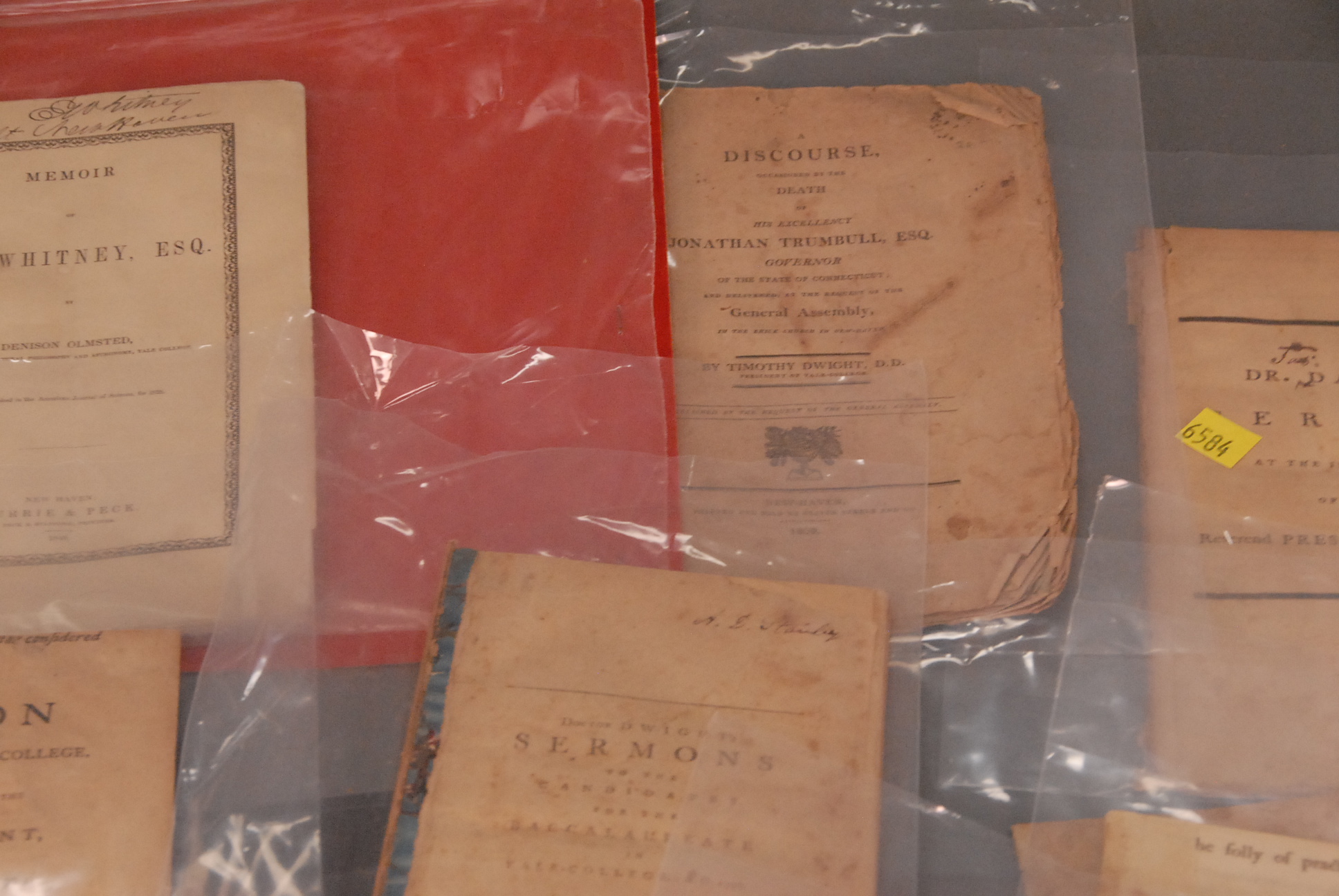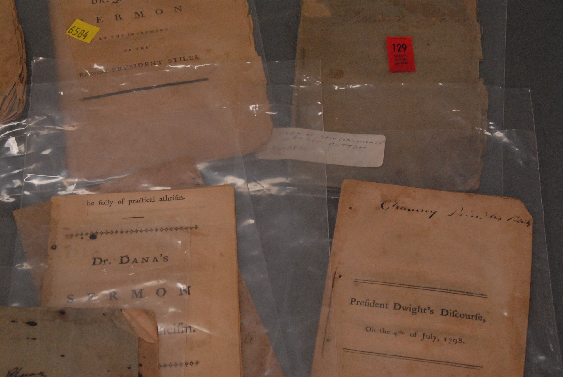 Lot 129: Twelve piece lot of Yale ephemera including Address to the Senior Class 1796, President Dwight’s Discourse 1798, Dr. Dana’s sermon 1…