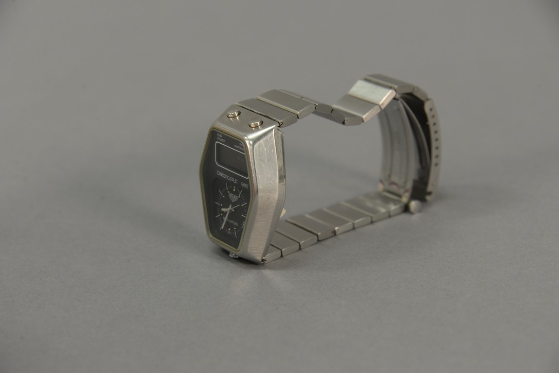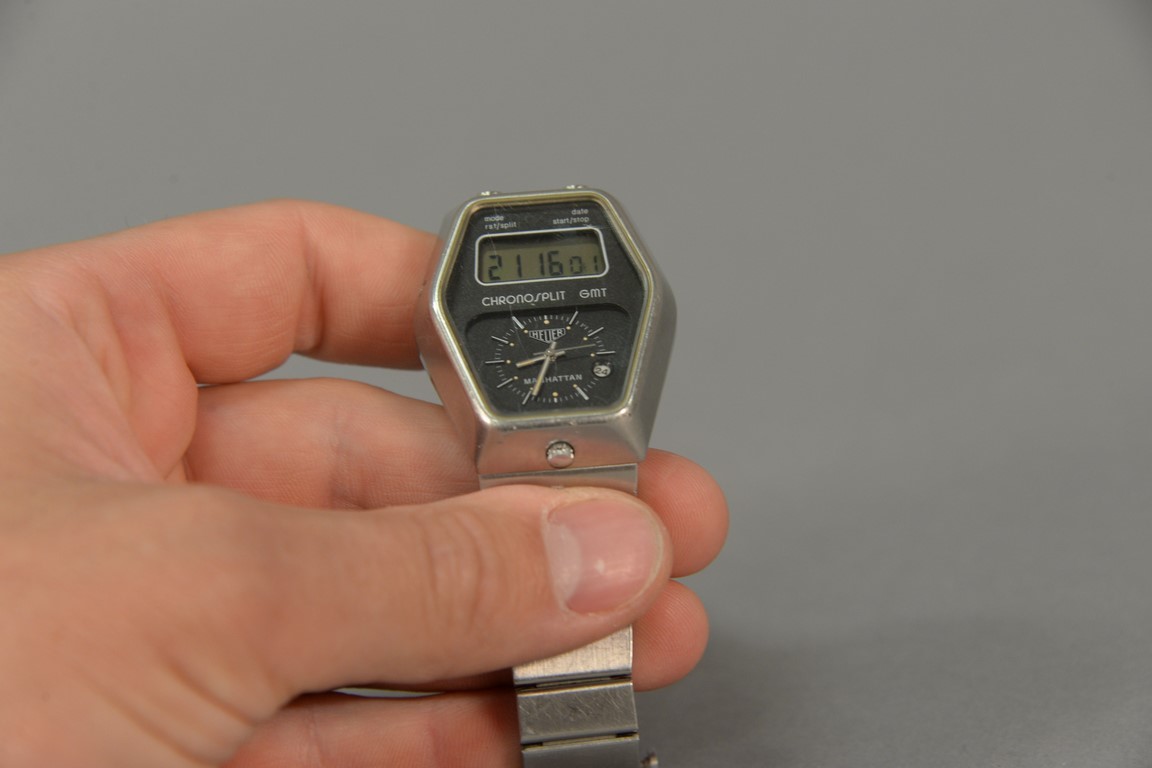 Heuer Chronosplit GMT Manhattan stainless mans wristwatch.