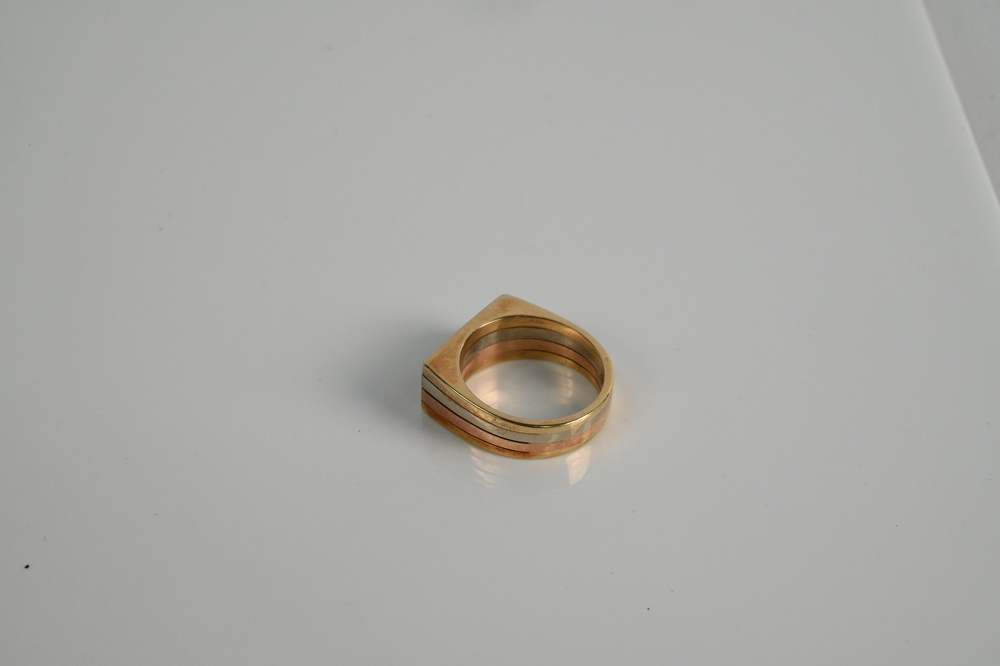 Multicolor 14 Karat Gold Ring, marked 14K, 8.9 grams.