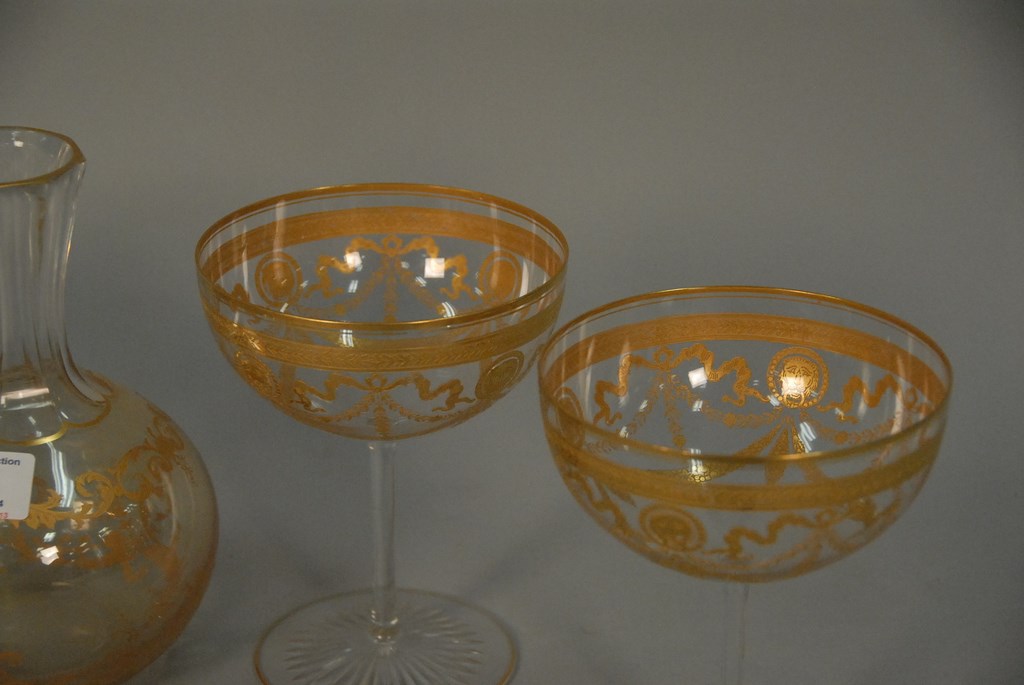 Six piece set of gold decorated crystal.