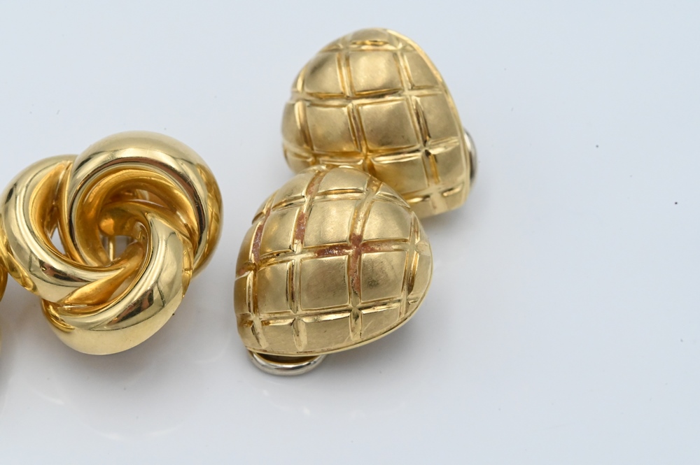 Two Pairs of 18 Karat Gold Earrings, ear clip or pierced, 28.7 grams.
