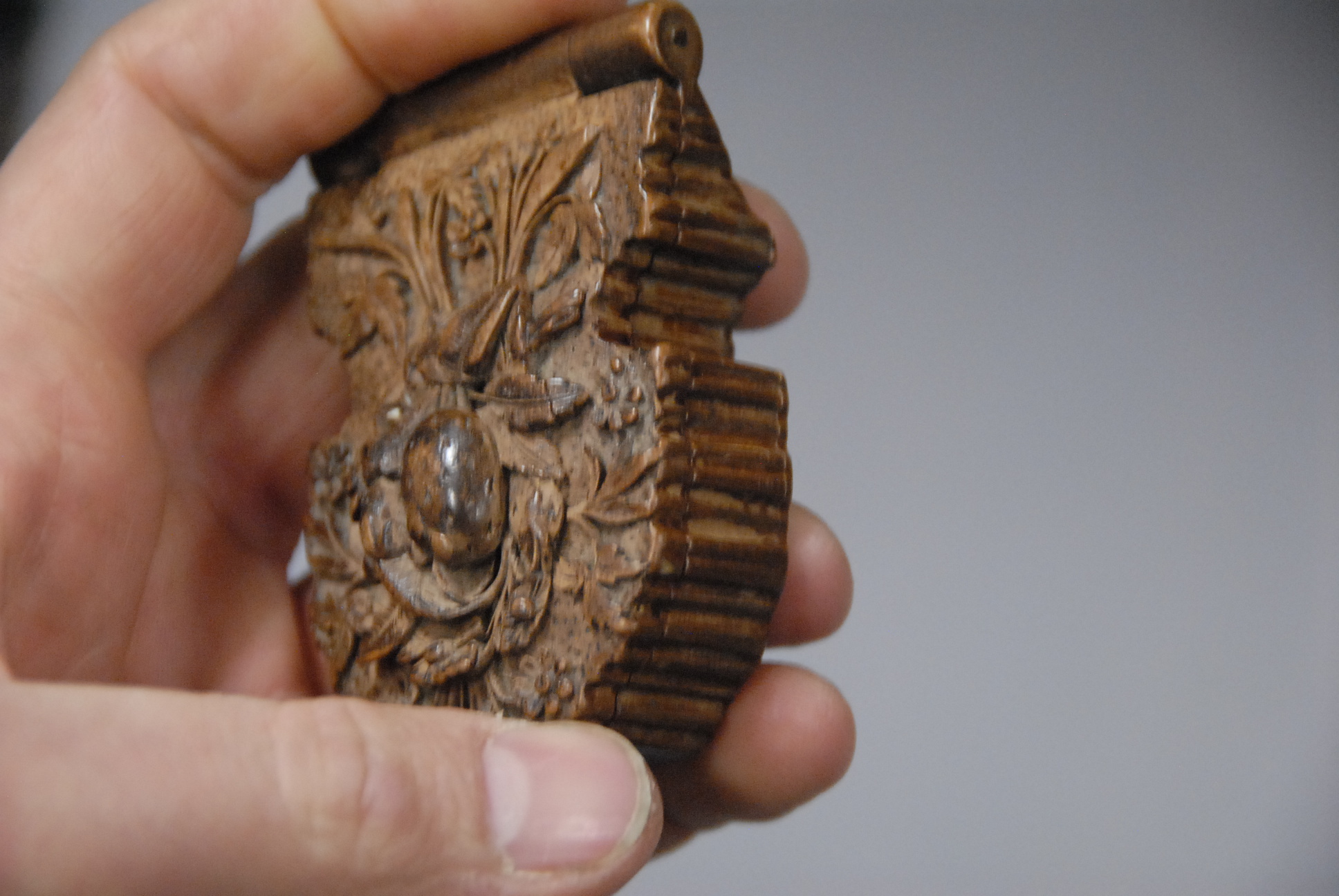 Two silver key wind open face pocket watches, one with wooden watch hutch.