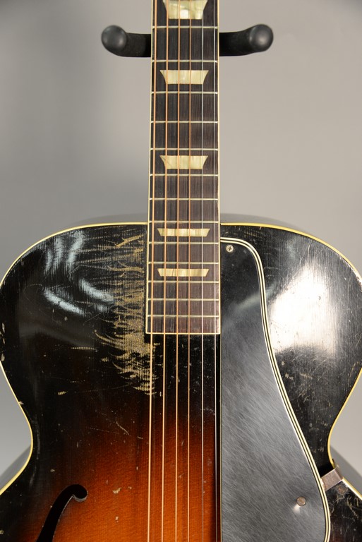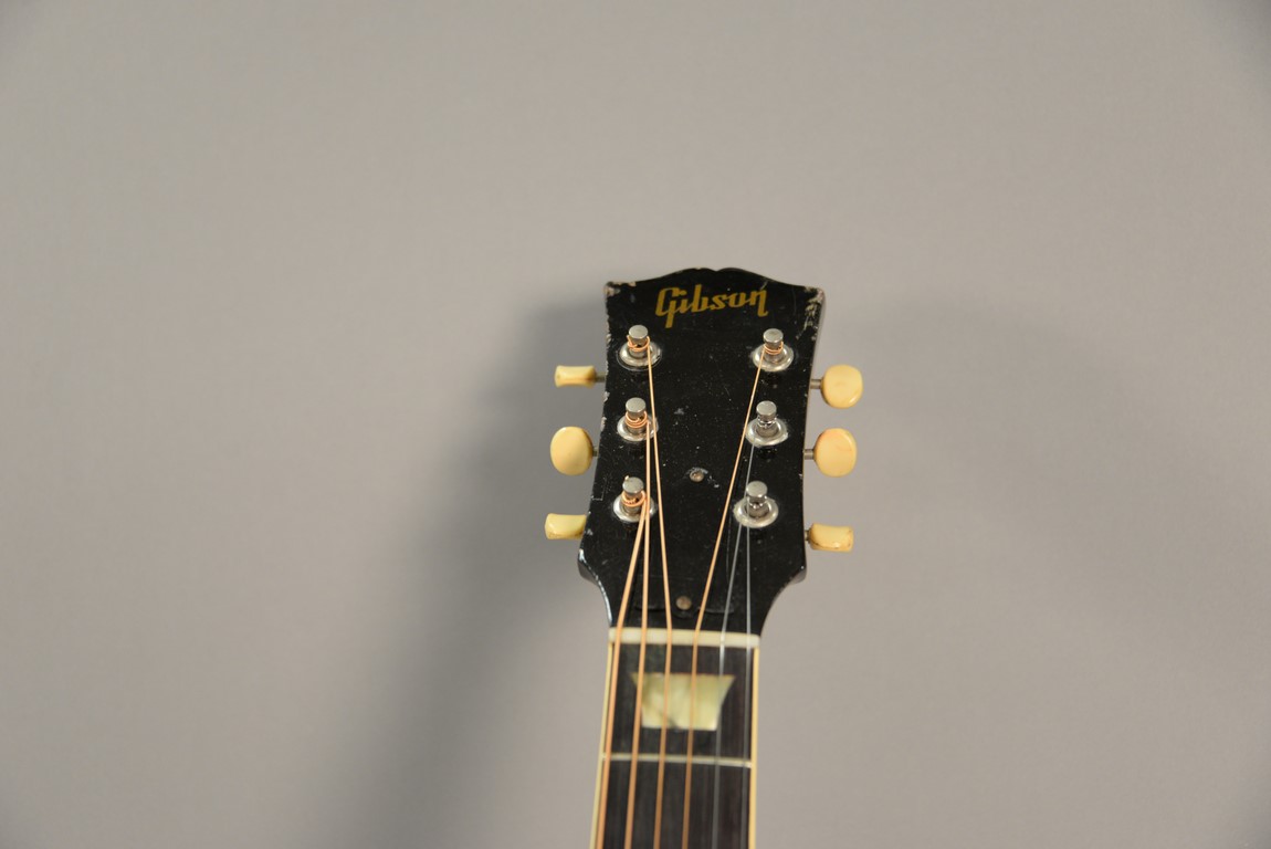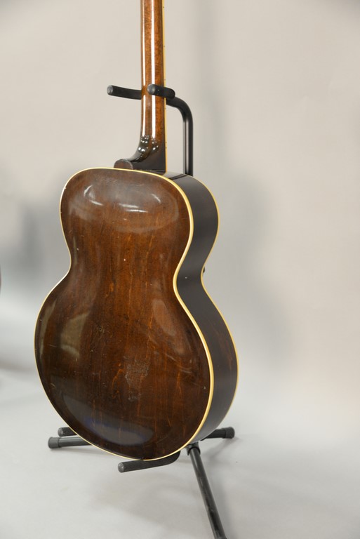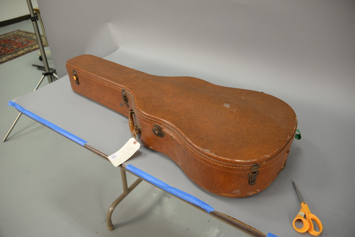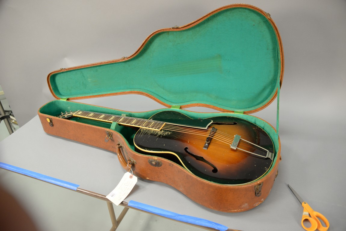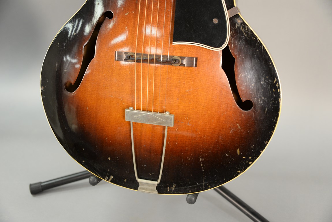 Lot 130: 1967-8 Gibson L-50 Sunburst F-Hole Jazz guitar with original brown hard shell case, serial #7074-14 lg. 40 3/4 in.