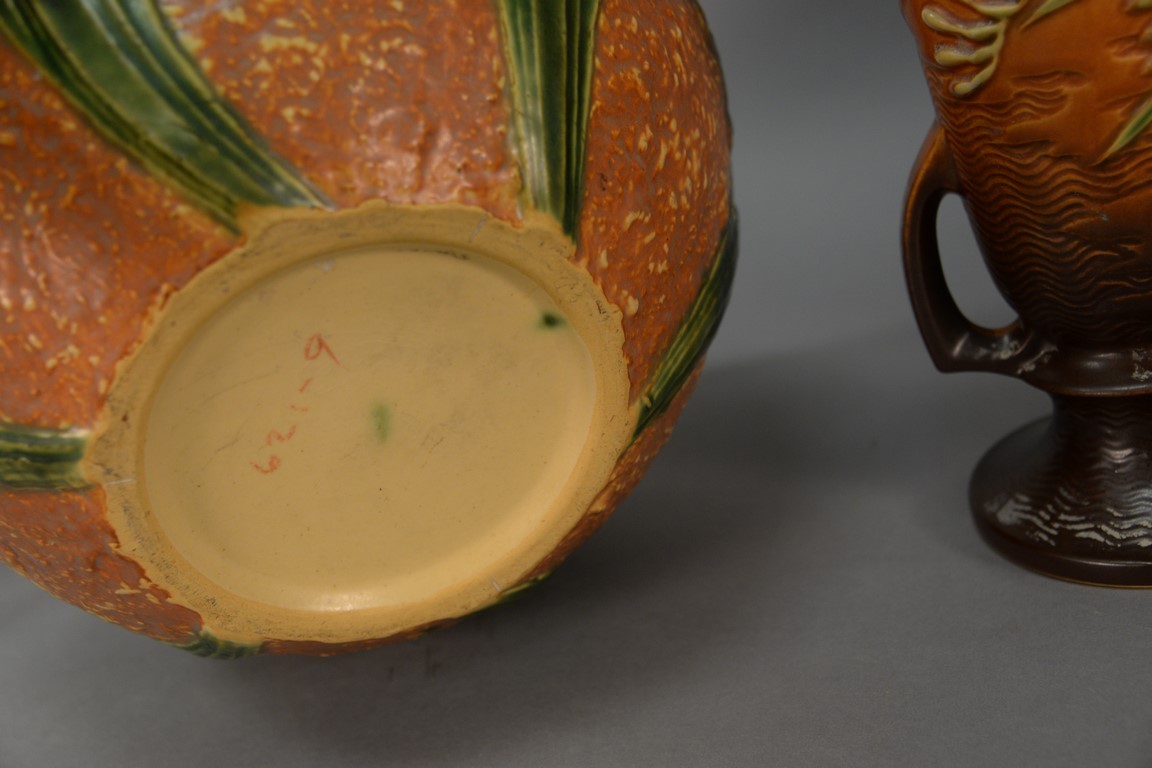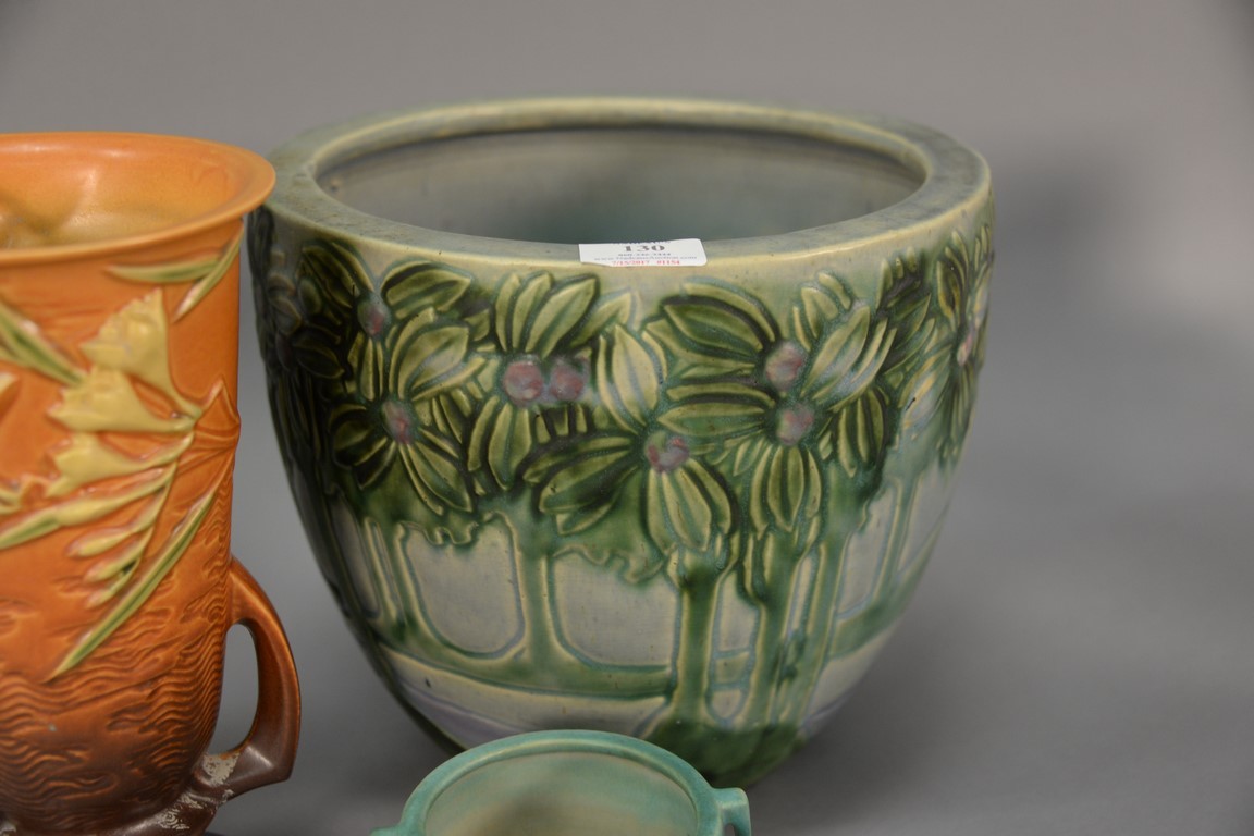 Lot 130: Four piece Roseville pottery lot including two small vases signed Roseville and two large pots unsigned. ht. 3in. to 9 1/2in. Proven…