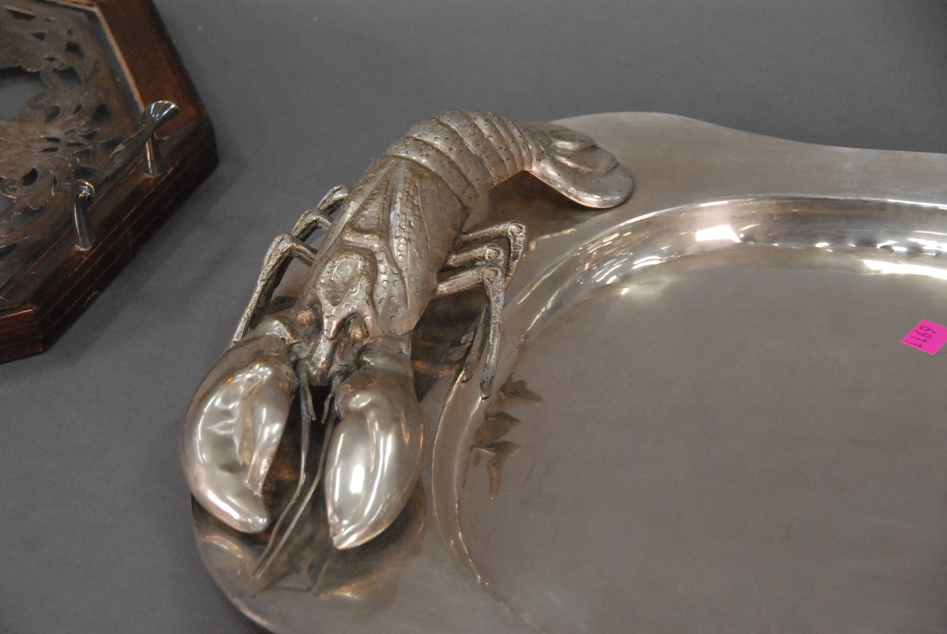 Lot 130: Franco Lagini Lapini large silverplated lobster tray mounted with life-like lobster, signed on back and made in Italy, lg. 36in.