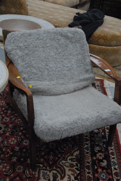 Jens Risom style Danish modern lounge chair with loose cushions.