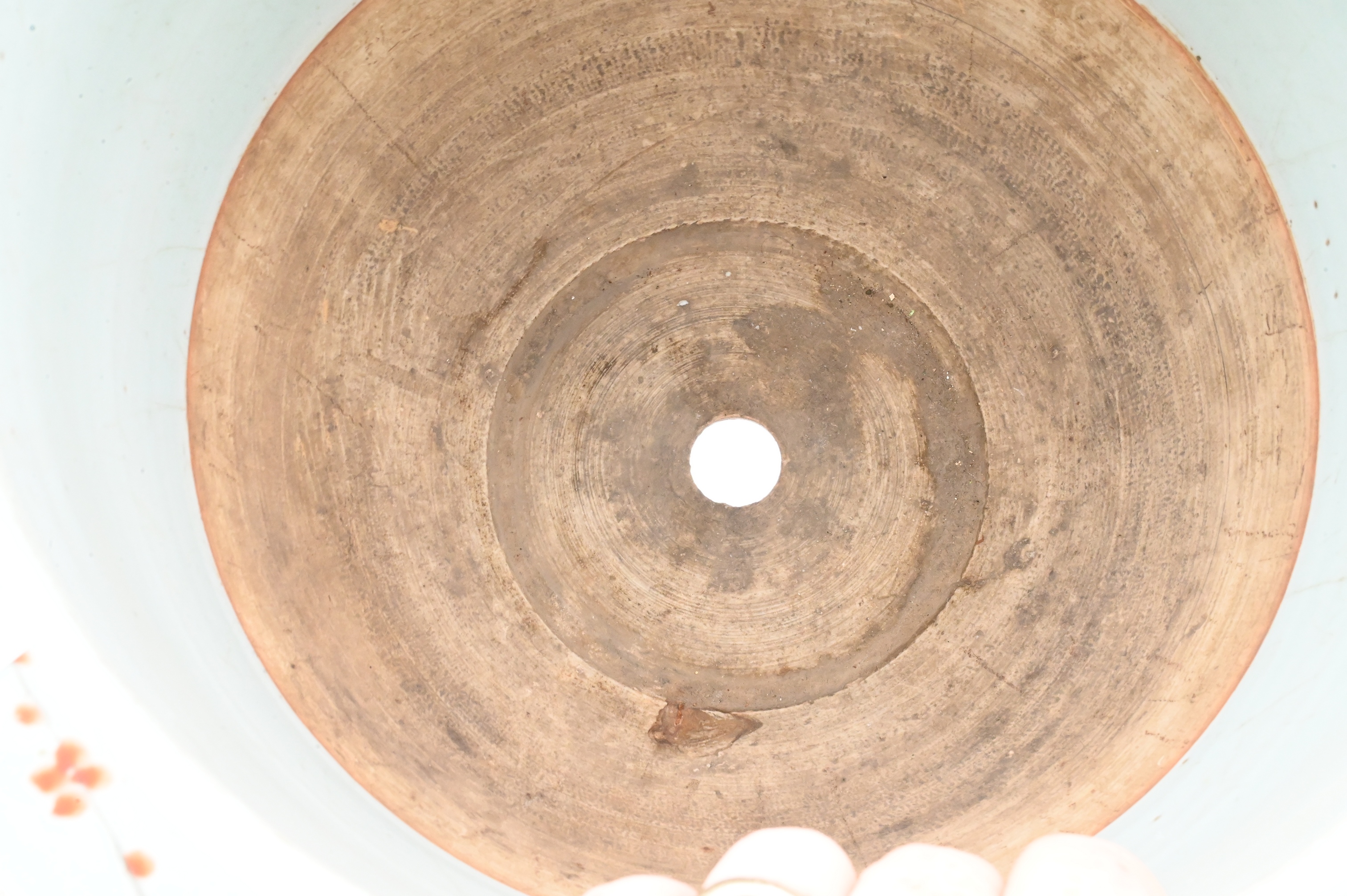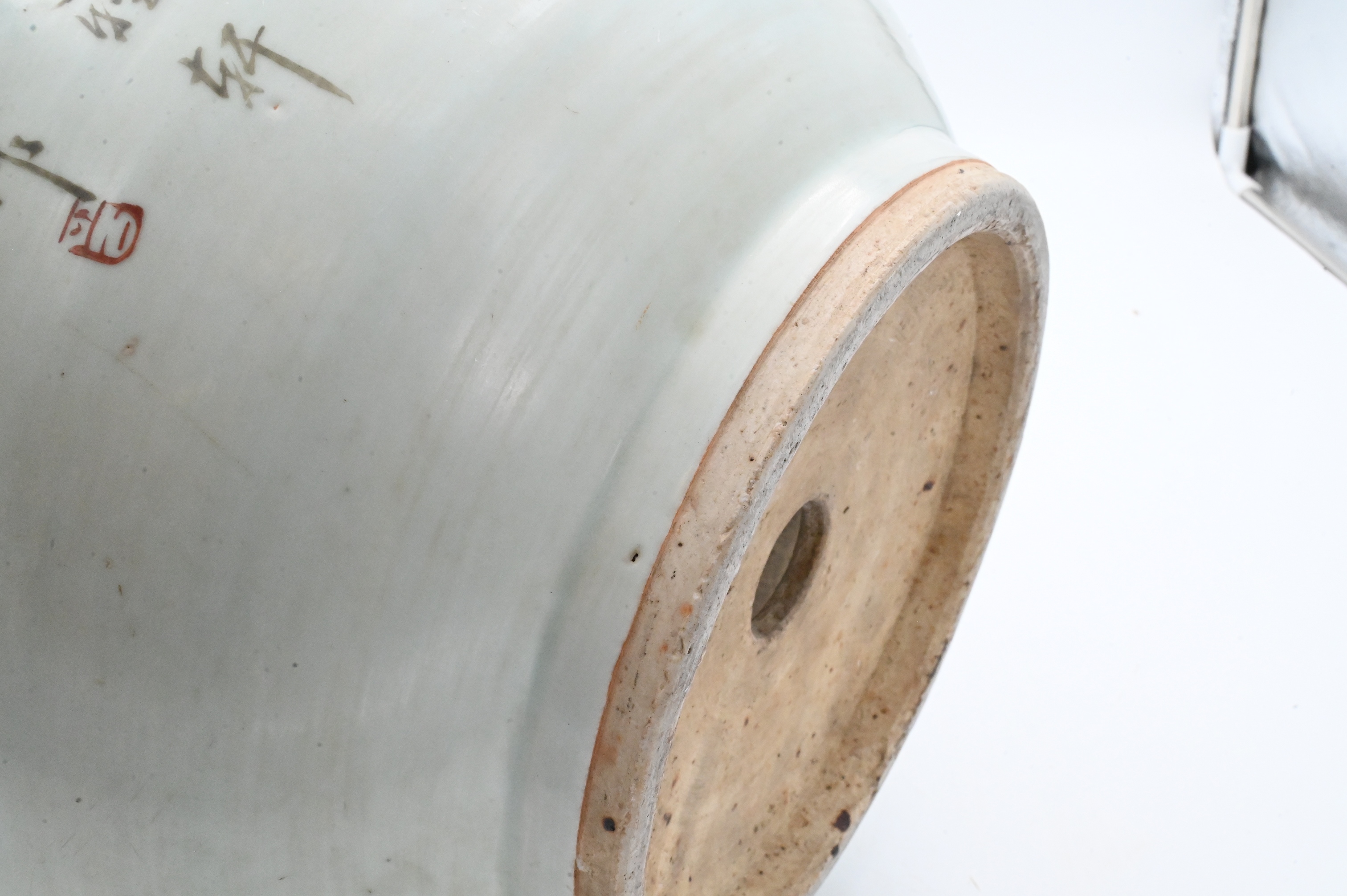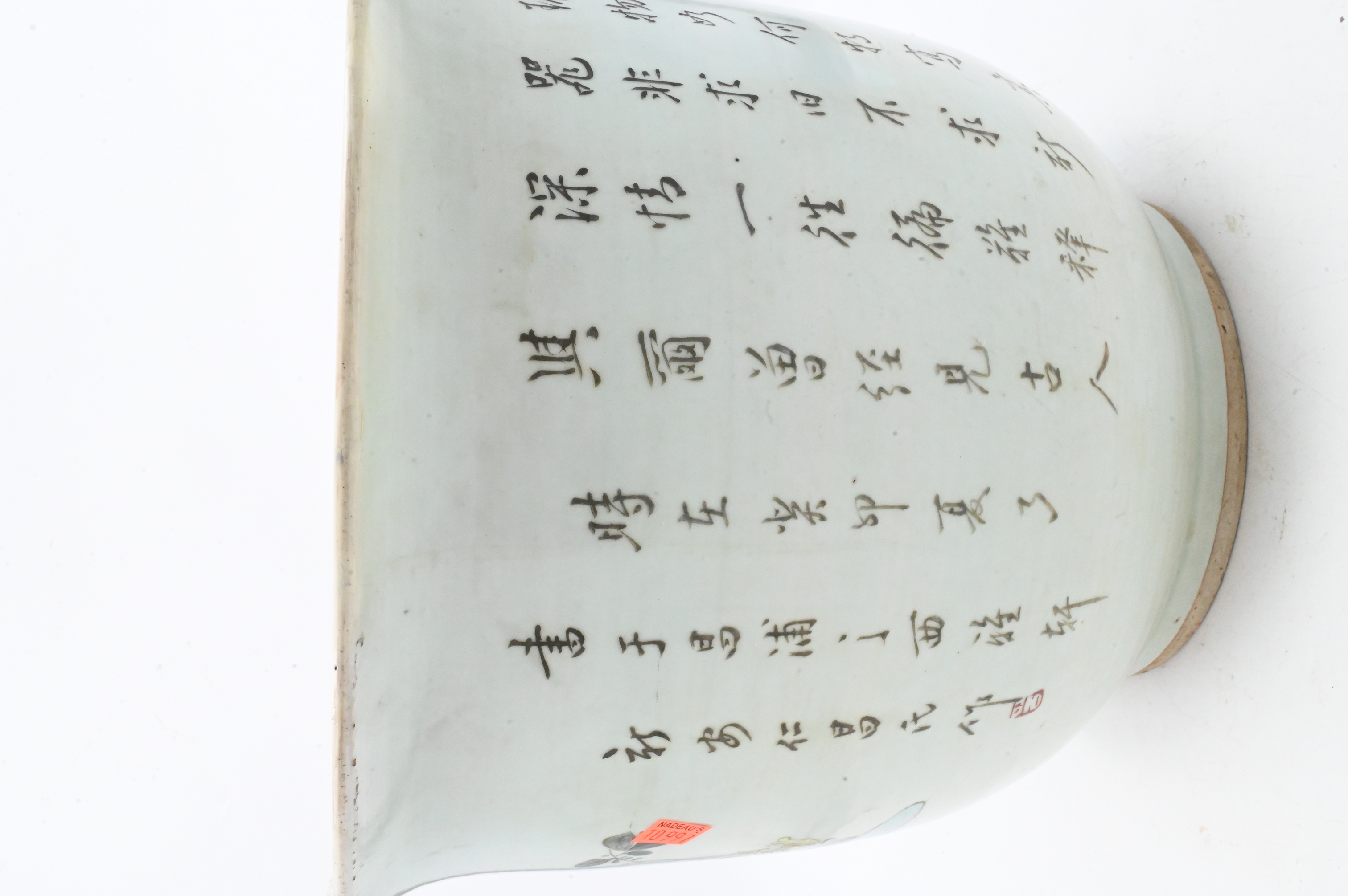 having antique and precious objects motif with character mark poem verso, drainage hole to bottom