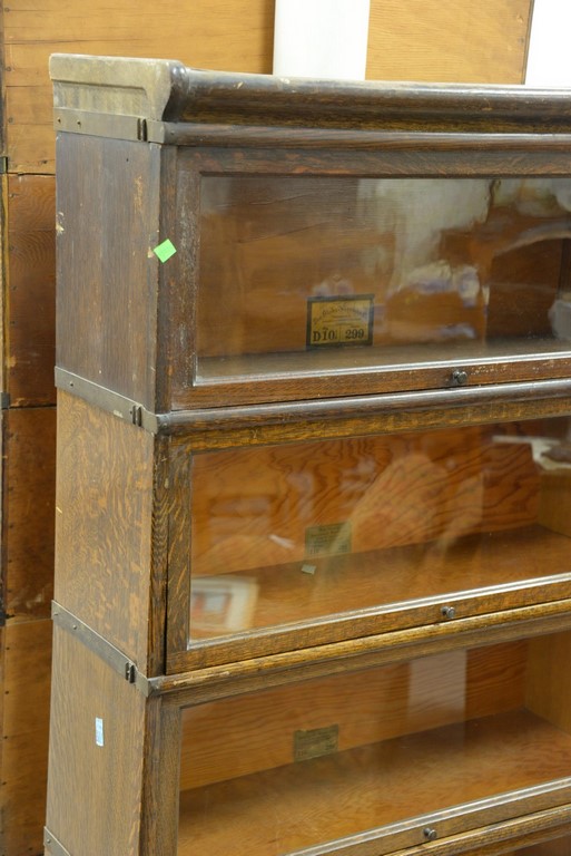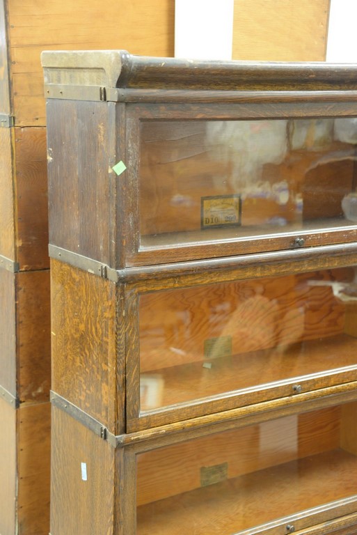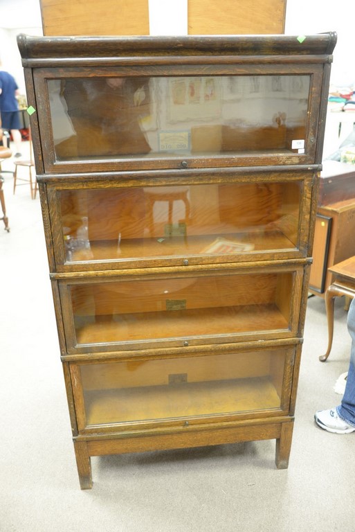 Oak four section stacking bookcase top as is. ht. 64 1/2 in. wd. 34 in. dp. 11 in.