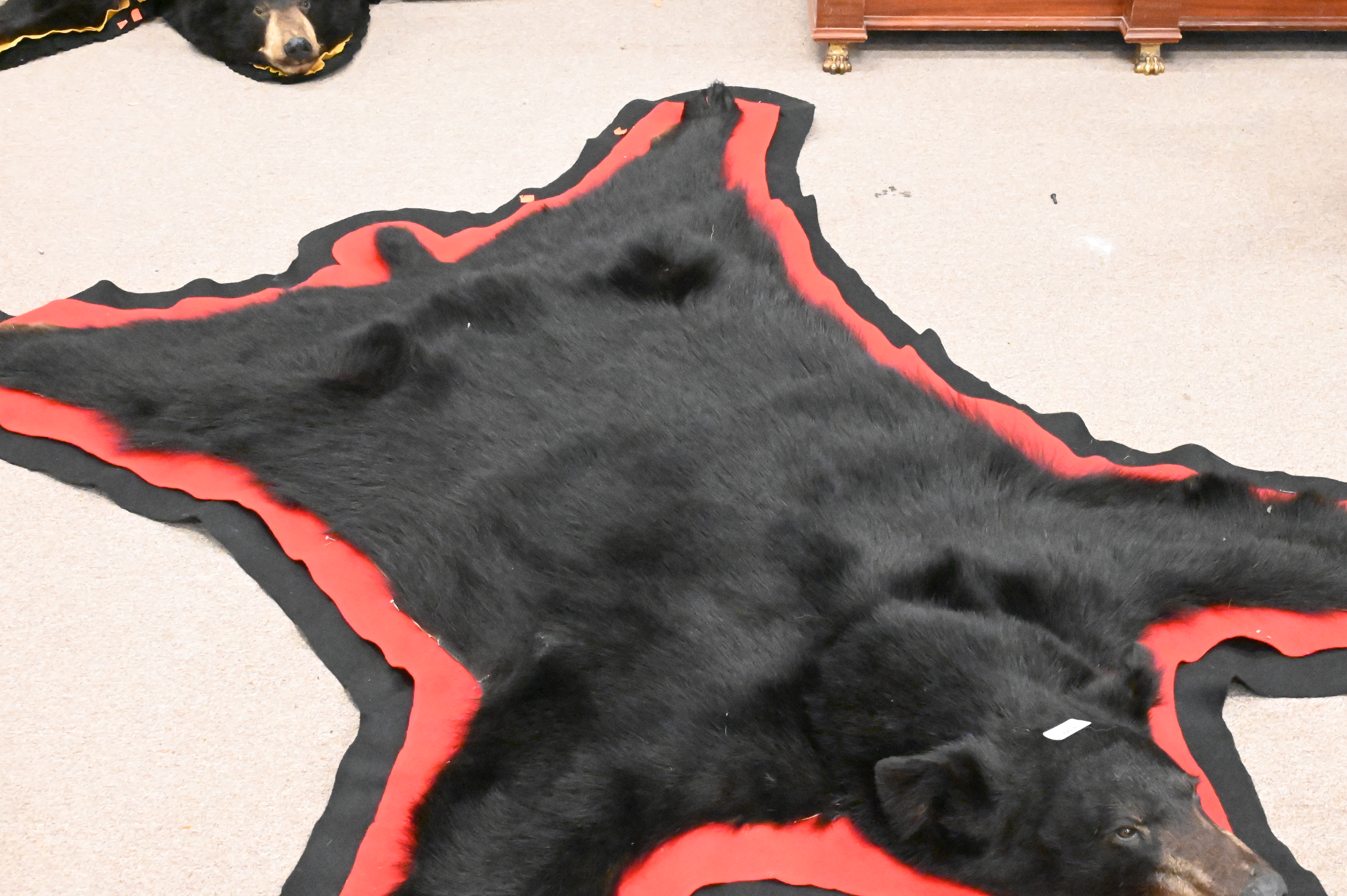 One Black Bear Skin with Mounted Head, length 68 inches