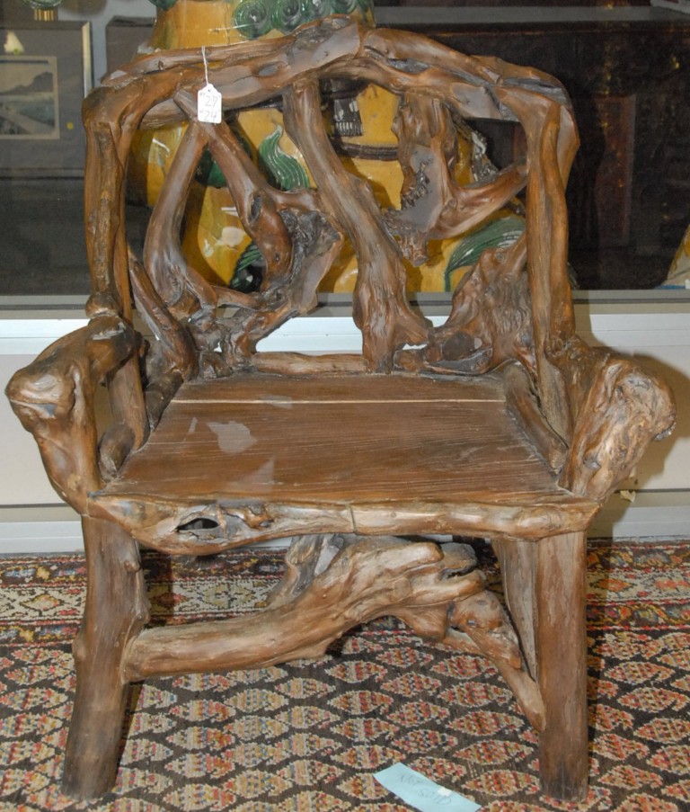 Pair of Chinese root armchairs. height 27in. width 24in.