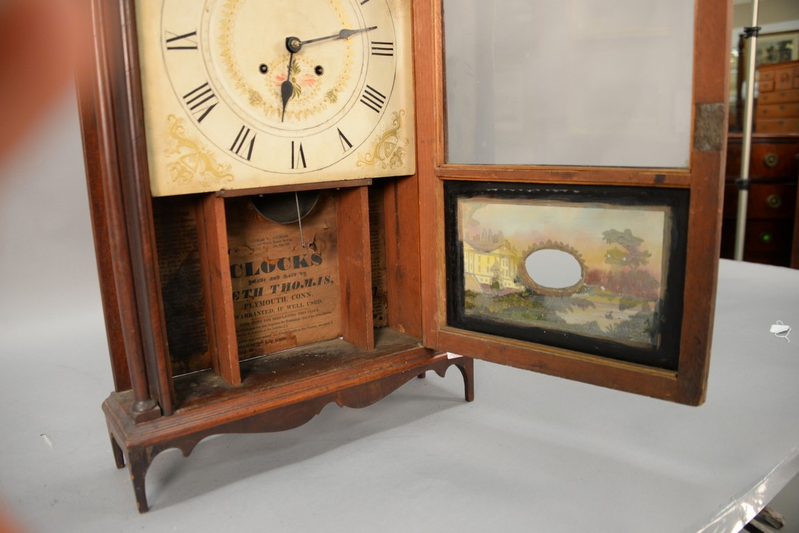 Seth Thomas pillar and scroll shelf clock works now brass. ht. 32in.
