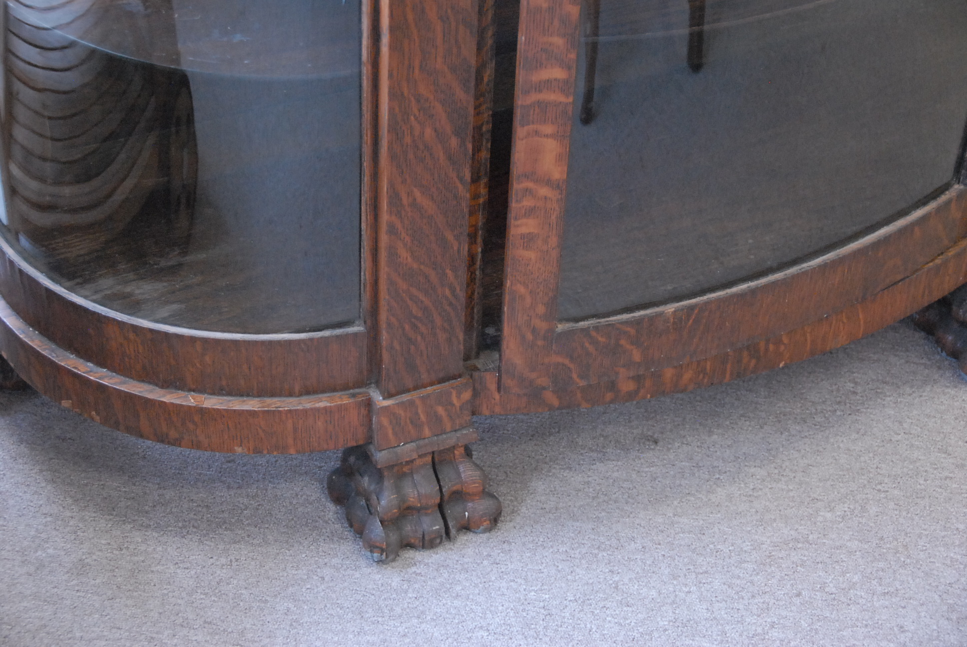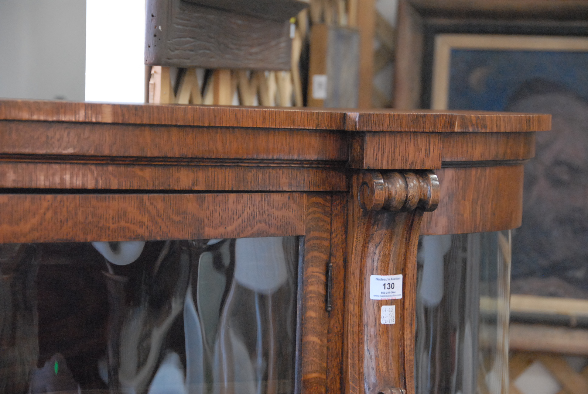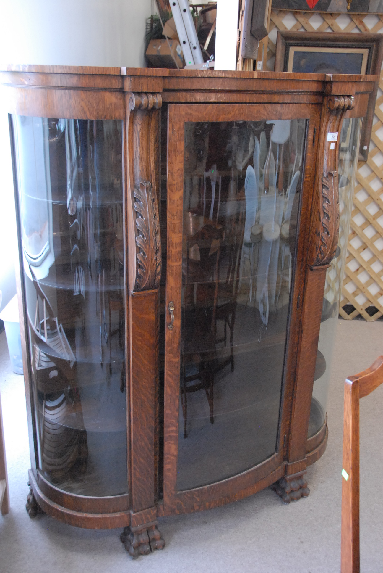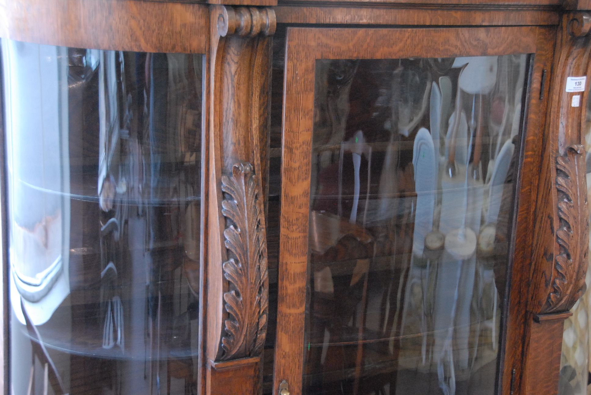 Lot 130: Victorian oak china cabinet with bowed glass sides and front, ht. 62in. wd. 50in. dp. 17 1/2in.
