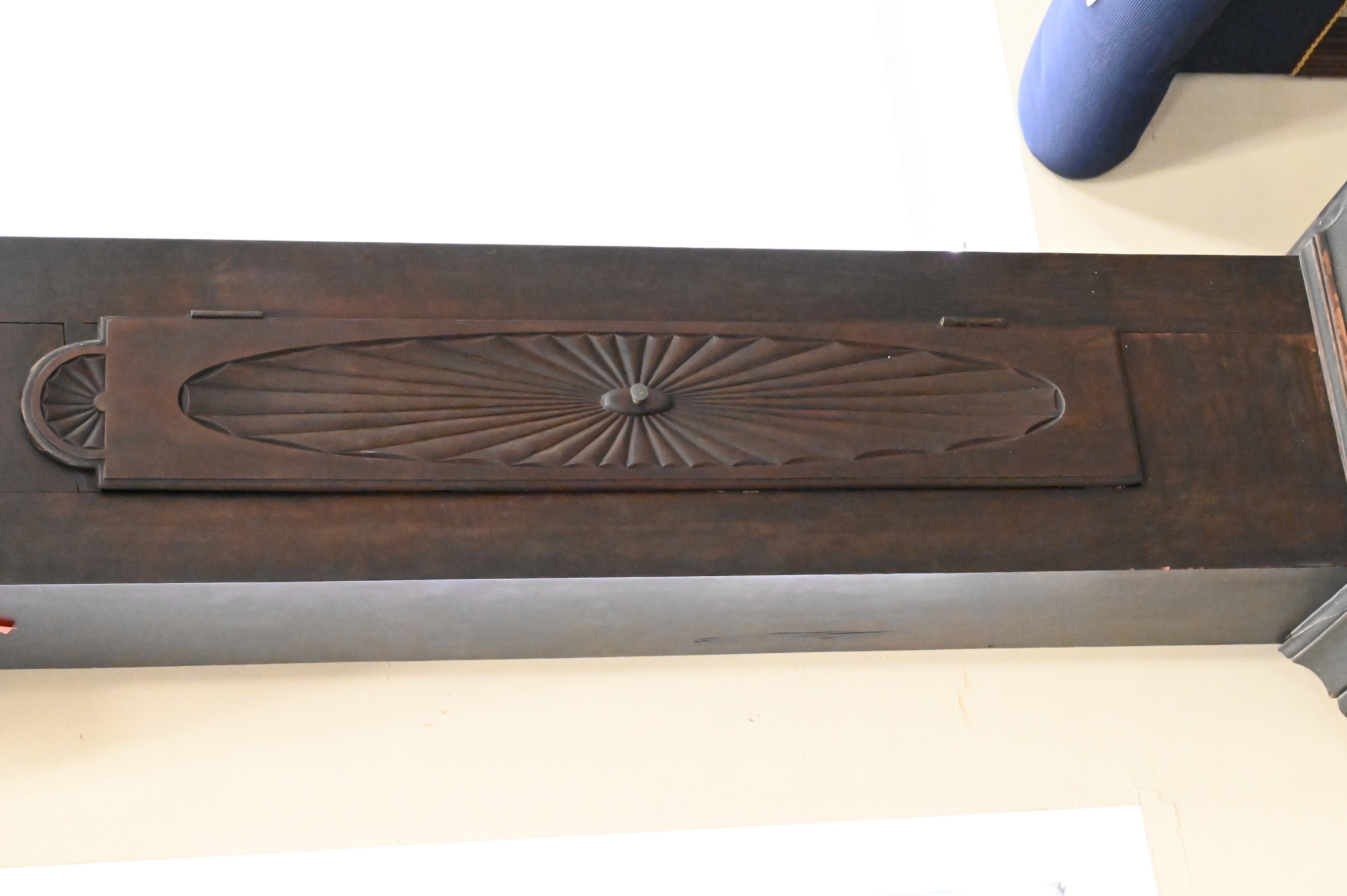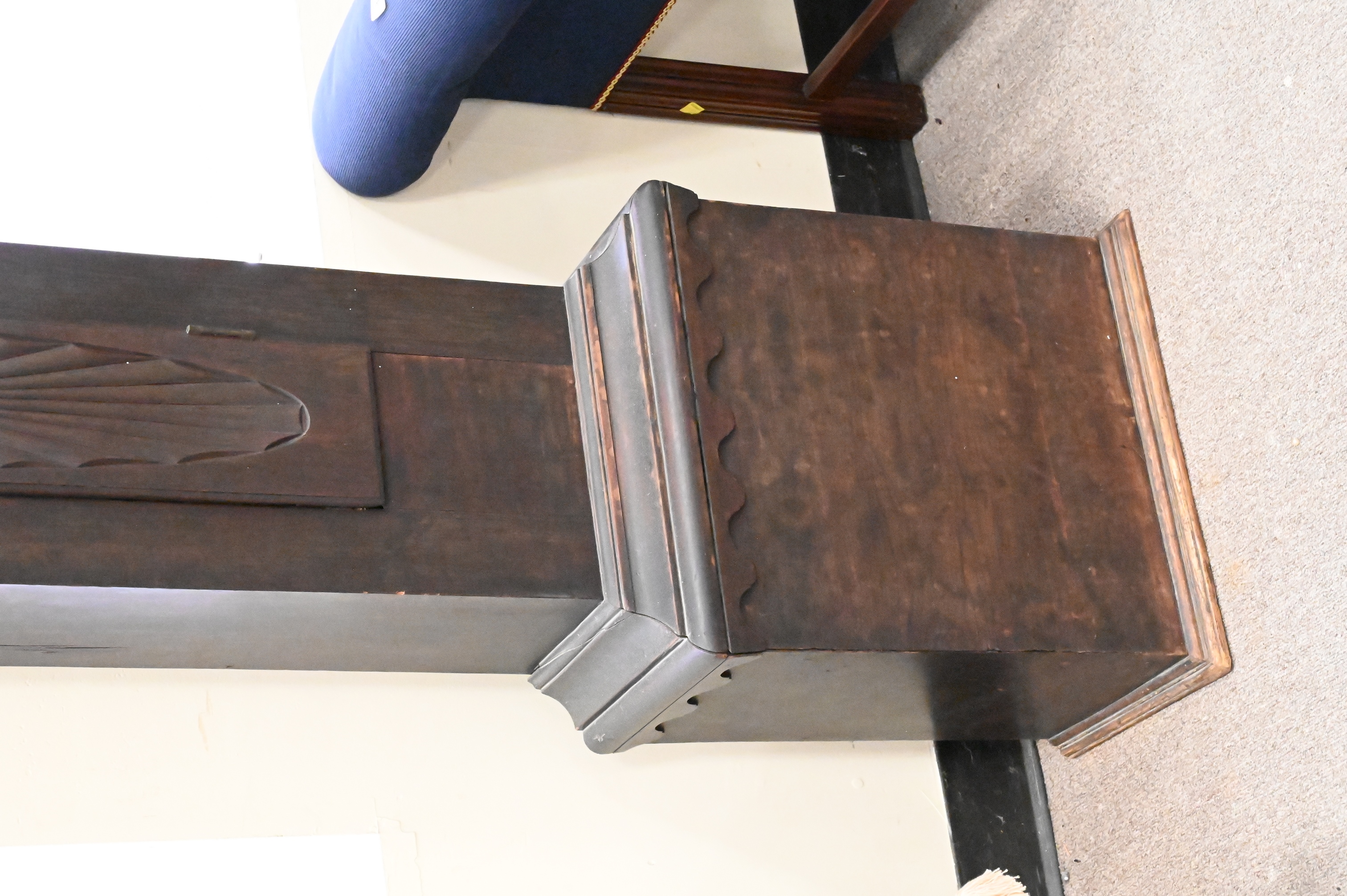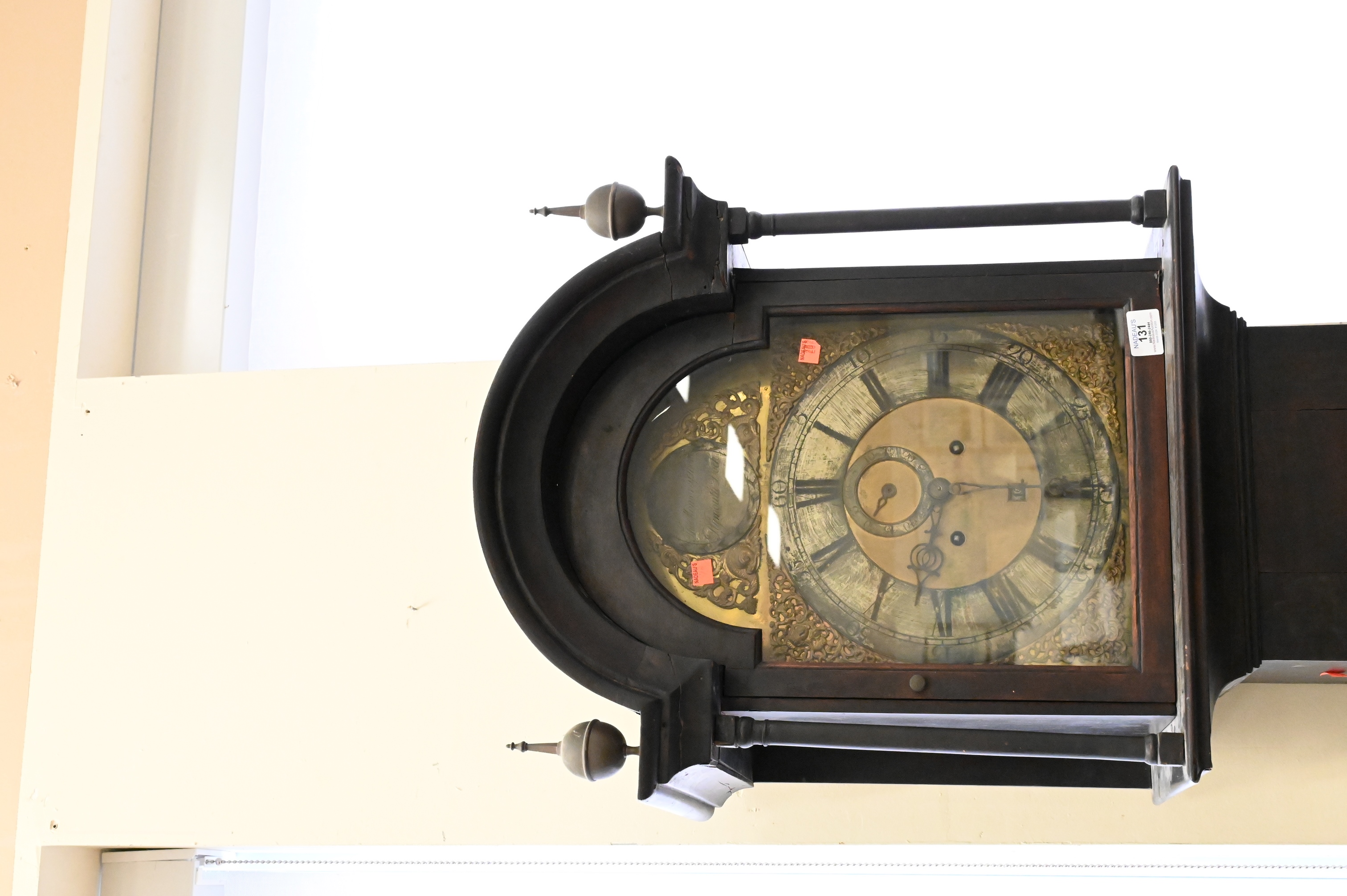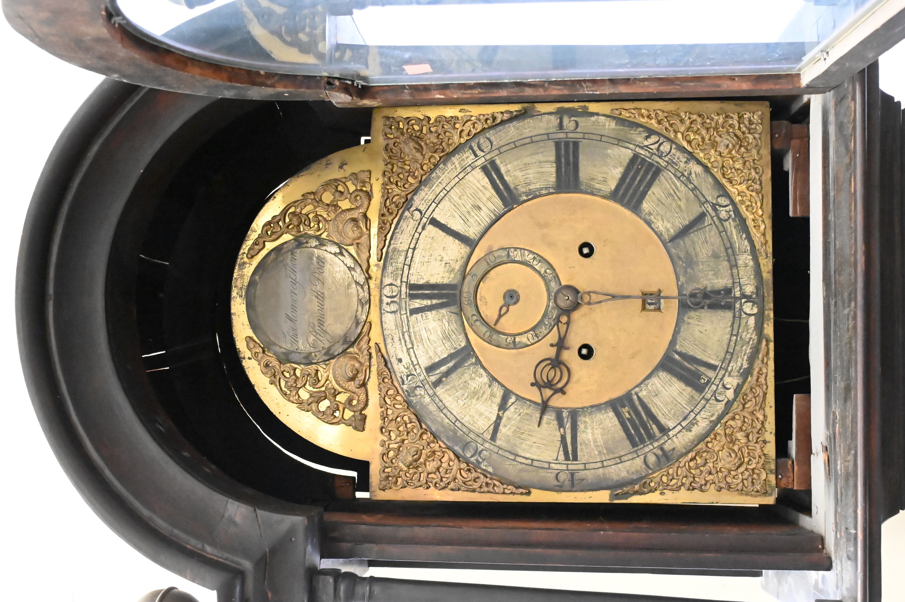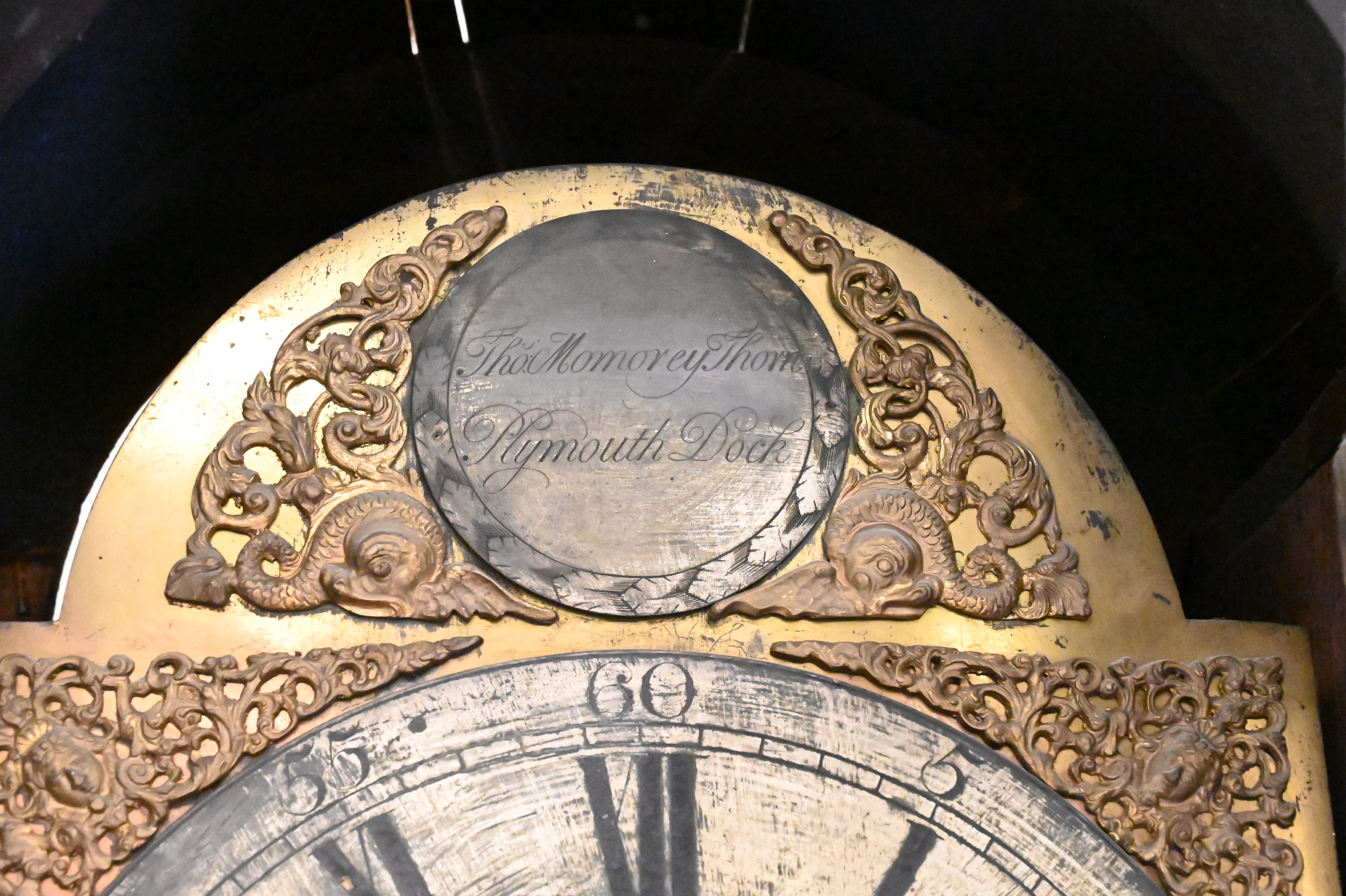 having brass works and brass dial, signed Thos. Mormorey Thorn, Plymouth Dock, in case with shell carved door, late 18th to early 19th century