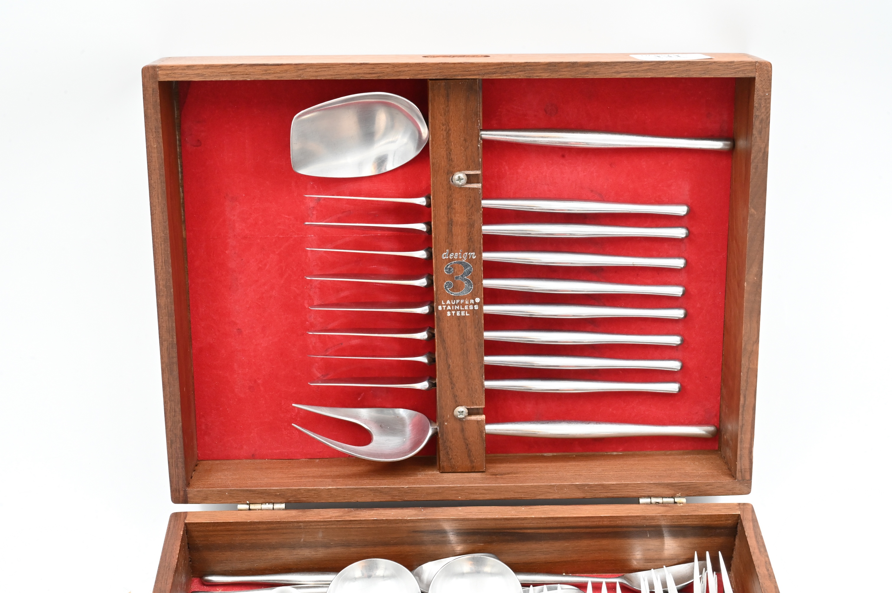 Lot 131: Lauffer Stainless Flatware Set in Fitted Box Service for Eight.