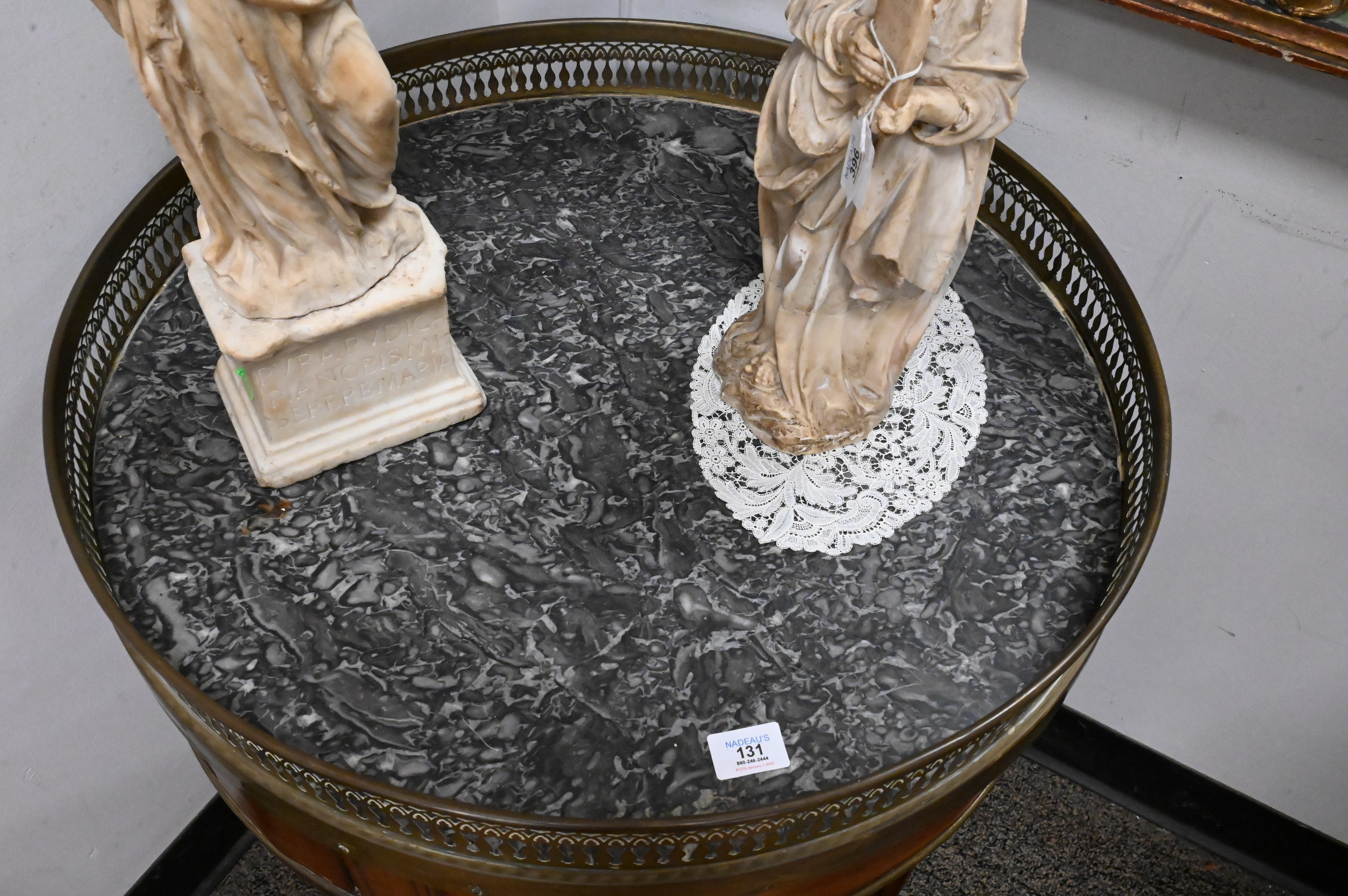 Lot 131: Louis XVI Marble Top Mahogany Bouillotte Table