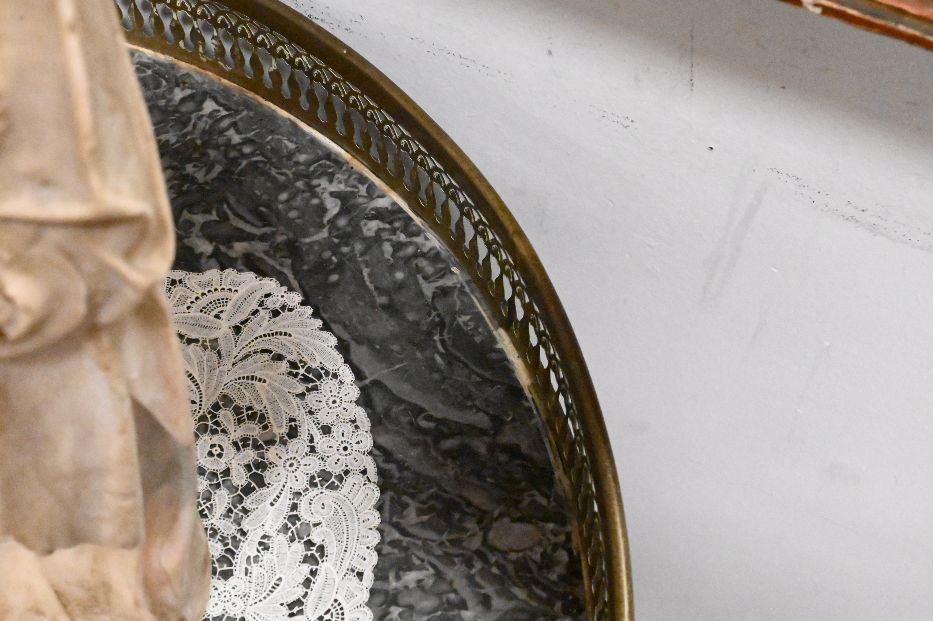 ormolu with expected tarnish and wear; overall good presentation for its age