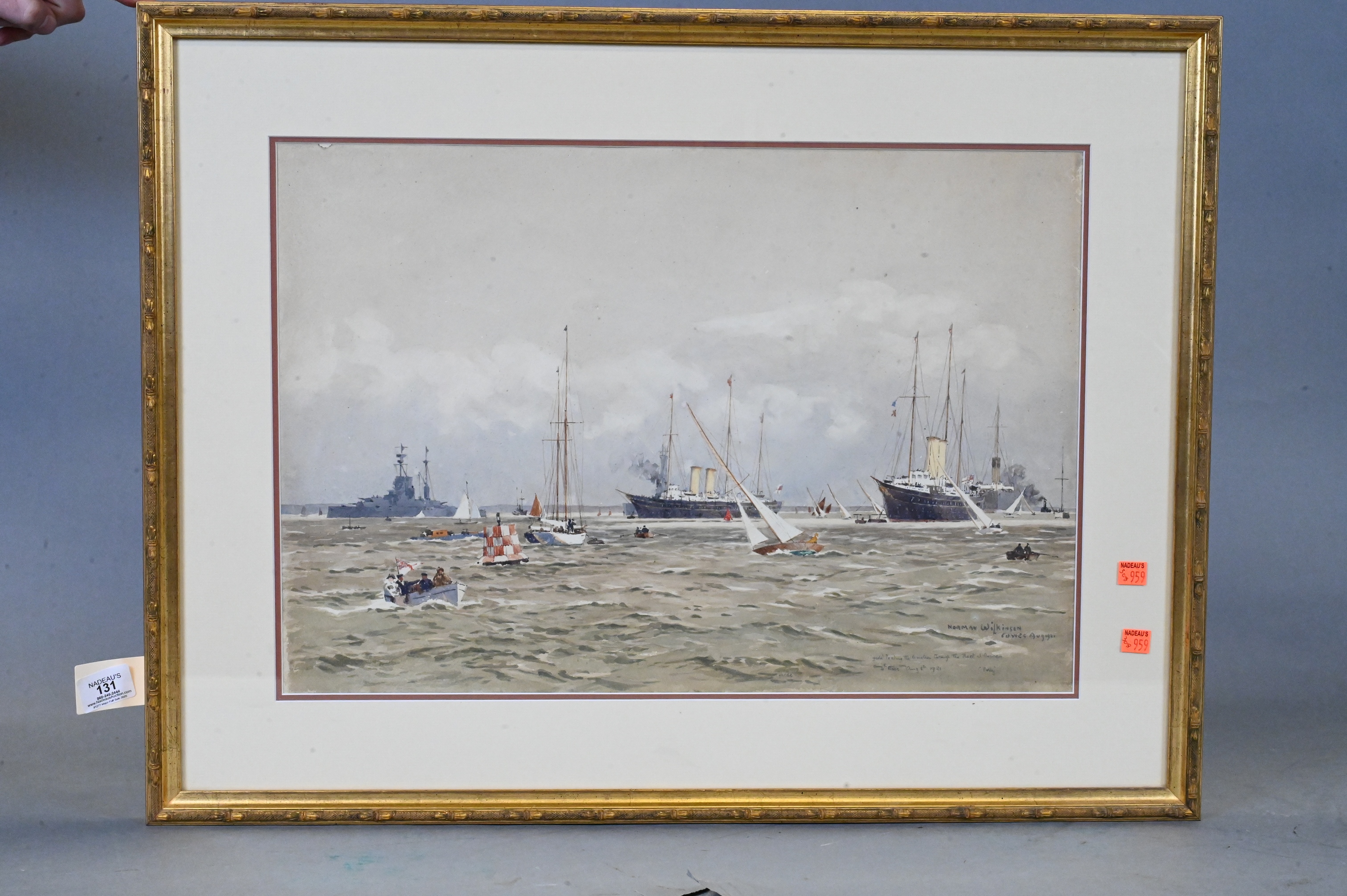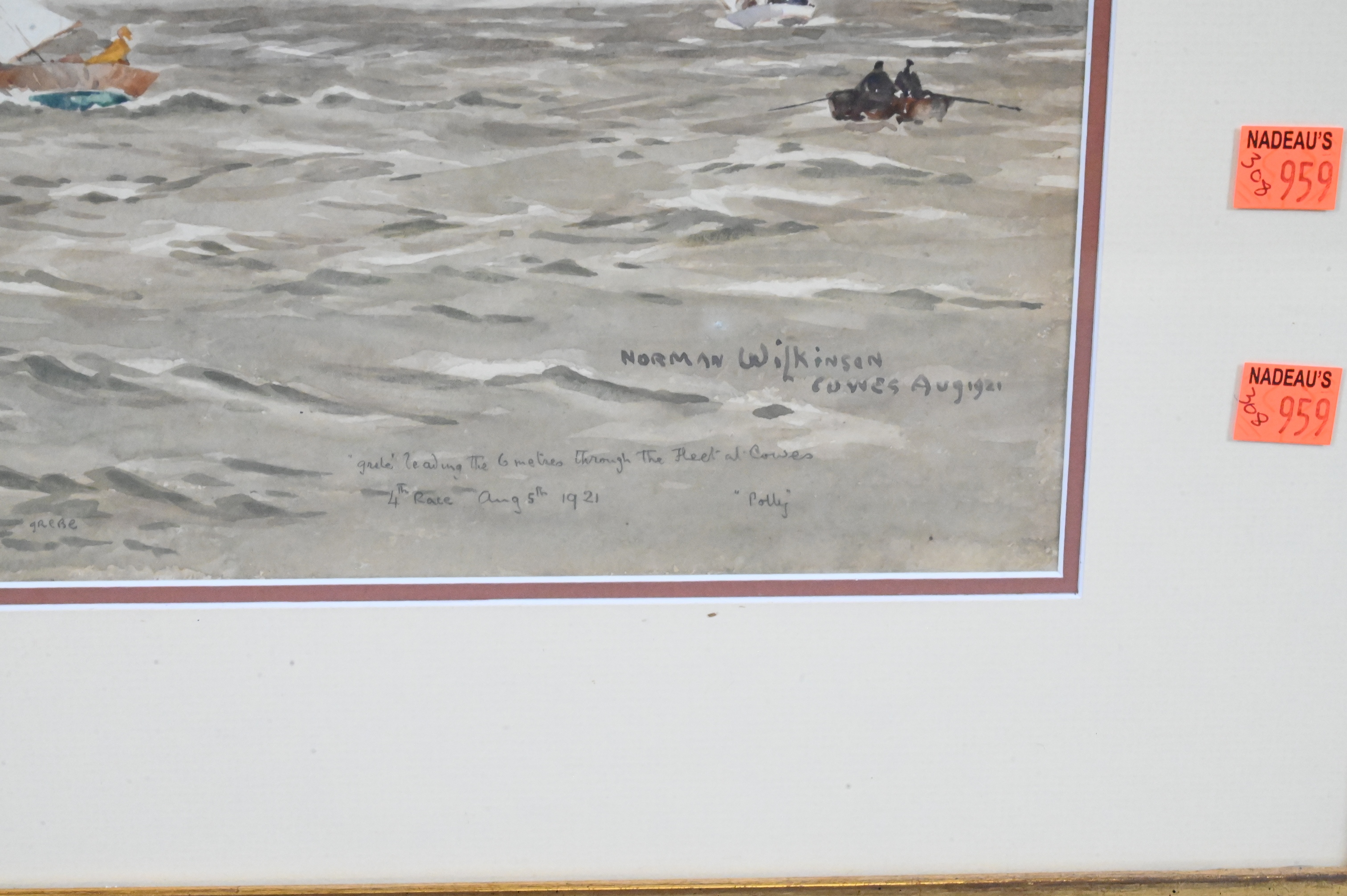 Signed lower right Norman Wilkinson and inscribed, along with a letter inviting Mr. Chubb to a dinner with The King and Queen aboard the H.M. Yacht Victoria and Albert