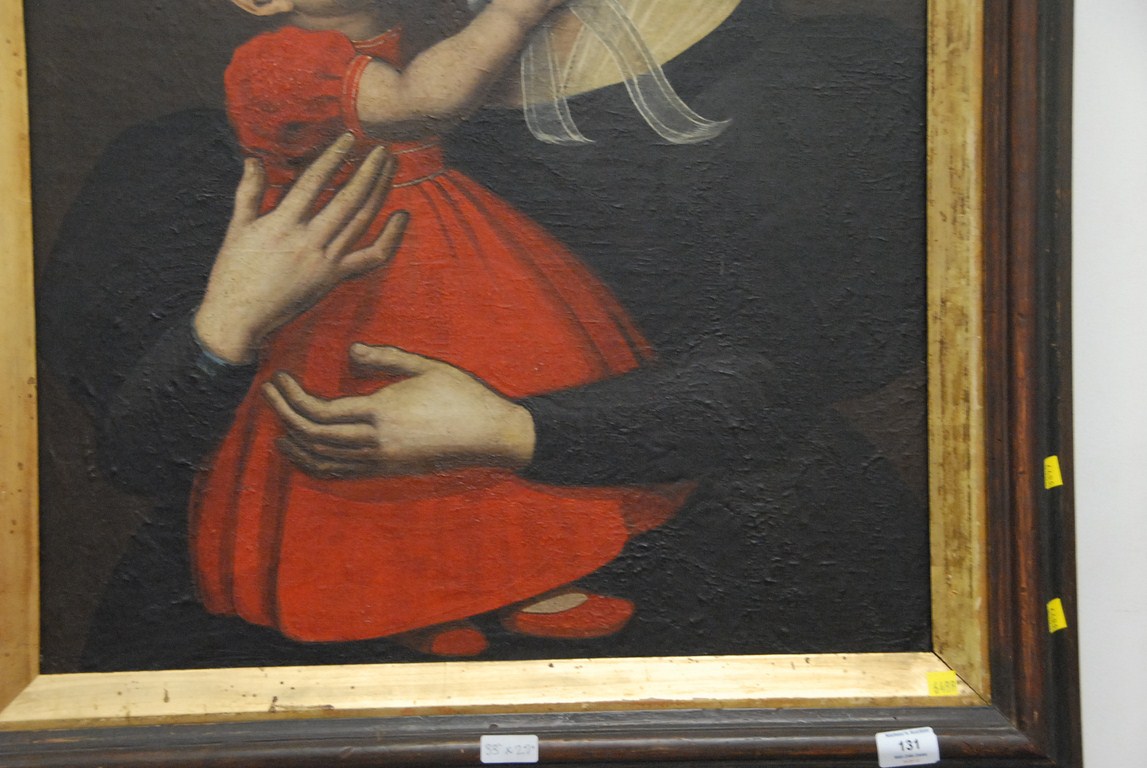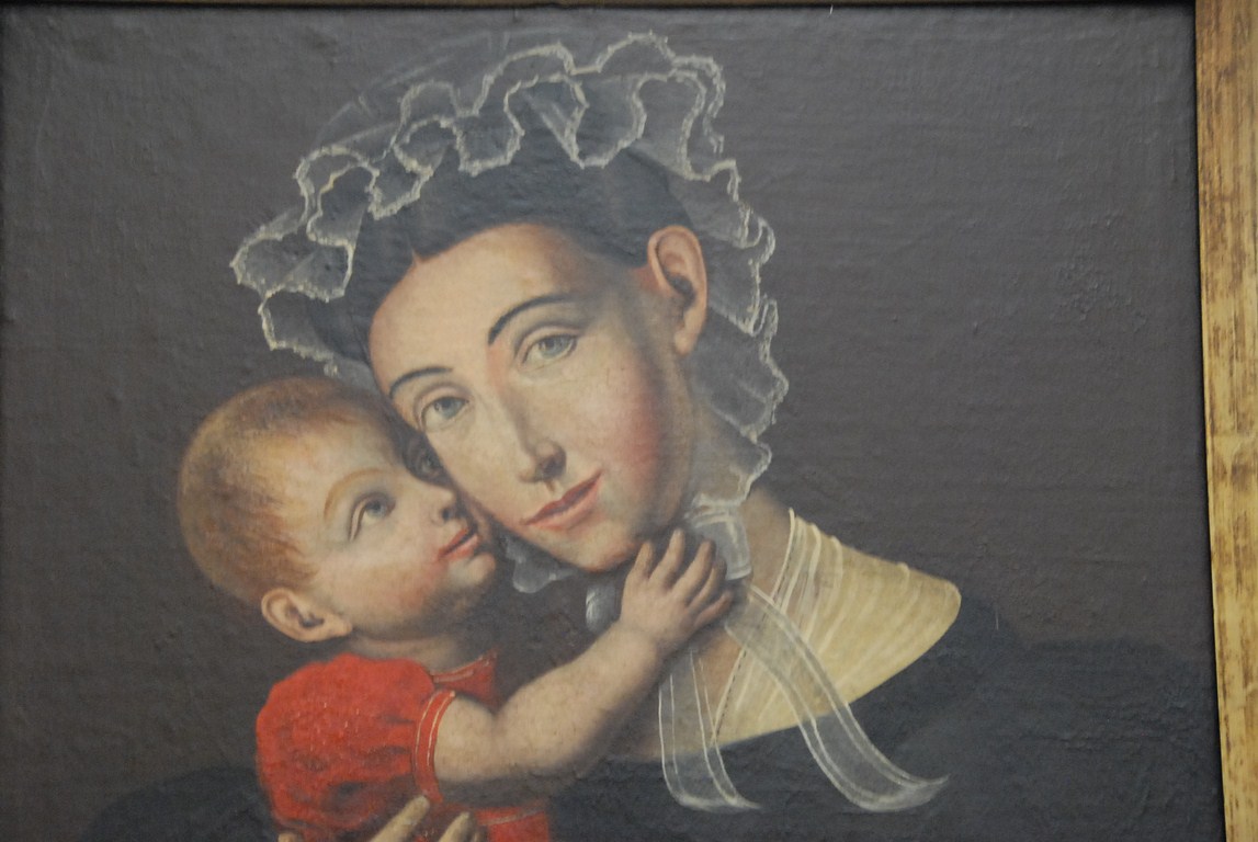 Lot 131: PORTRAIT OF MOTHER AND CHILD oil on board unsigned 33 x 27 Provenance: Estate of Judy McDonough Gengras of Stoner Drive, West Ha…..