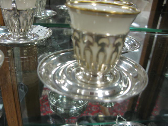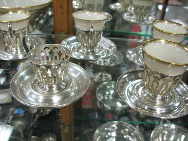 Set of five sterling silver demitasse cups with four Lenox inserts