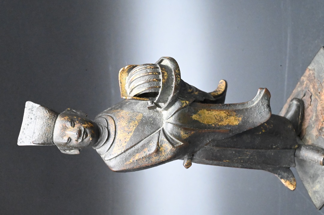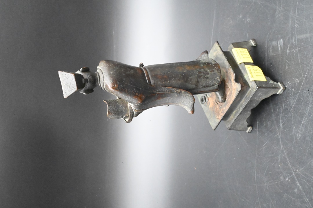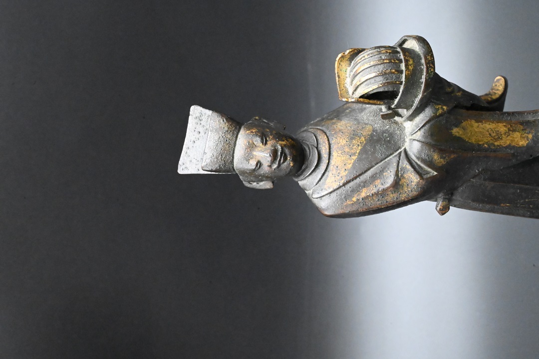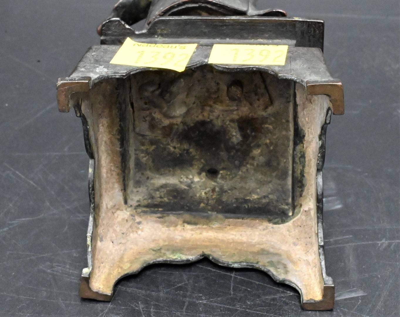 Chinese Bronze Serving Figure, on stand, 19th century or earlier, height 8 1/4 inches.