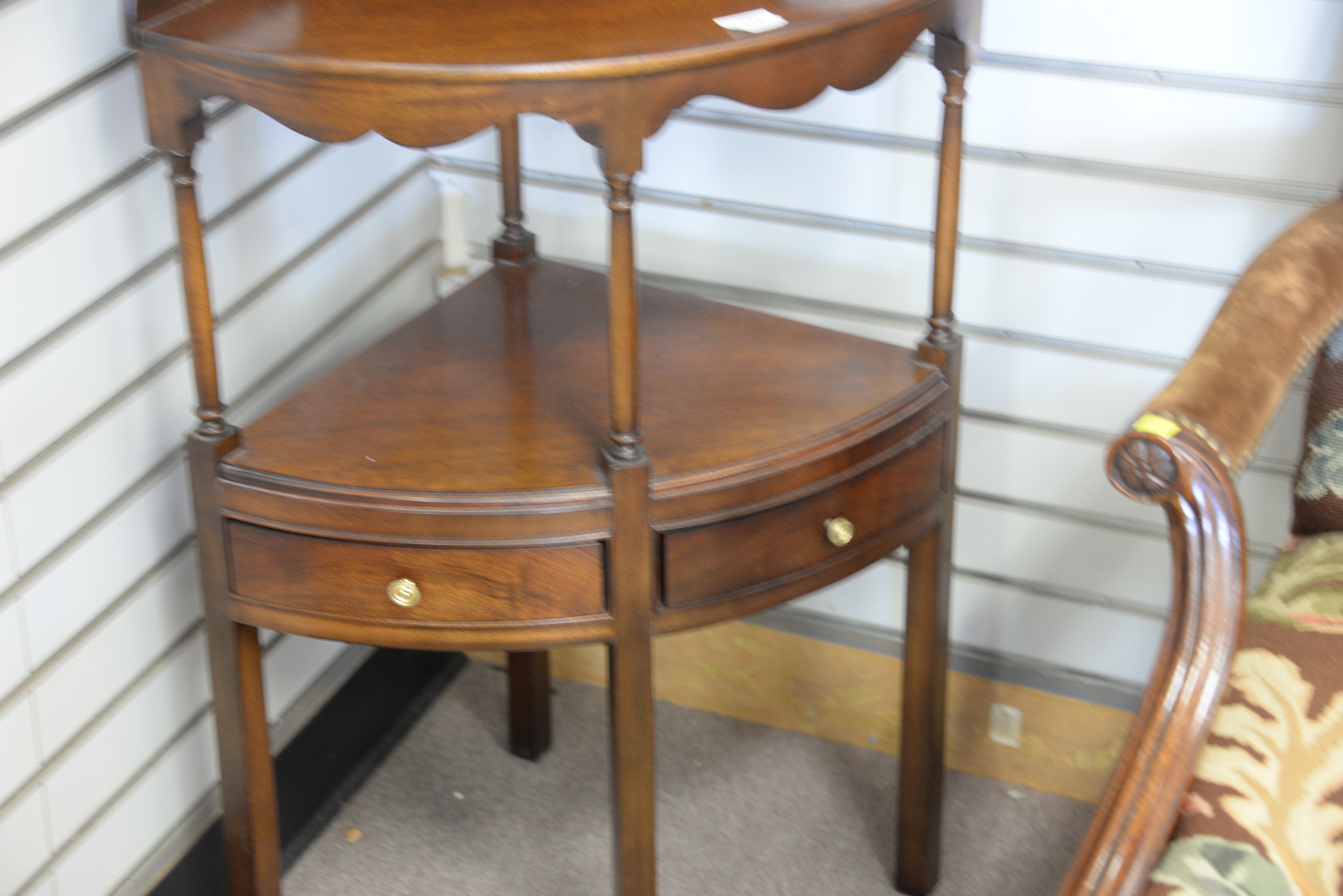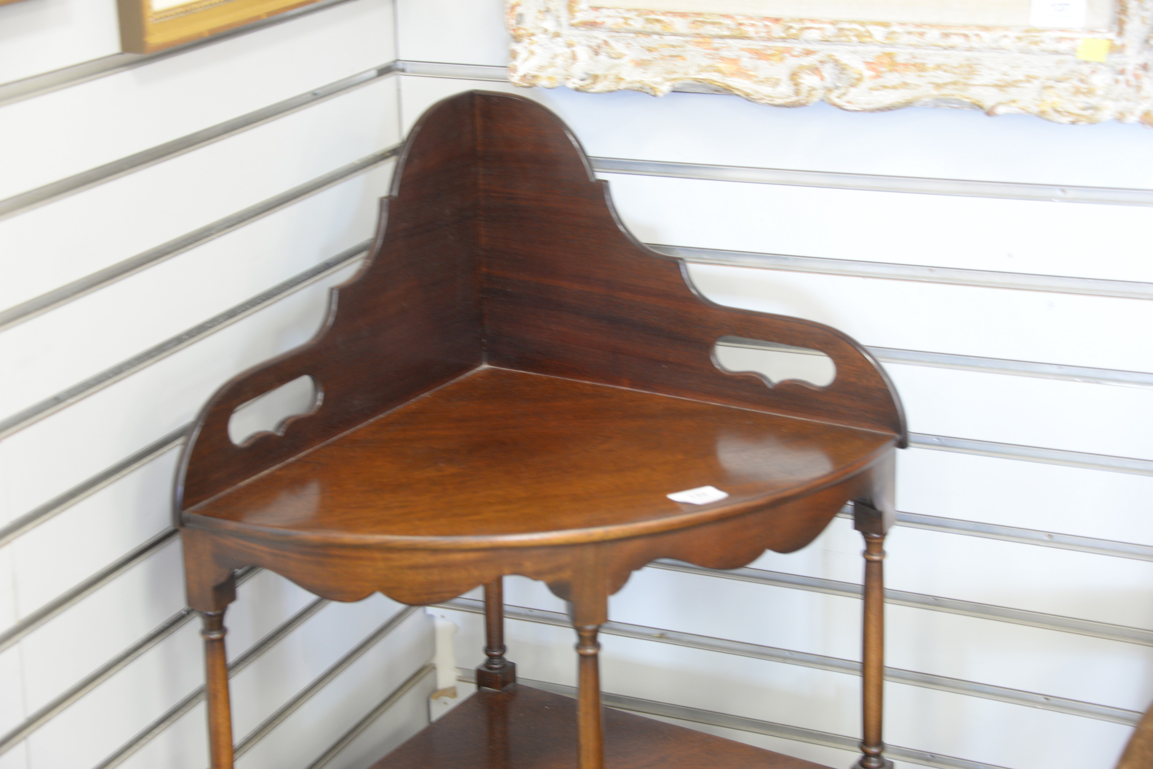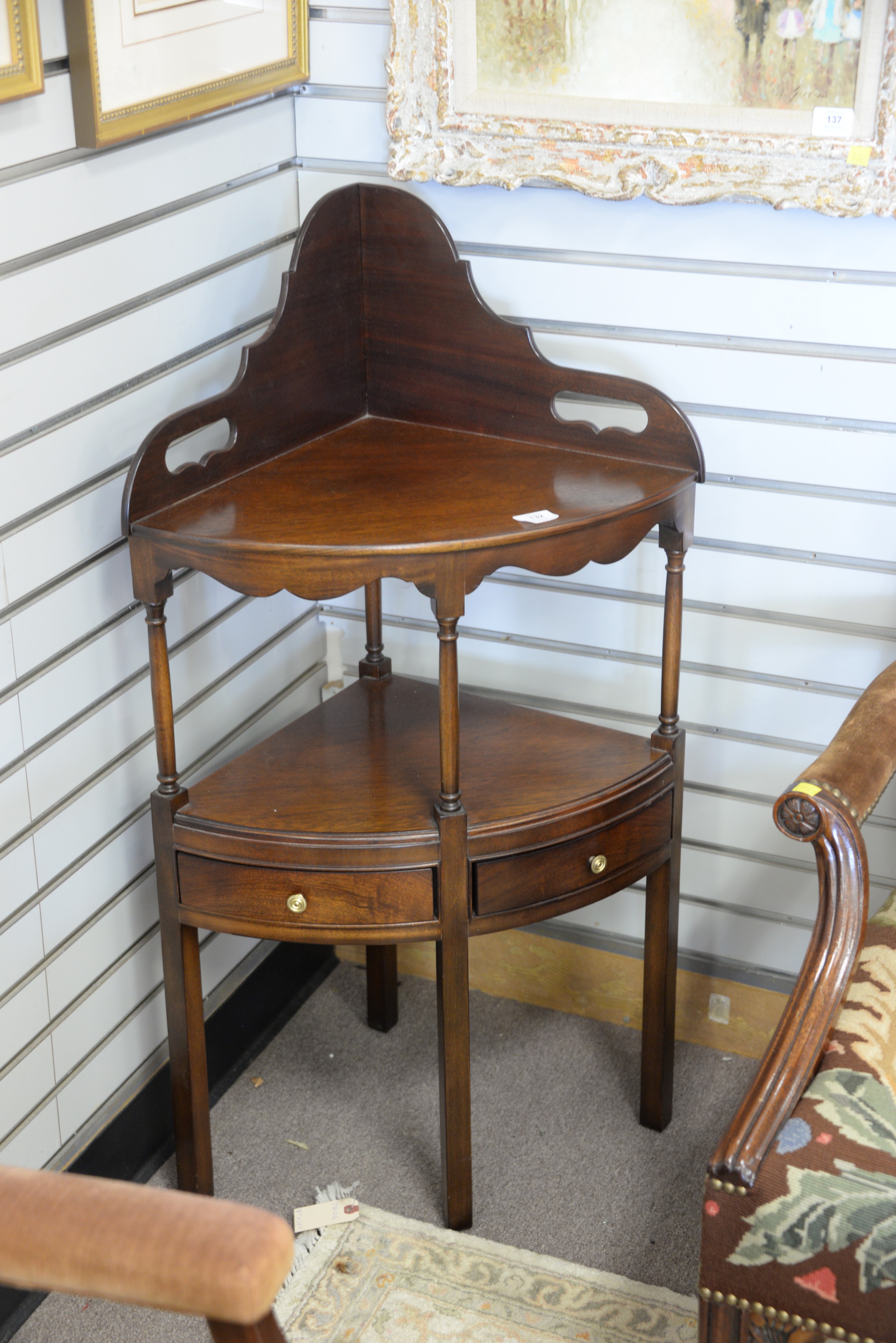 Custom mahogany corner wash stand. ht. 41 in. wd. 25 in. dp. 16 in.