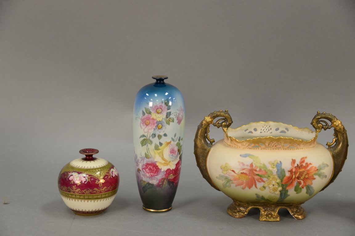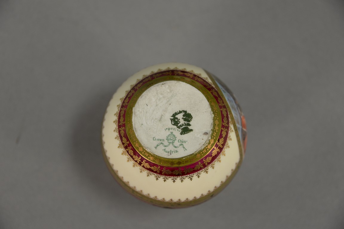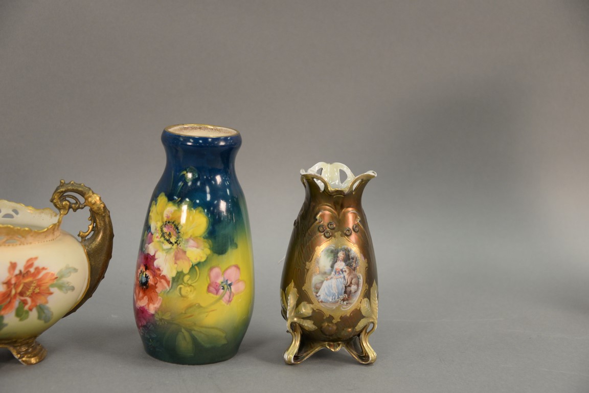 Lot 132: Five porcelain vases including two Royal Bonn with hand painted flowers, three Royal Vienna painted portrait vases, bud vase with th…