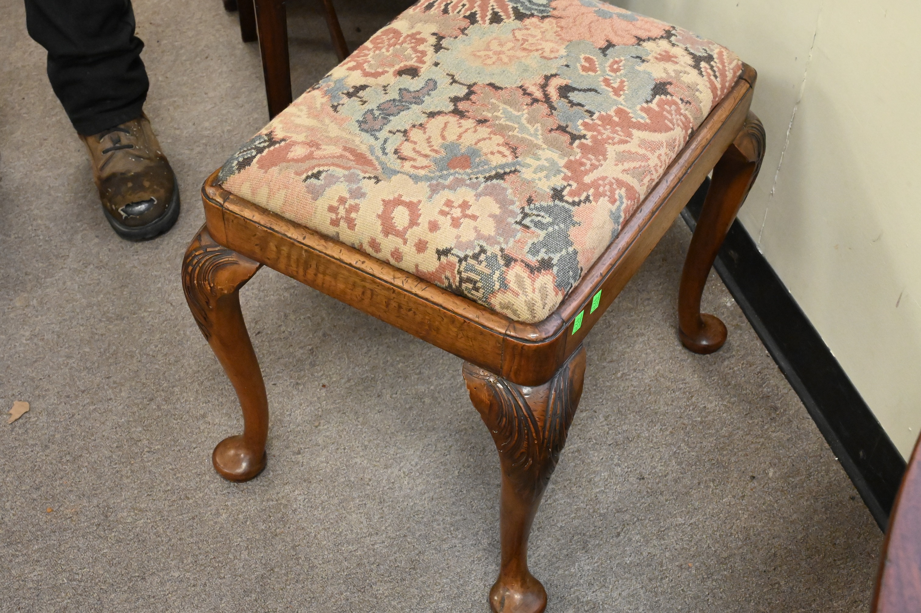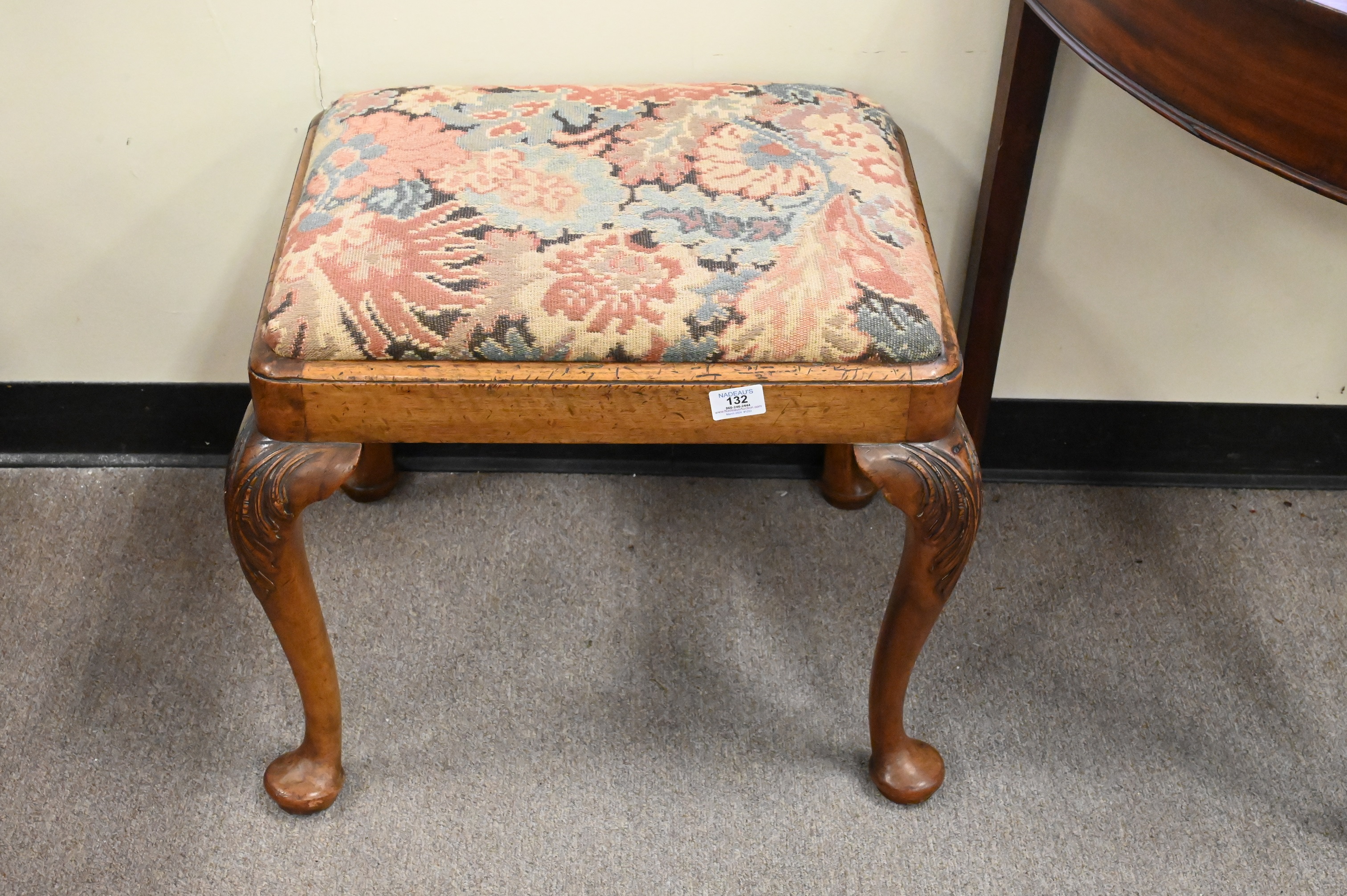Lot 132: George III Style Walnut Bench with Needlepoint Top