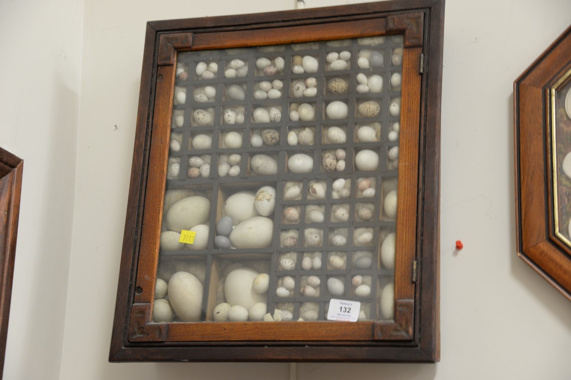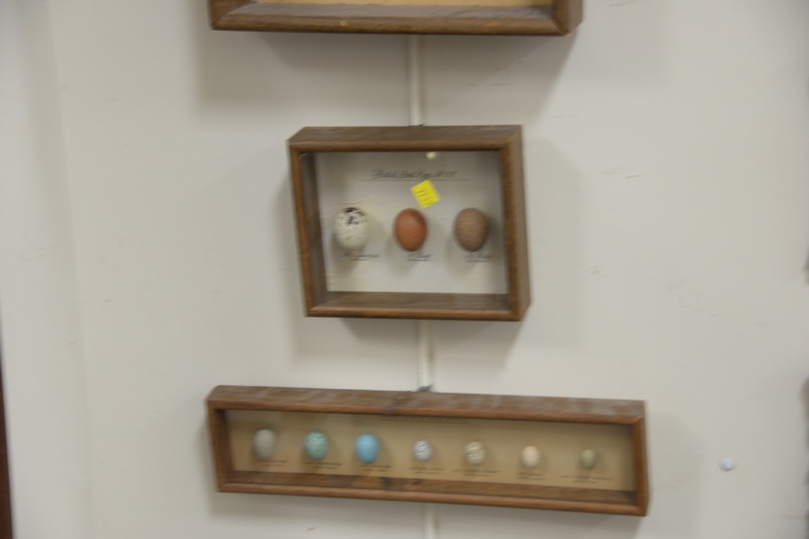 Group of four egg specimens in shadow boxes. 3 3/4 x 15 1/2 to 18 3/4 x 16