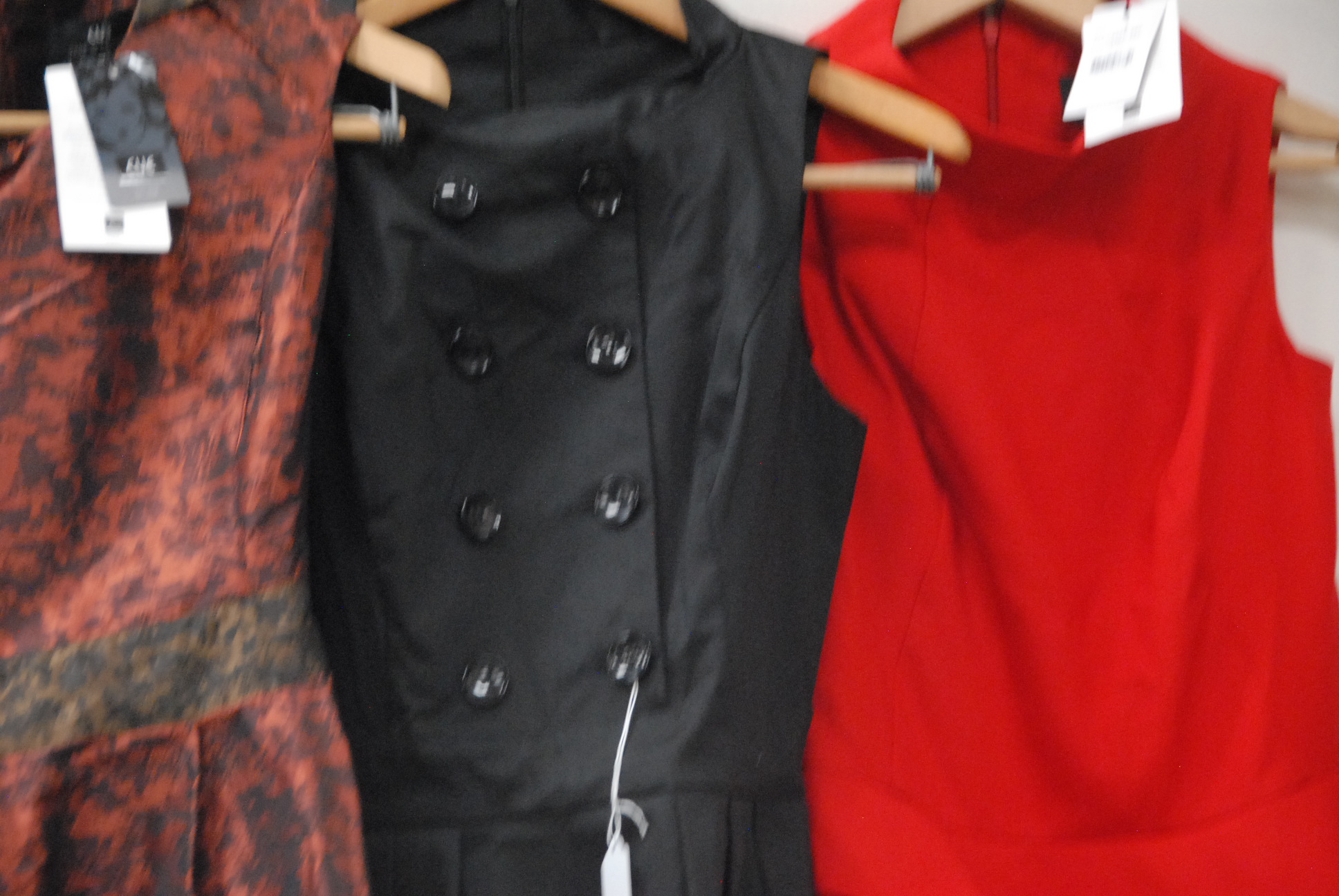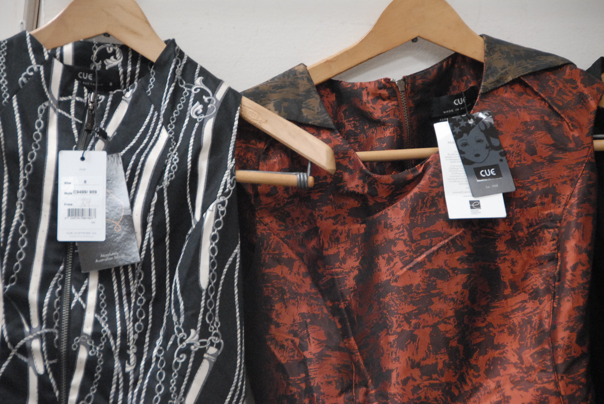Group of four new Cue dresses all with price tags totaling approximately 1,100, size 6.