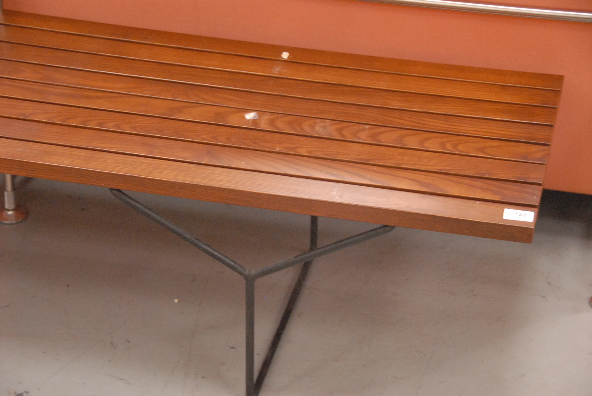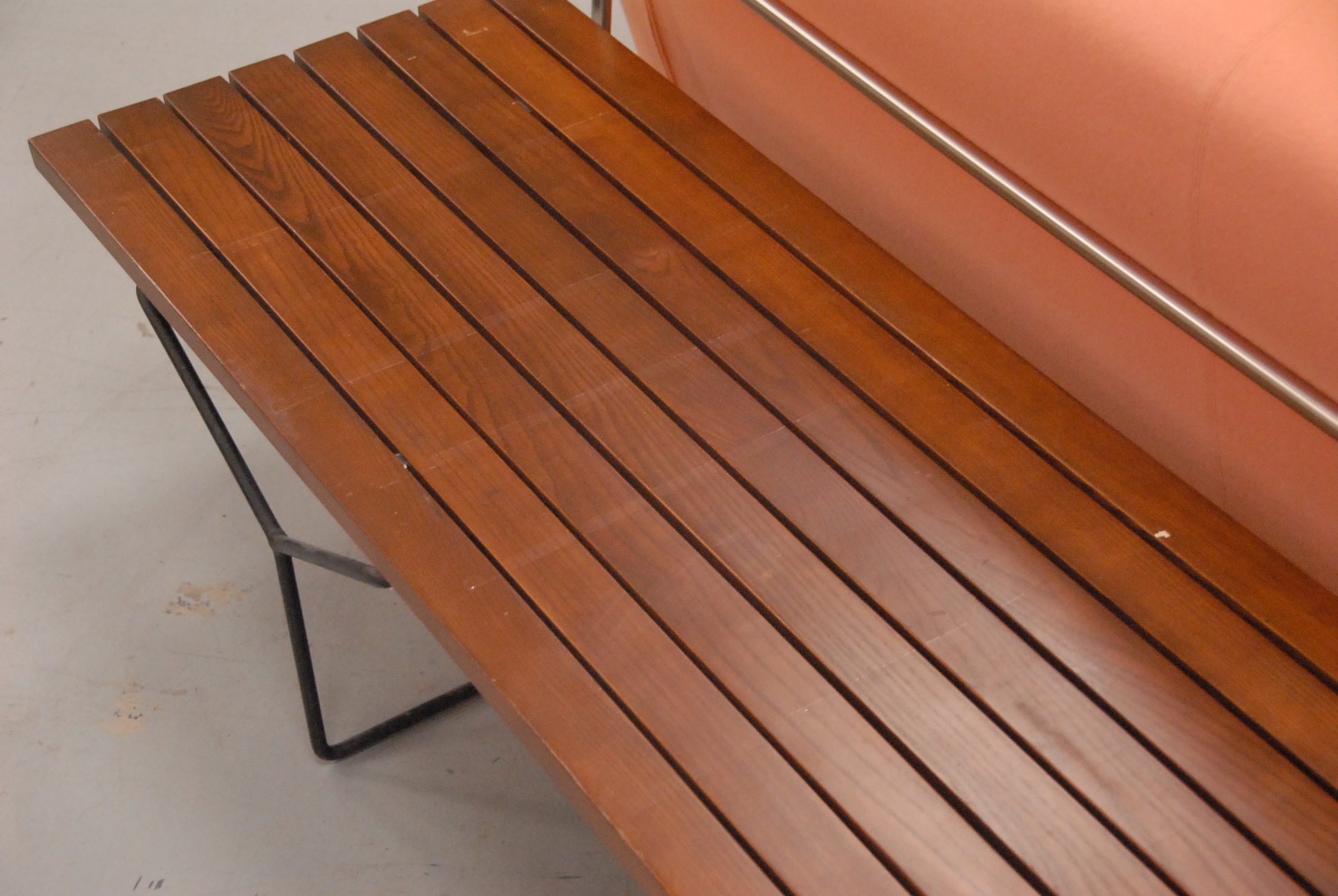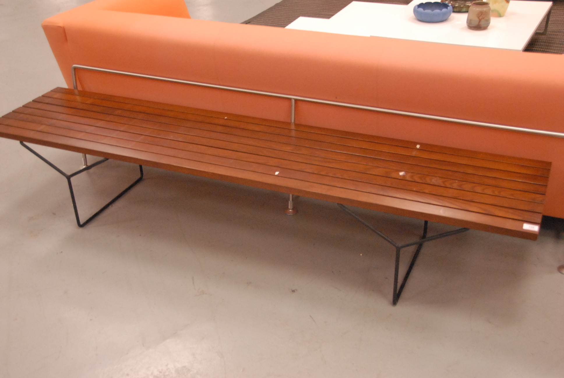 Lot 132: Harry Bertoia by Knoll slotted bench with ash top and wrought iron base, original finish very good, lg. 82in. ht. 15 1/2in. dp. 18in.