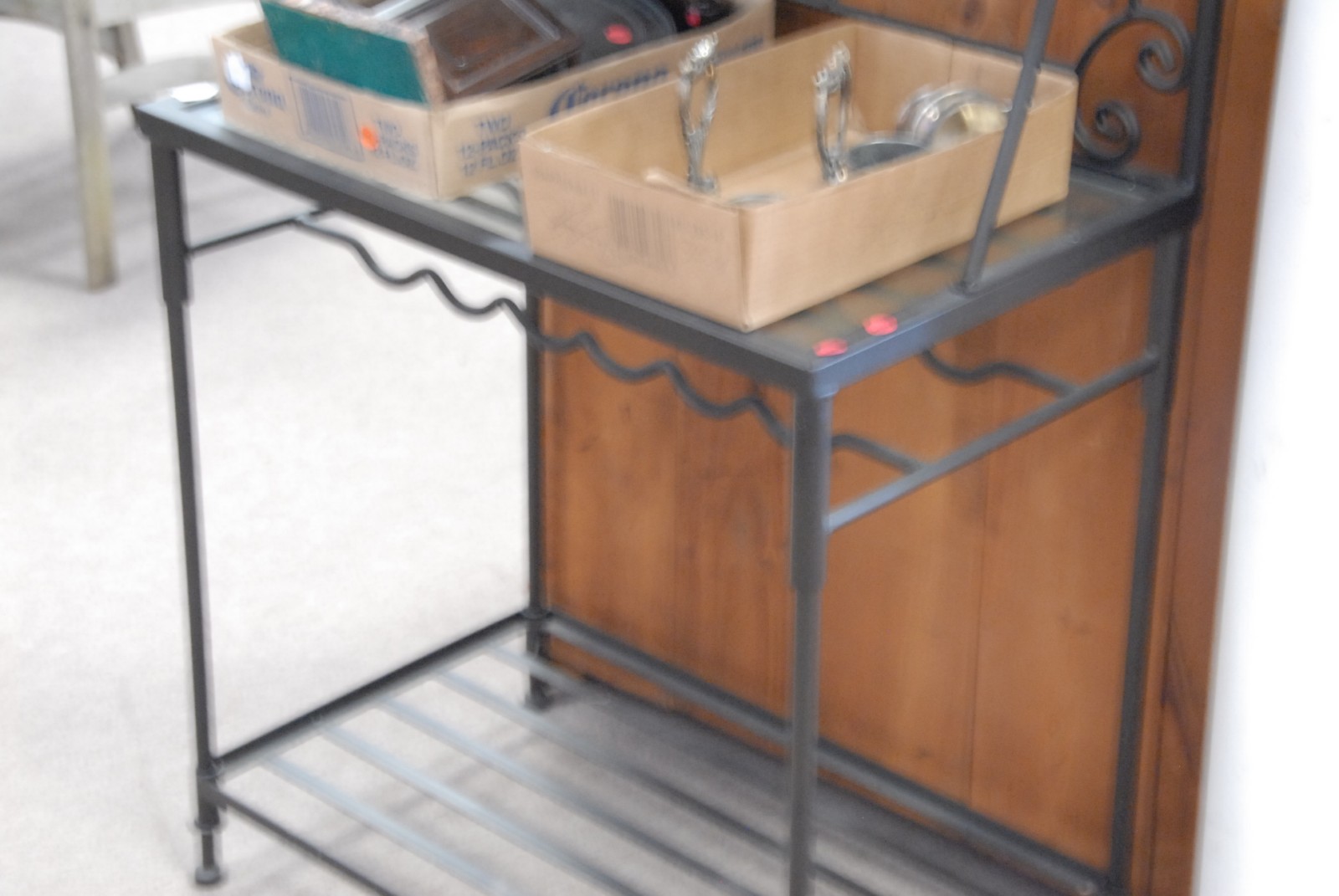 Iron and glass bakers rack