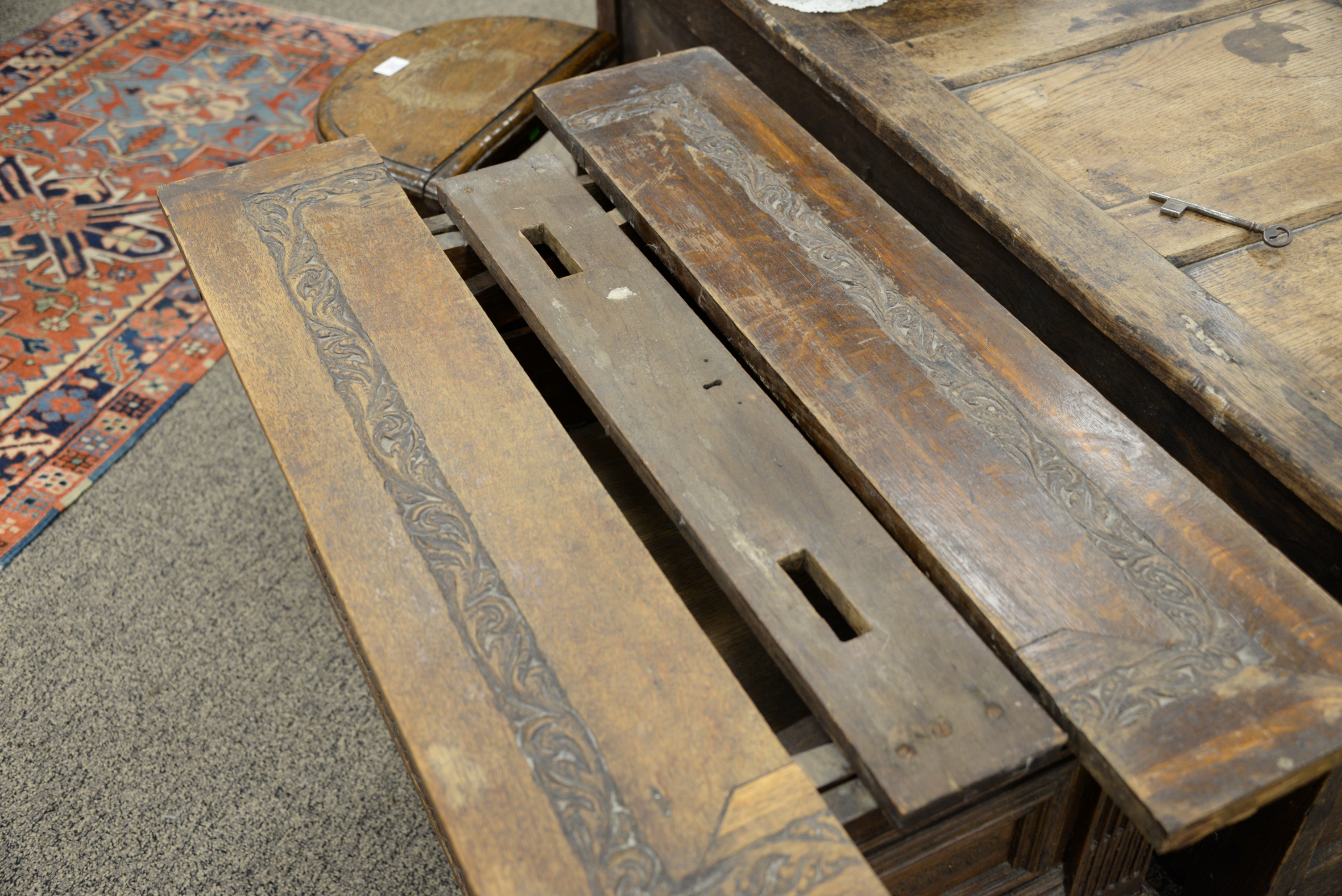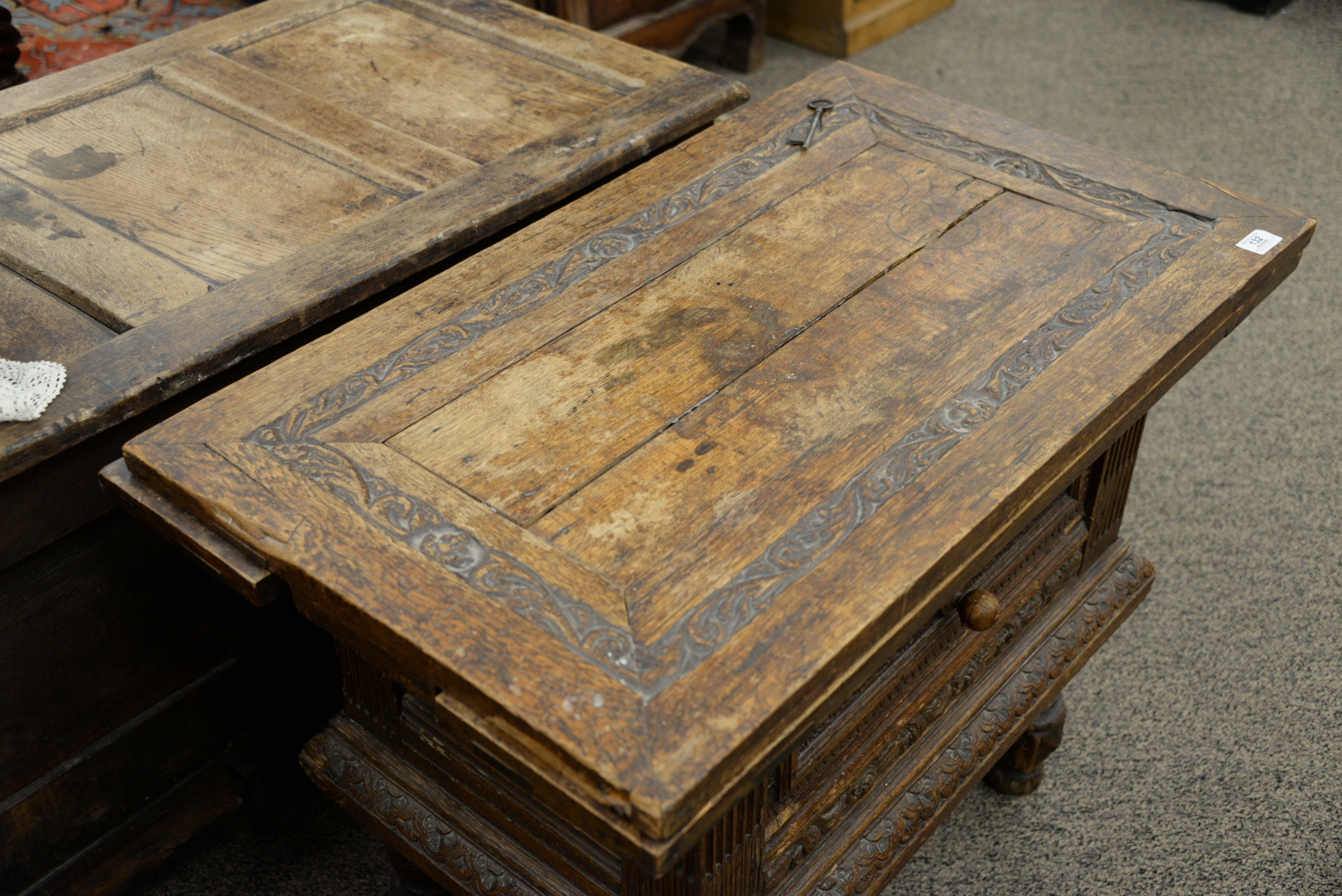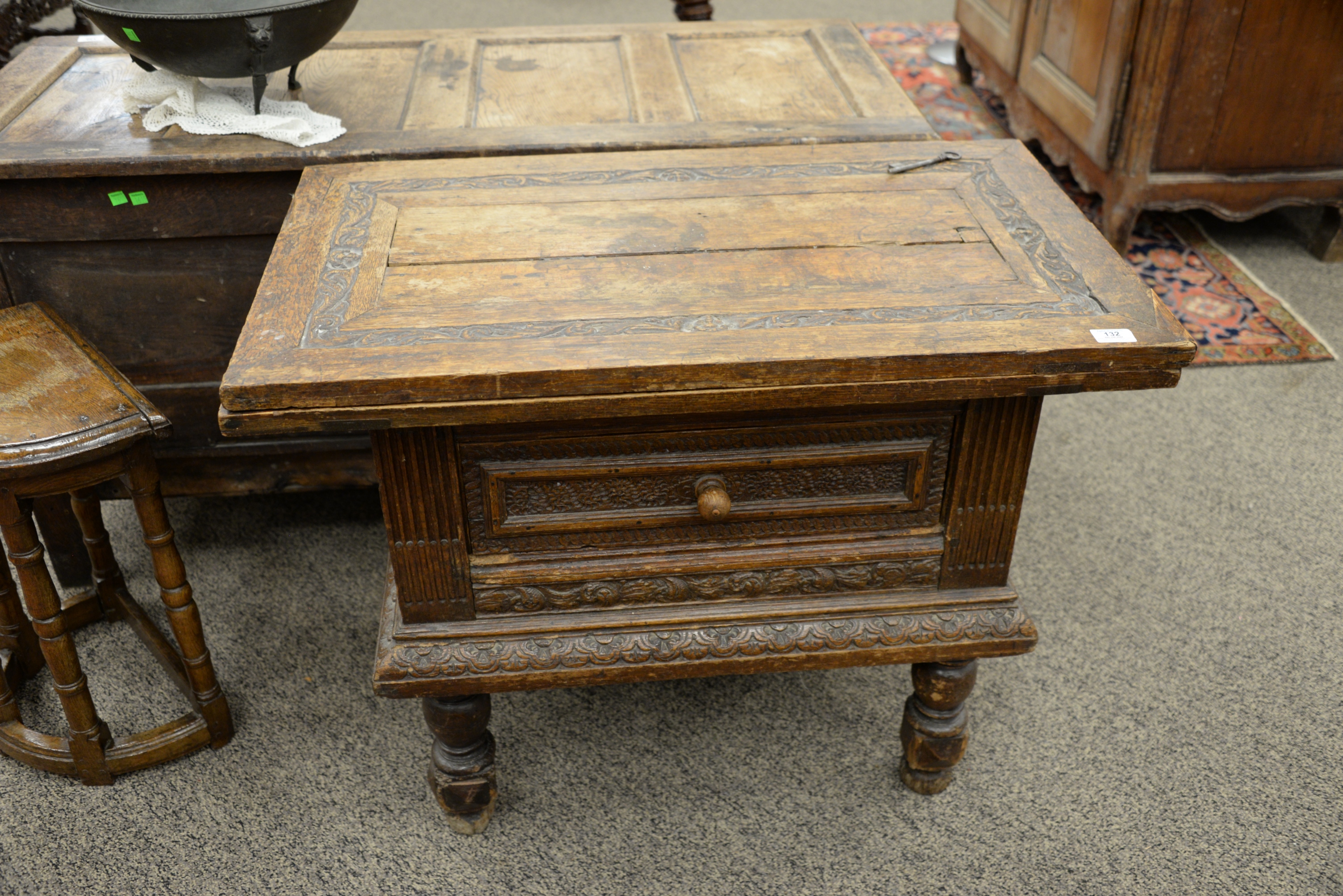 Lot 132: Jacobean Style Carved Oak Table/Cabinet with Drawer