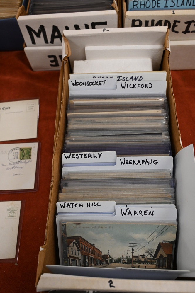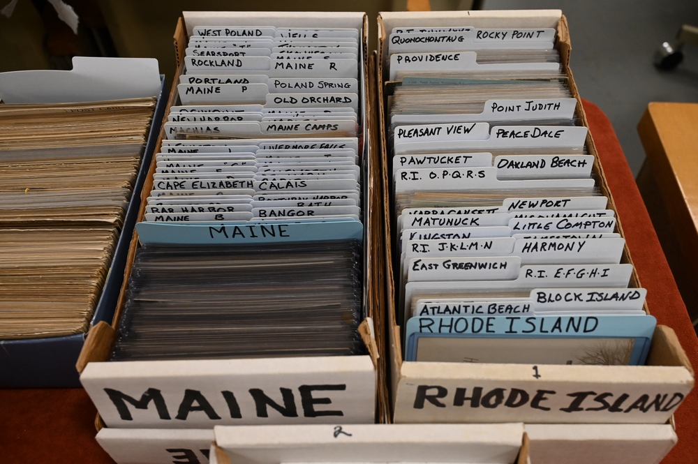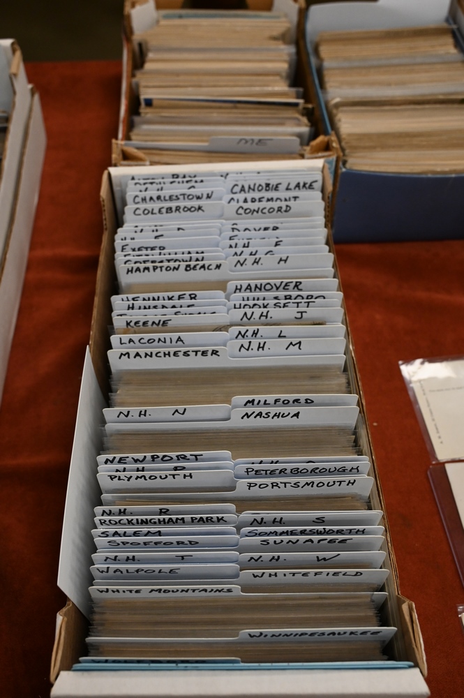 Lot 132: Large Lot of Postcards, in boxes, from Maine, Rhode Island, and New Hampshire, topics include ocean scenes, churches, boats, etc.
