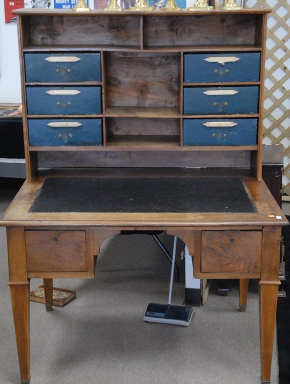 Lot 132: Louis XVI style desk with cabinet top with drawers, ht. 62in. dp. 34in.