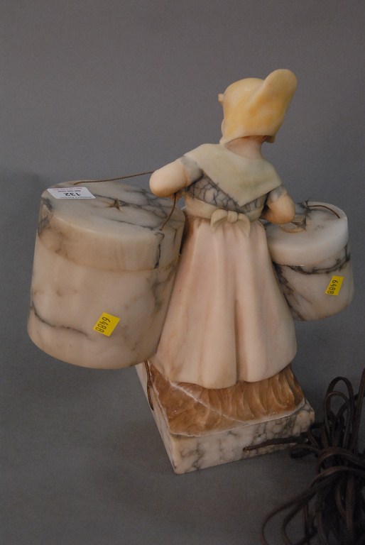 Lot 132: Marble sculpture of Dutch girl with two marble drums, each fitted with small bulb night light. ht. 14 1/4in. Provenance: Estate of…..