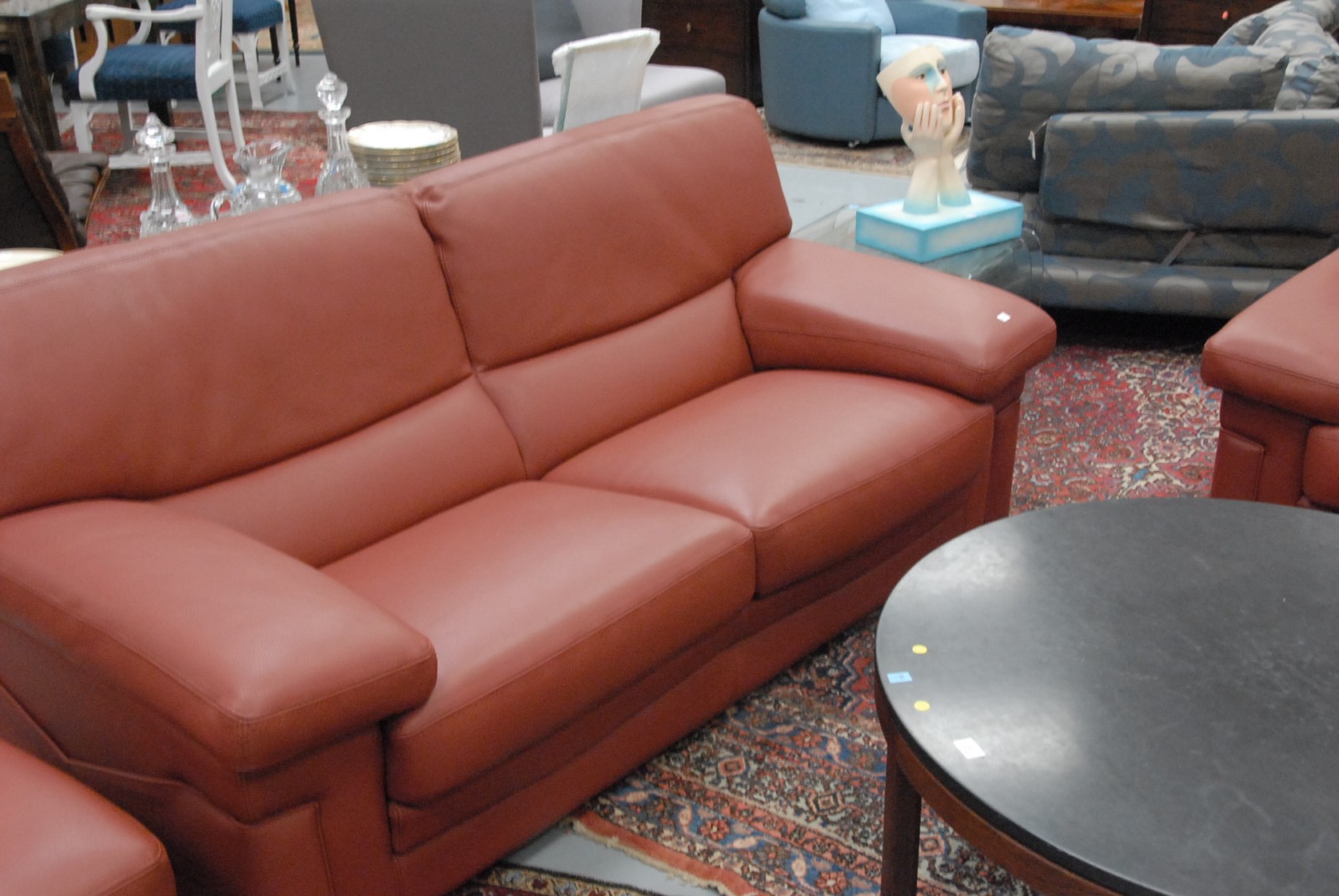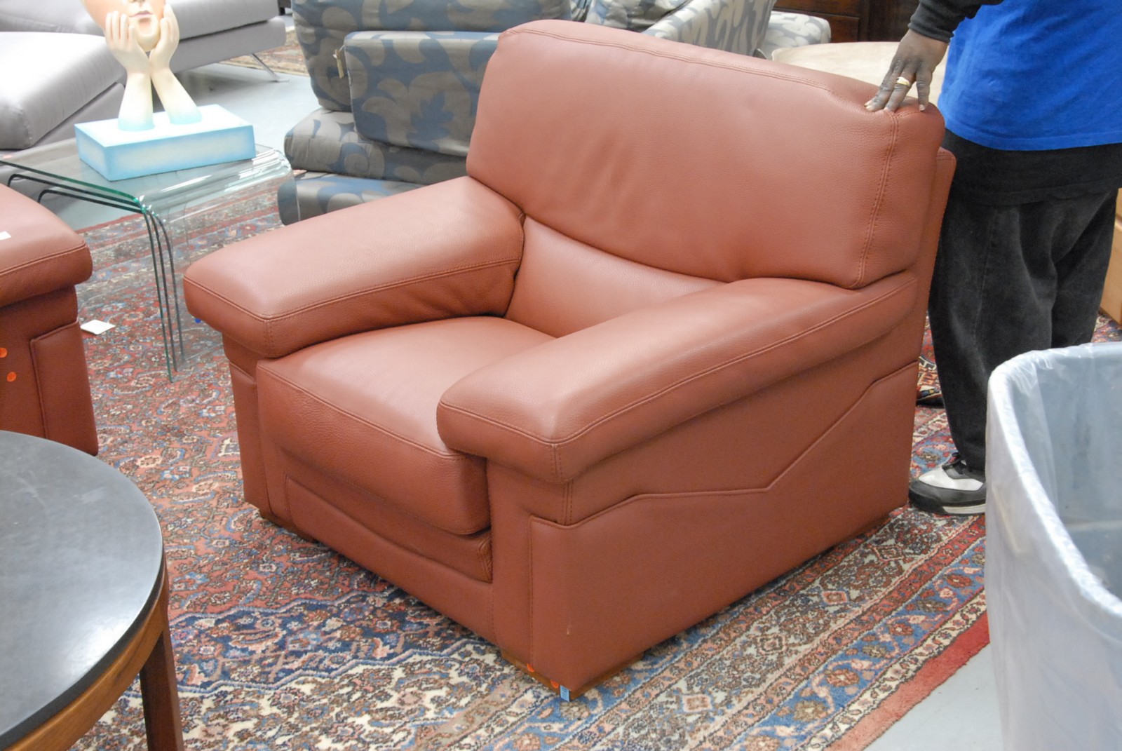 Roche Bobois four piece leather set, sofa , chair, two ottomans