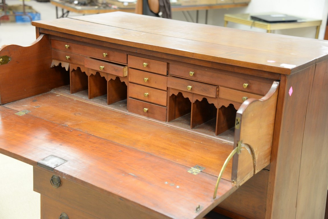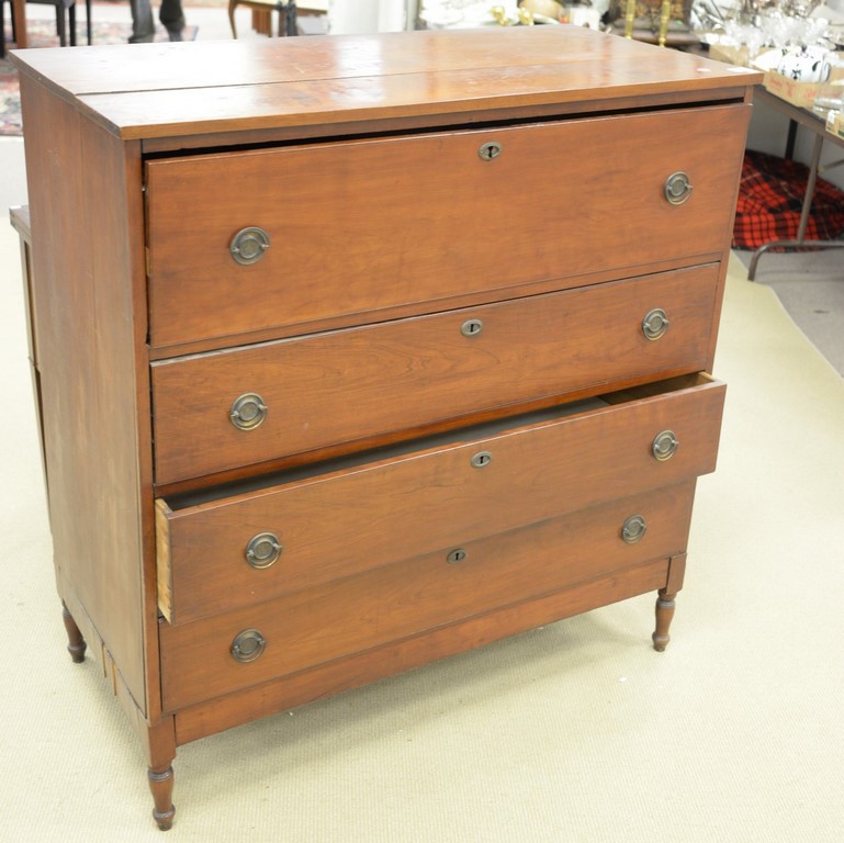 Lot 132: Sheraton cherry butler’s desk, circa 1830-1840.ht. 46 in. wd. 44 in.