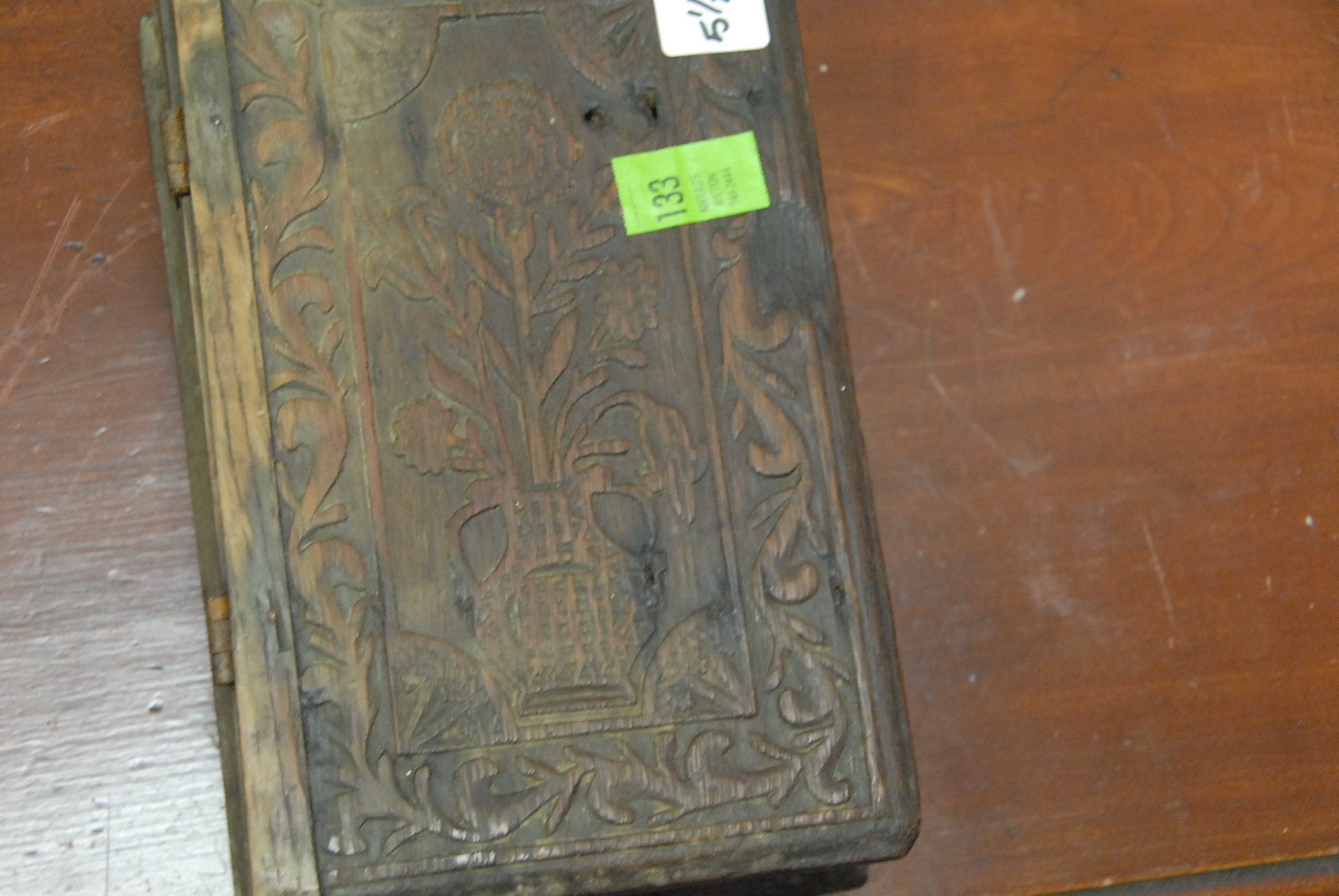 Carved oak box.