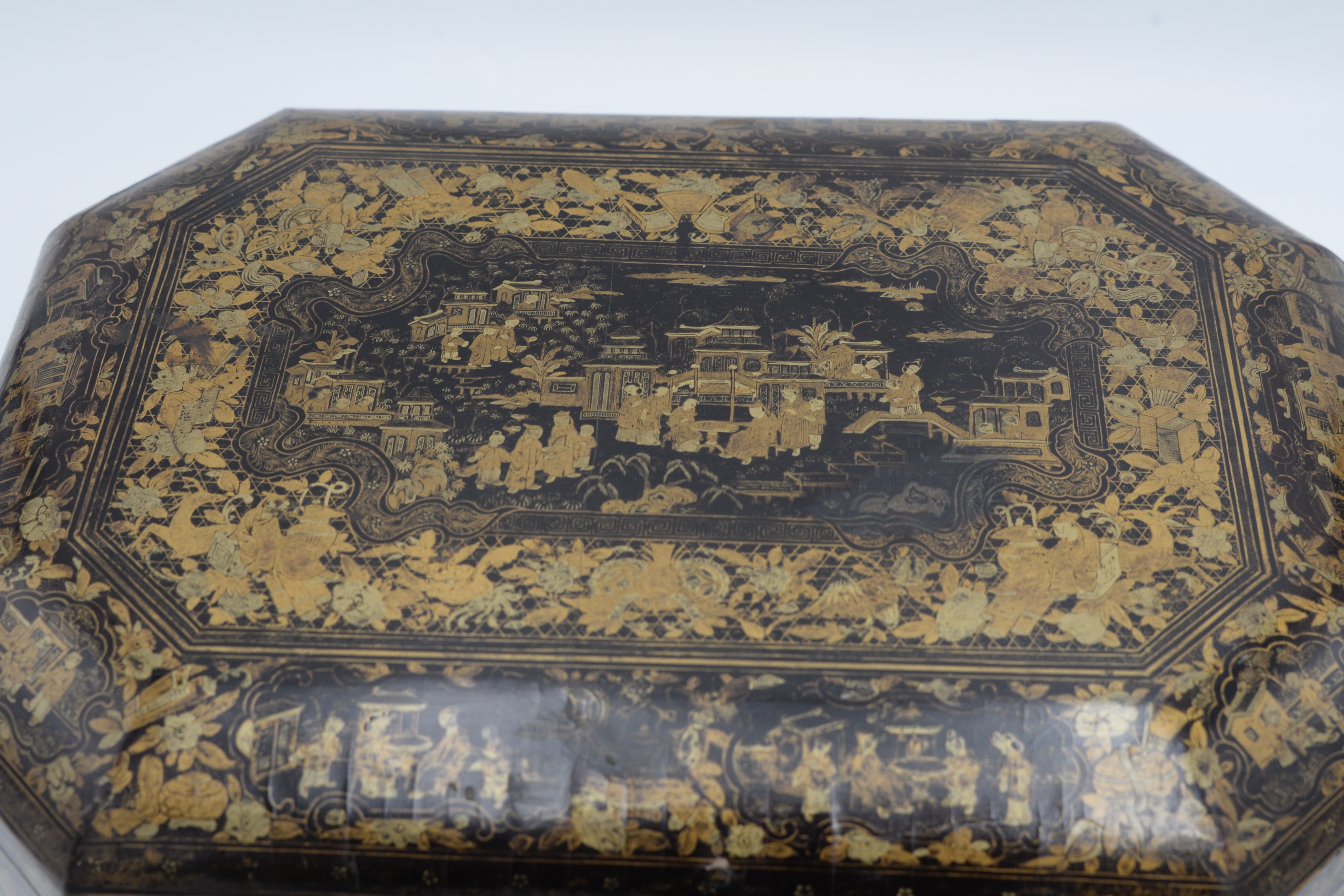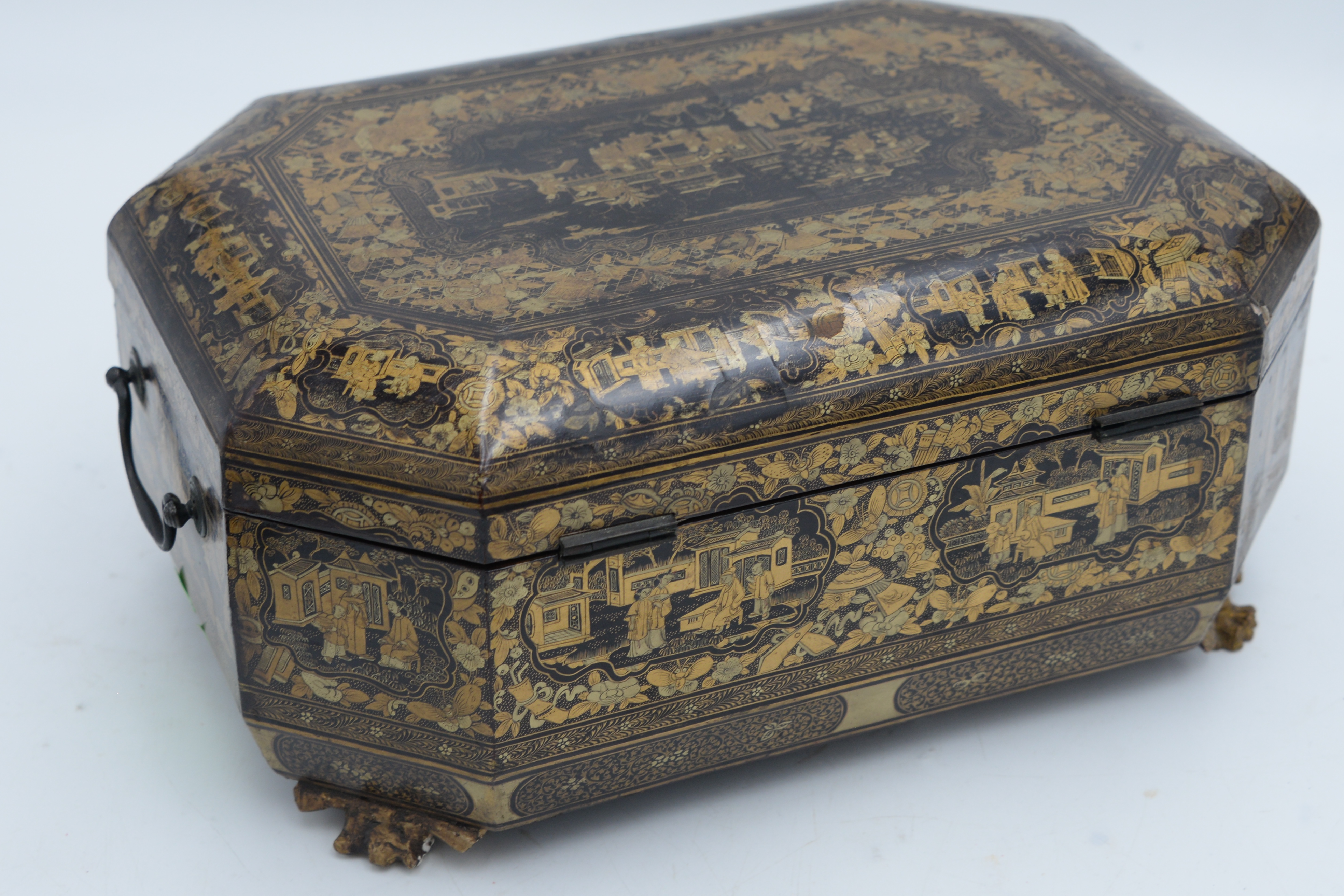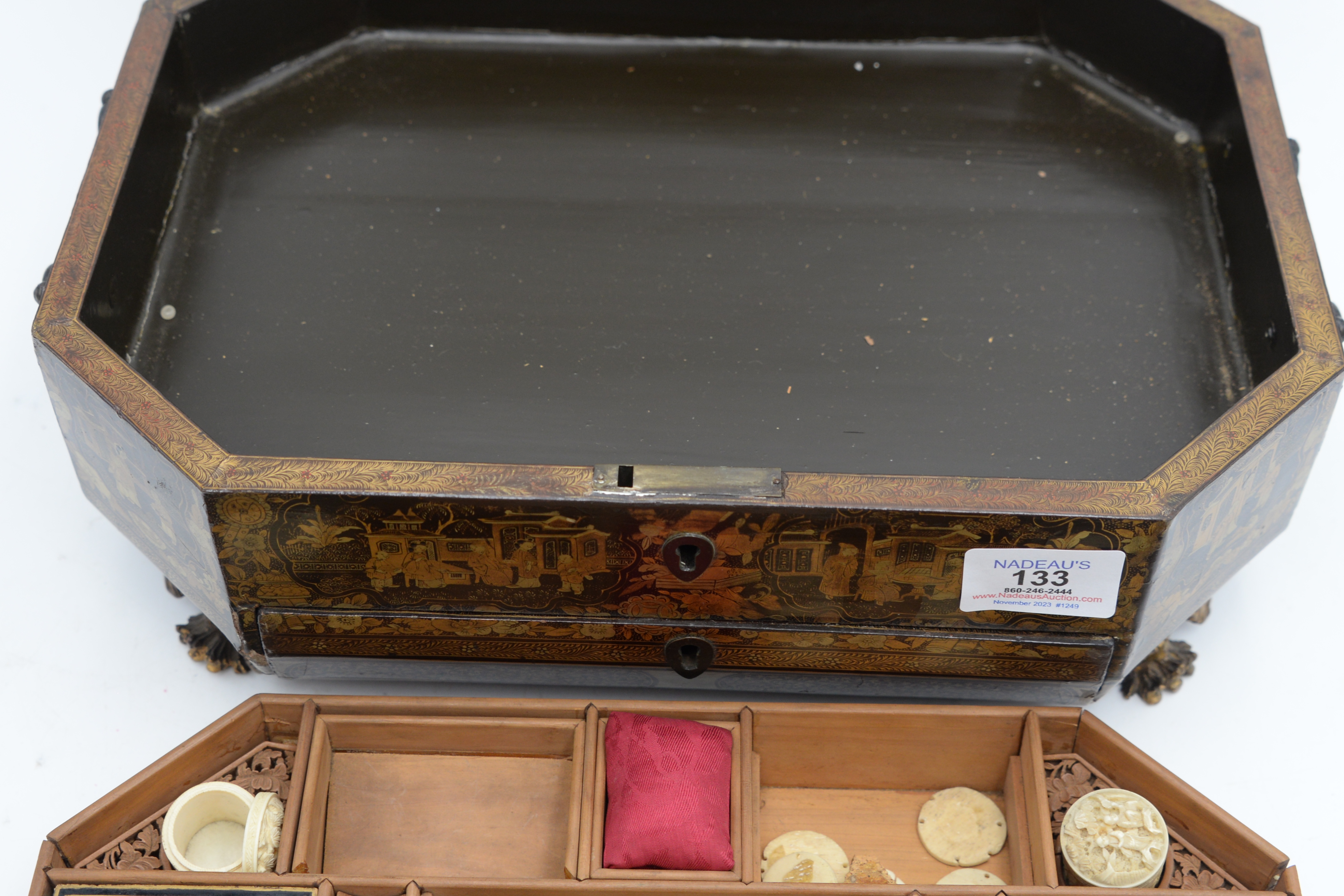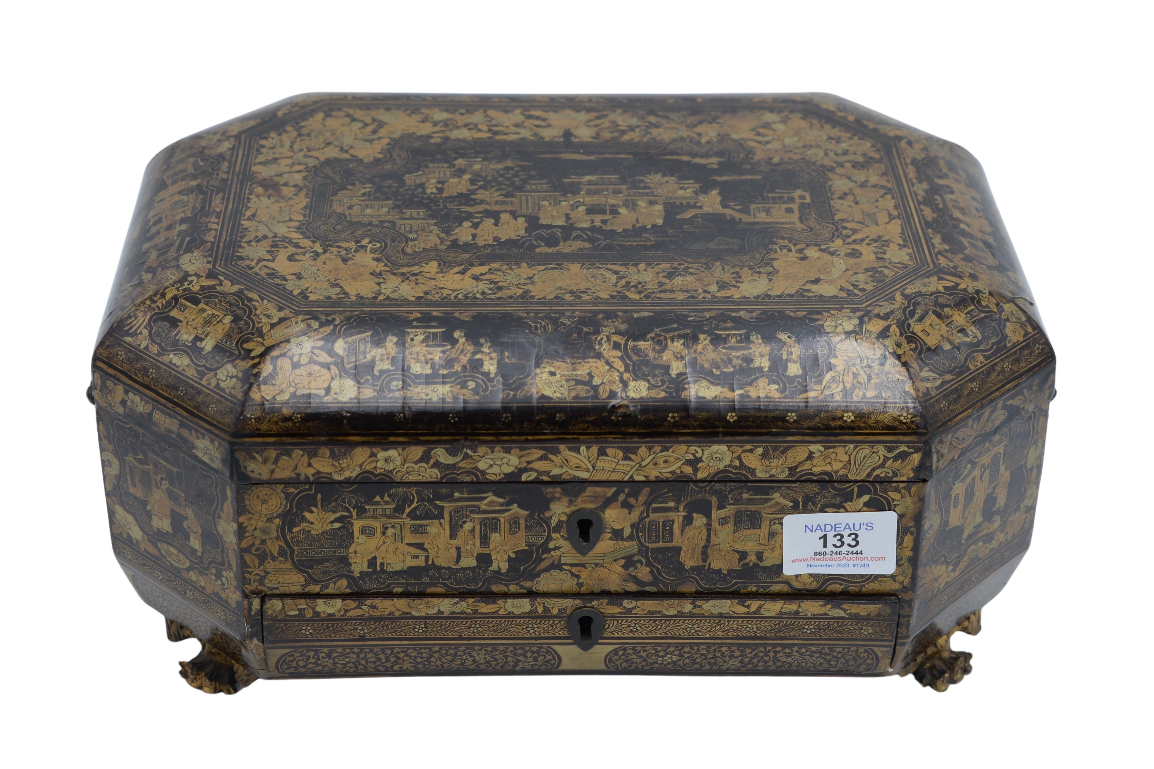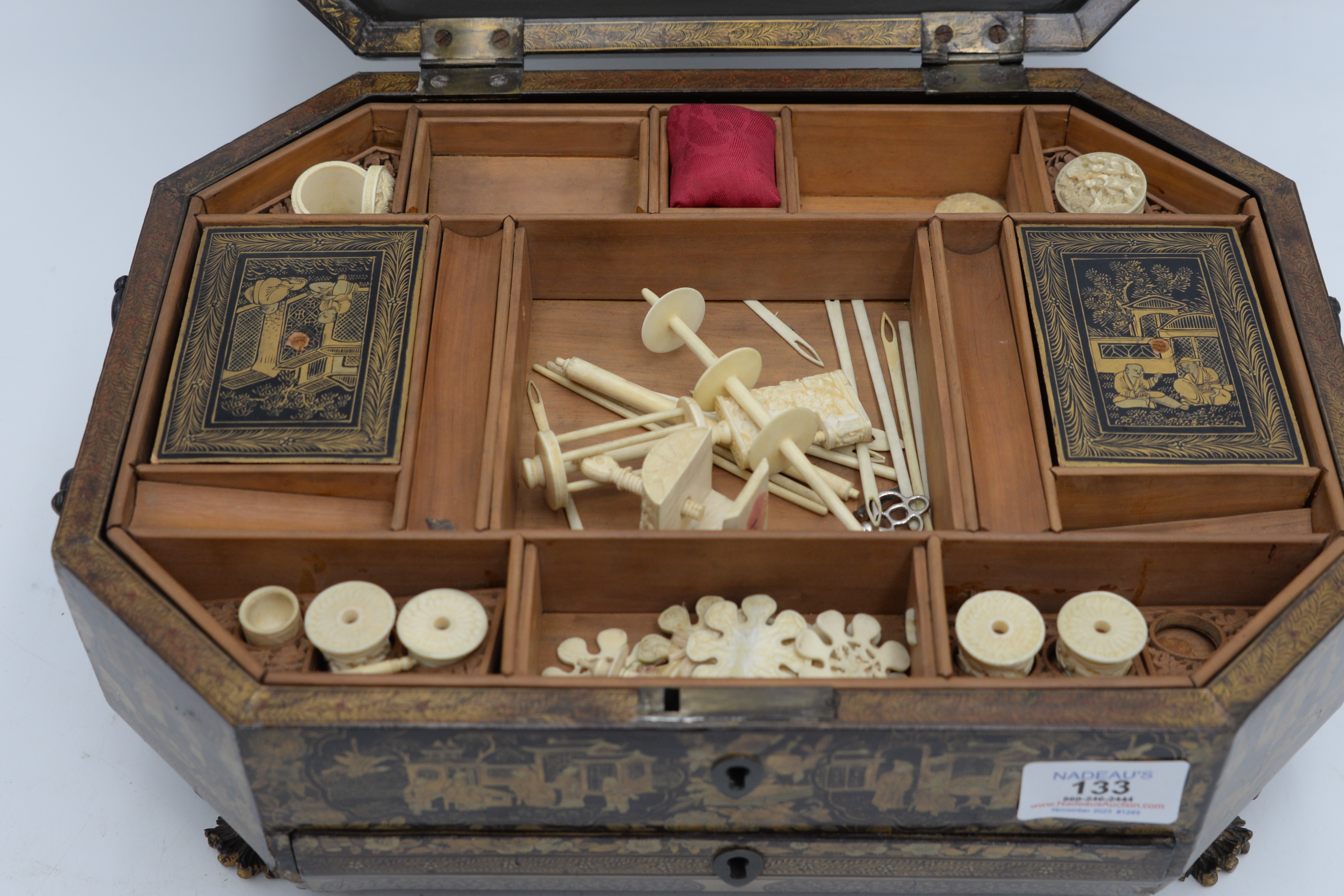 Lot 133: Chinoiserie Ebonized Sewing Box
