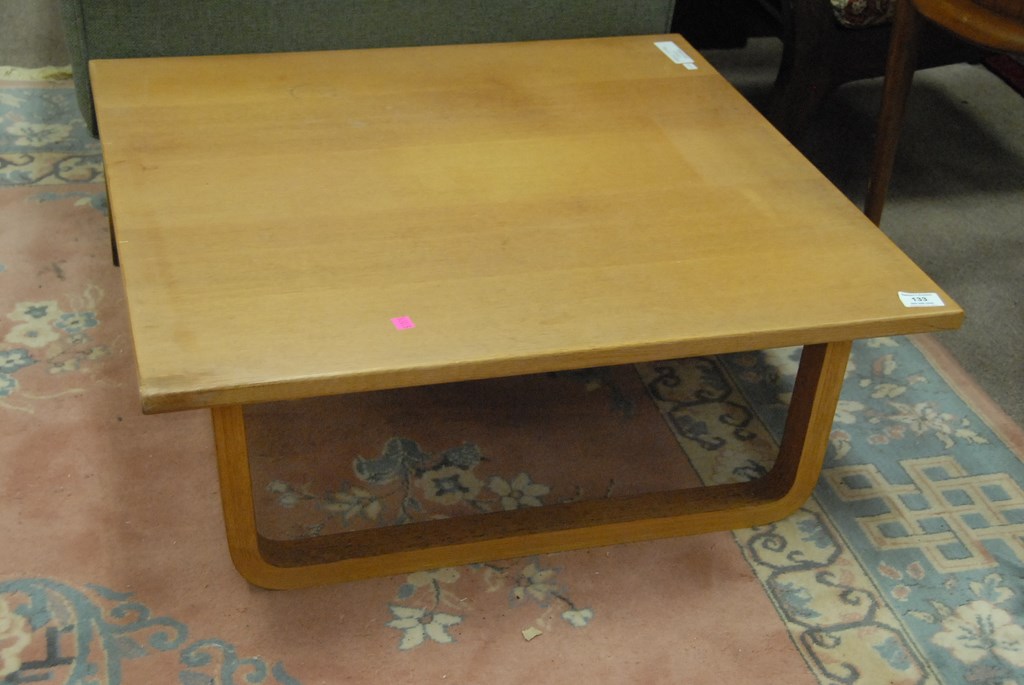Magnus Olesen Durup Denmark square coffee table with shaped legs, 30 x 30.