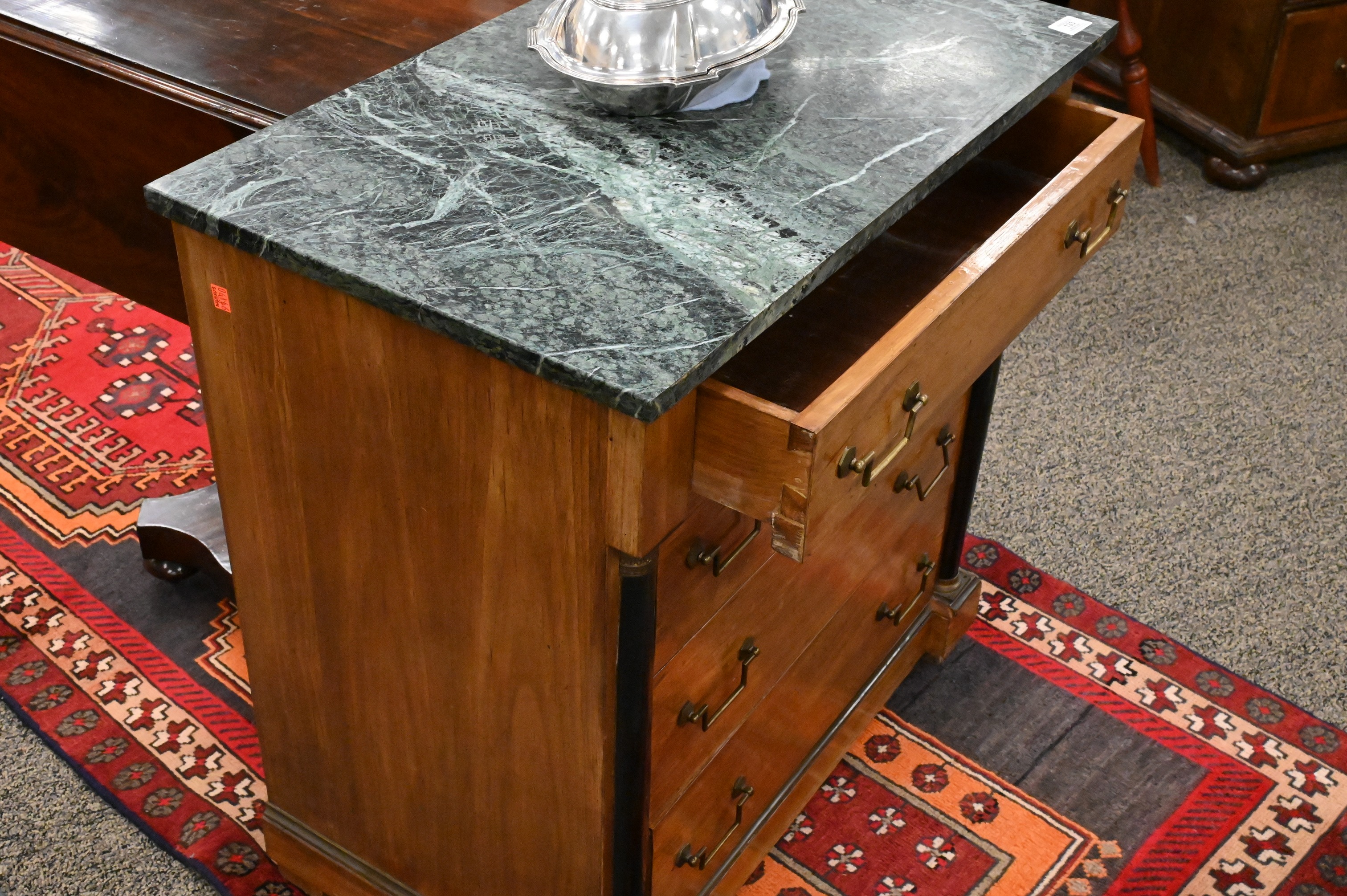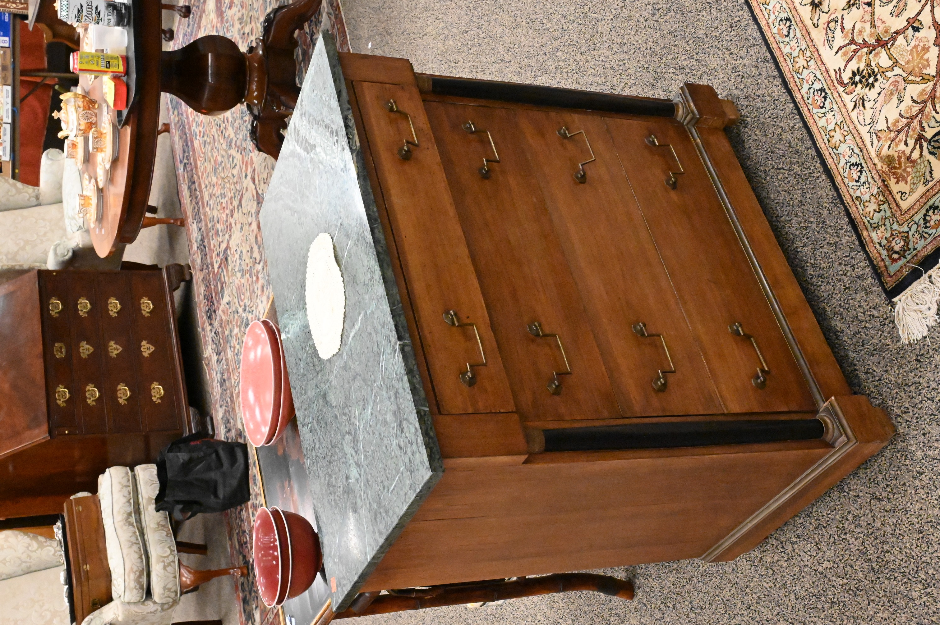 Lot 133: Pair of Directoire Style Marble Top Diminutive Chests
