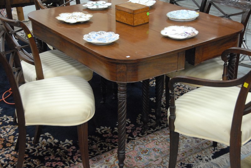 Lot 133: Sheraton two part dining table on rope turned legs, ht. 29in. lg. 49in. wd. 40in.