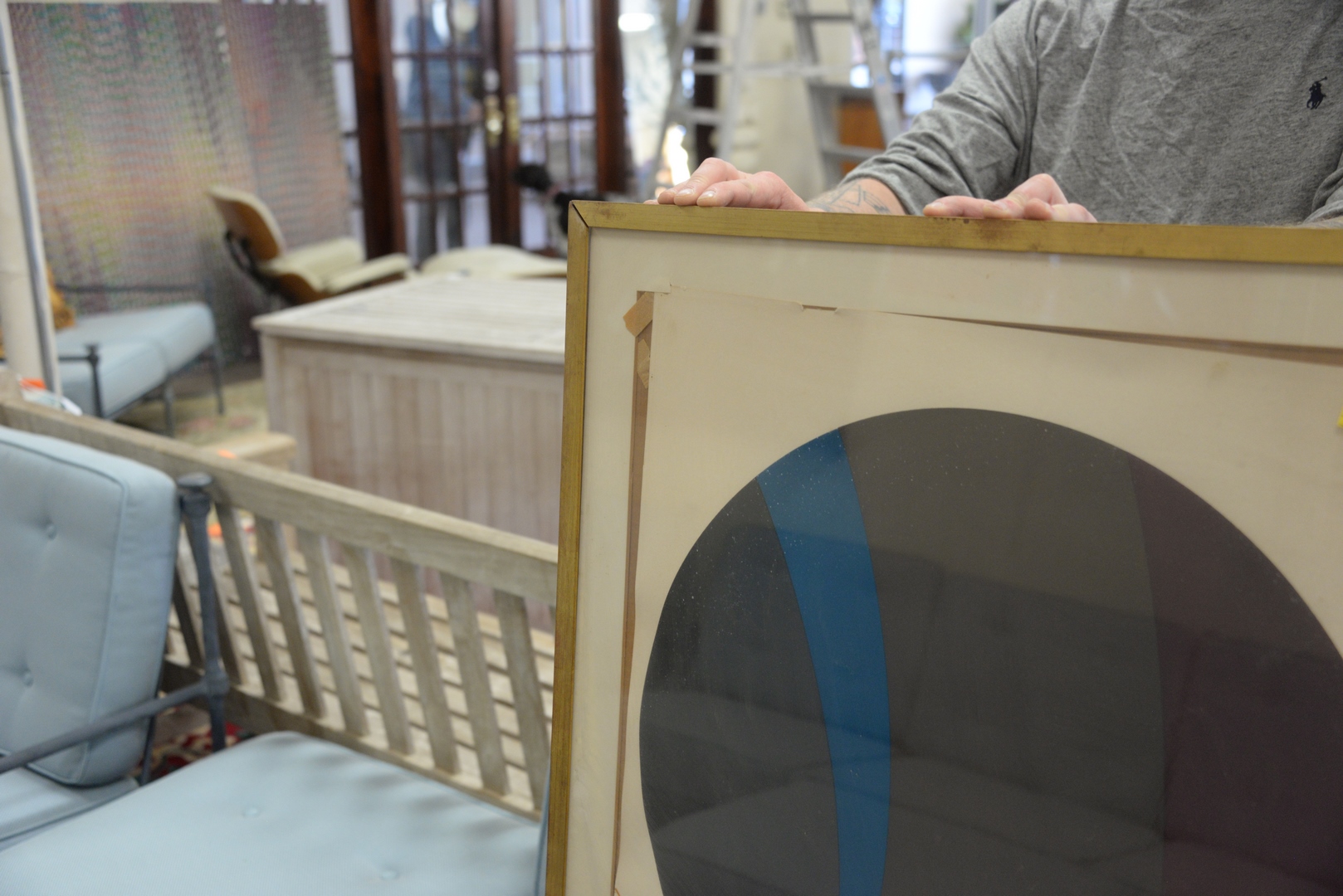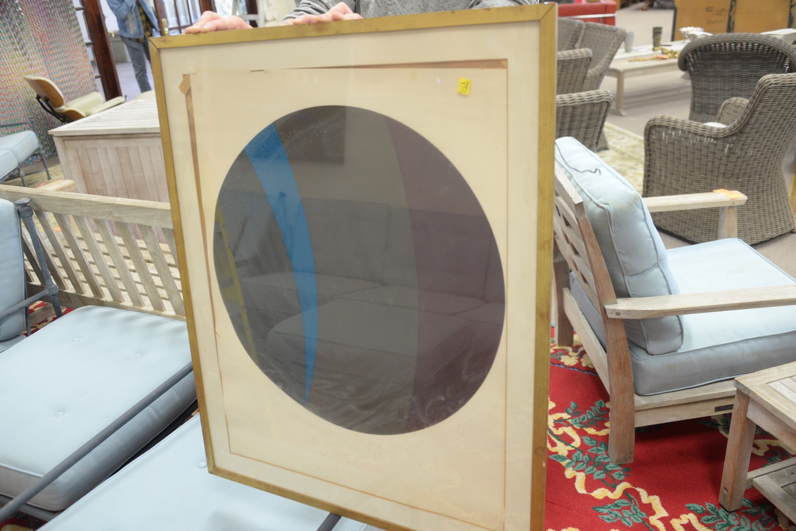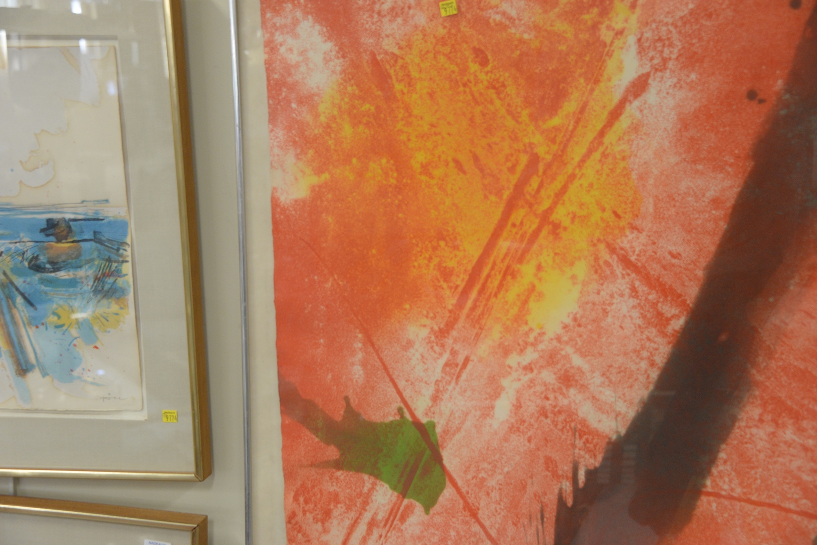 Lot 133: Two Alexander Liberman (Russian/American, 1912-1999), untitled, silkscreen and lithograph in colors on paper, each signed and dated in pencil, one numbered “10/59″, largest 37″ x 37”.