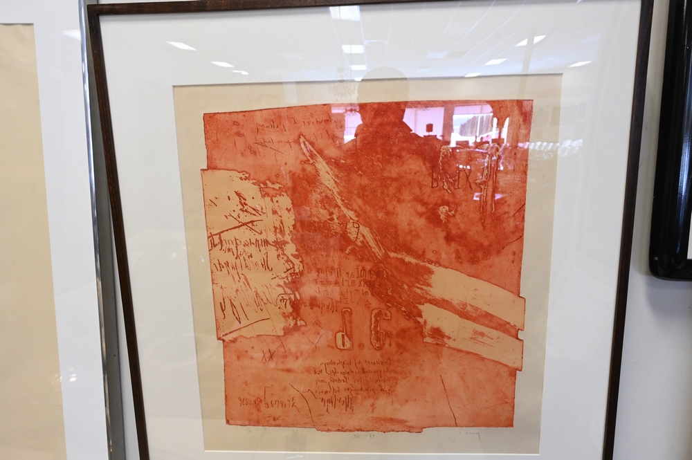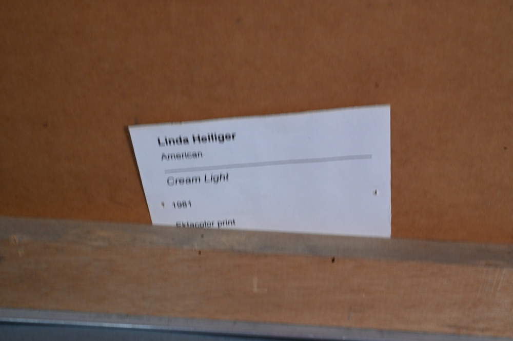 Lot 133: Two Piece Lot, to include Linda Heiliger (American), Cream Light, 1981, ektacolor print, old label on verso, 40″ x 40″; along with Janez Bernik (Slovene, 1933 – 2016), etching, paper size 29 3/4″ x 22″.